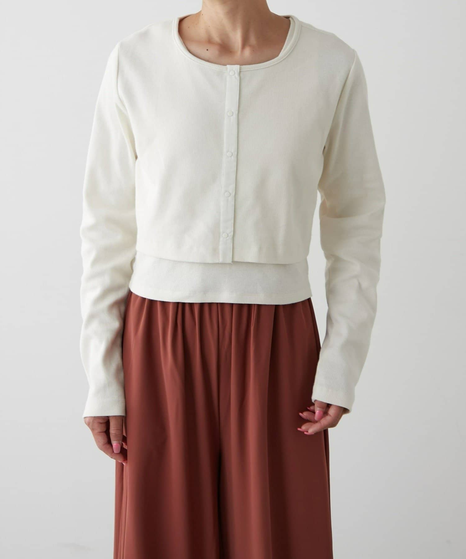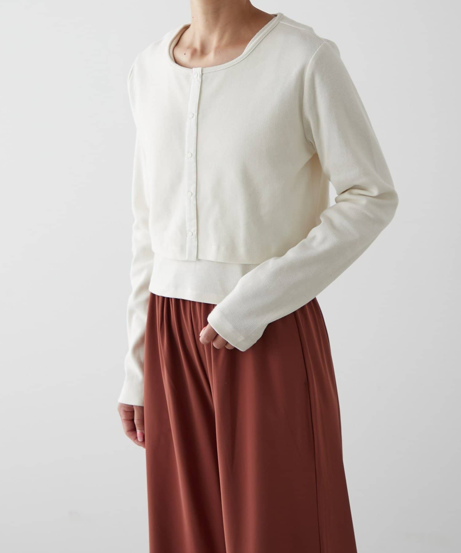 【earthy_】リブショートカーデ &カップ付きタンクセット
