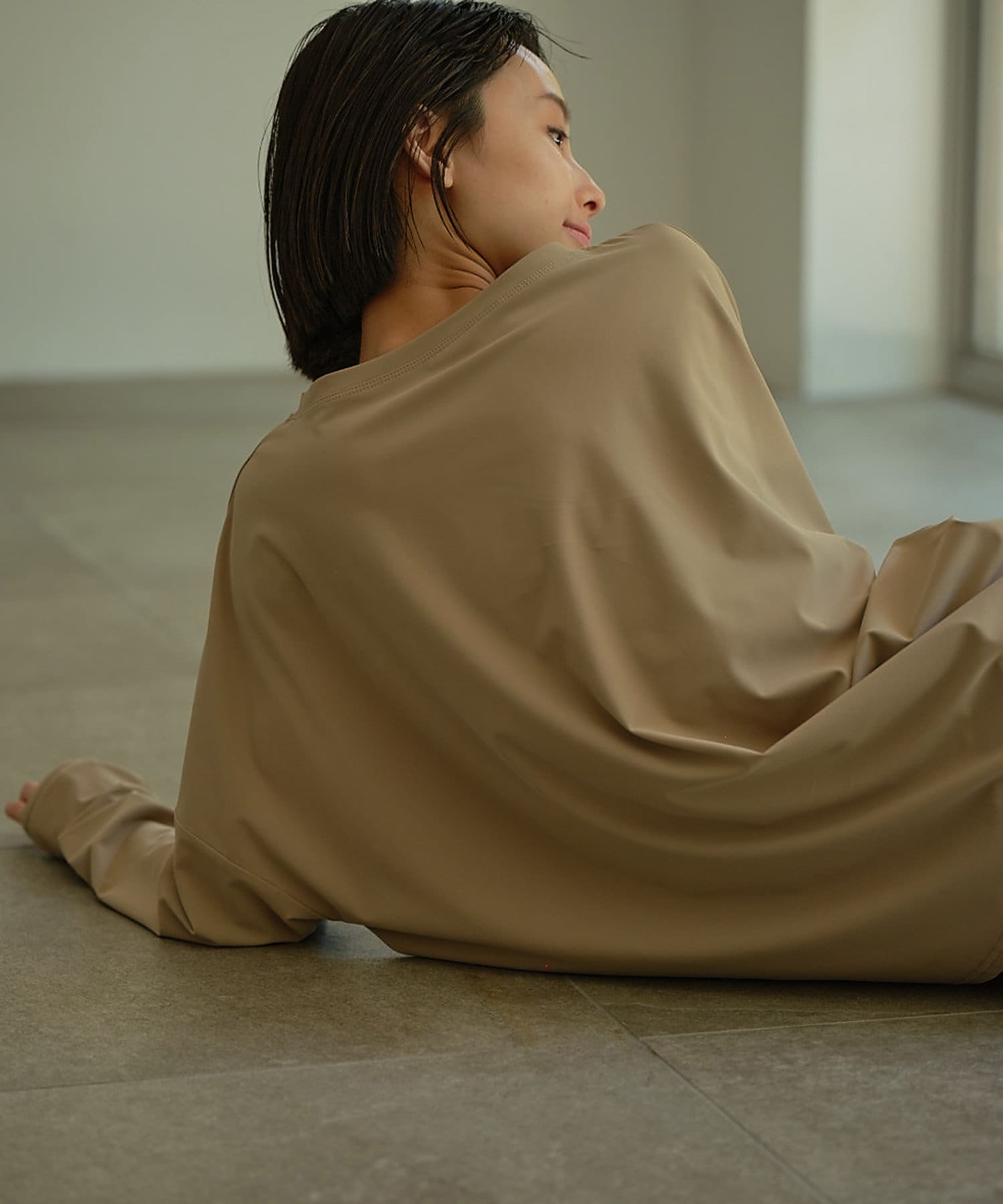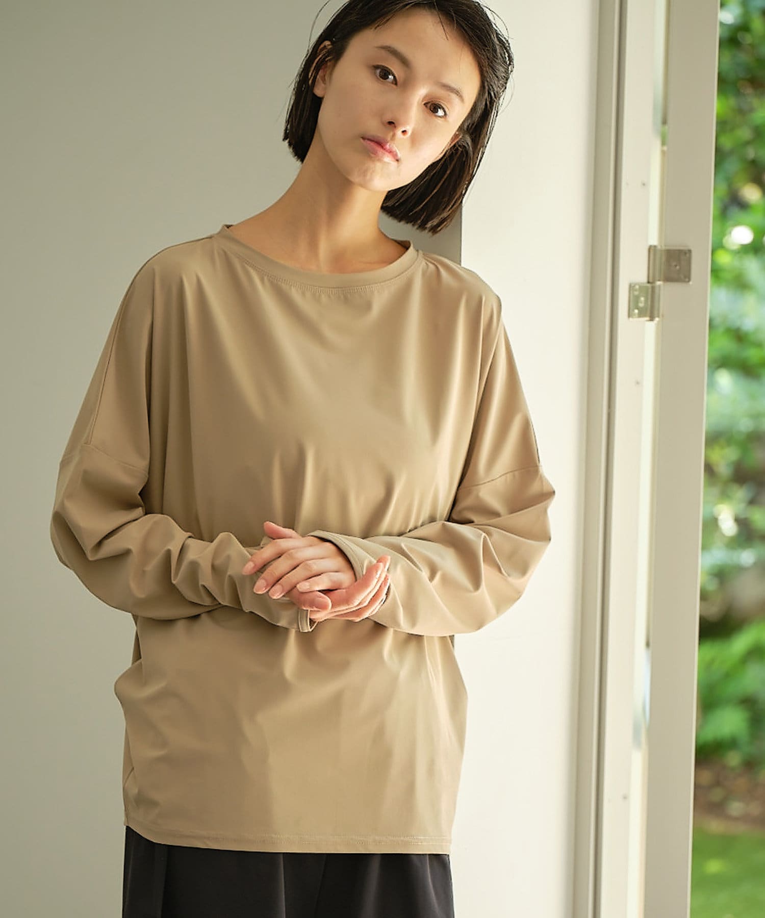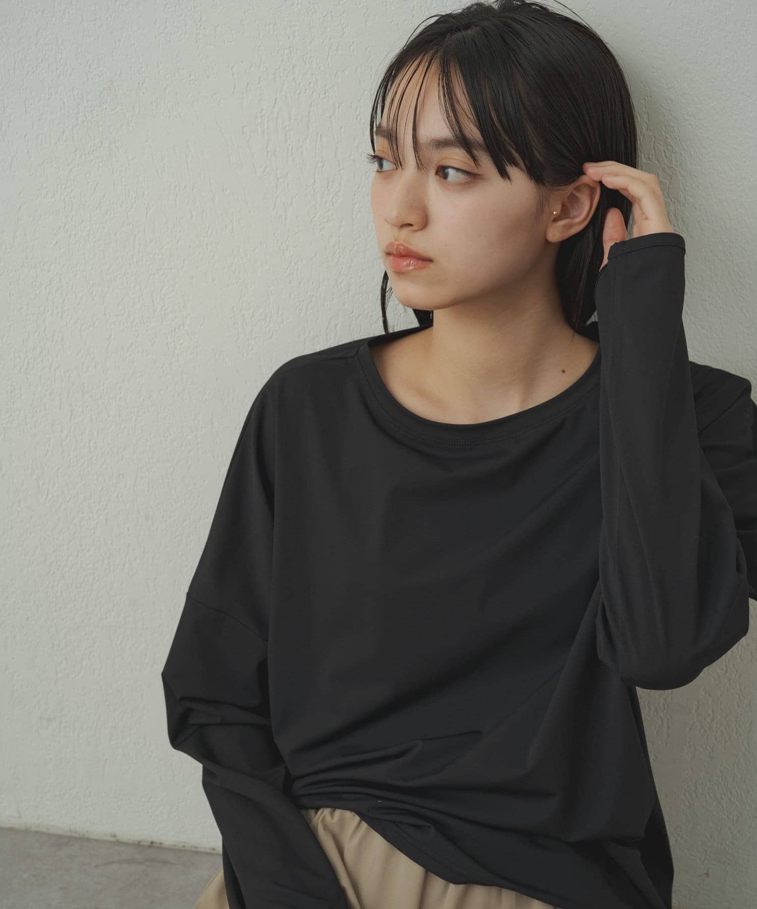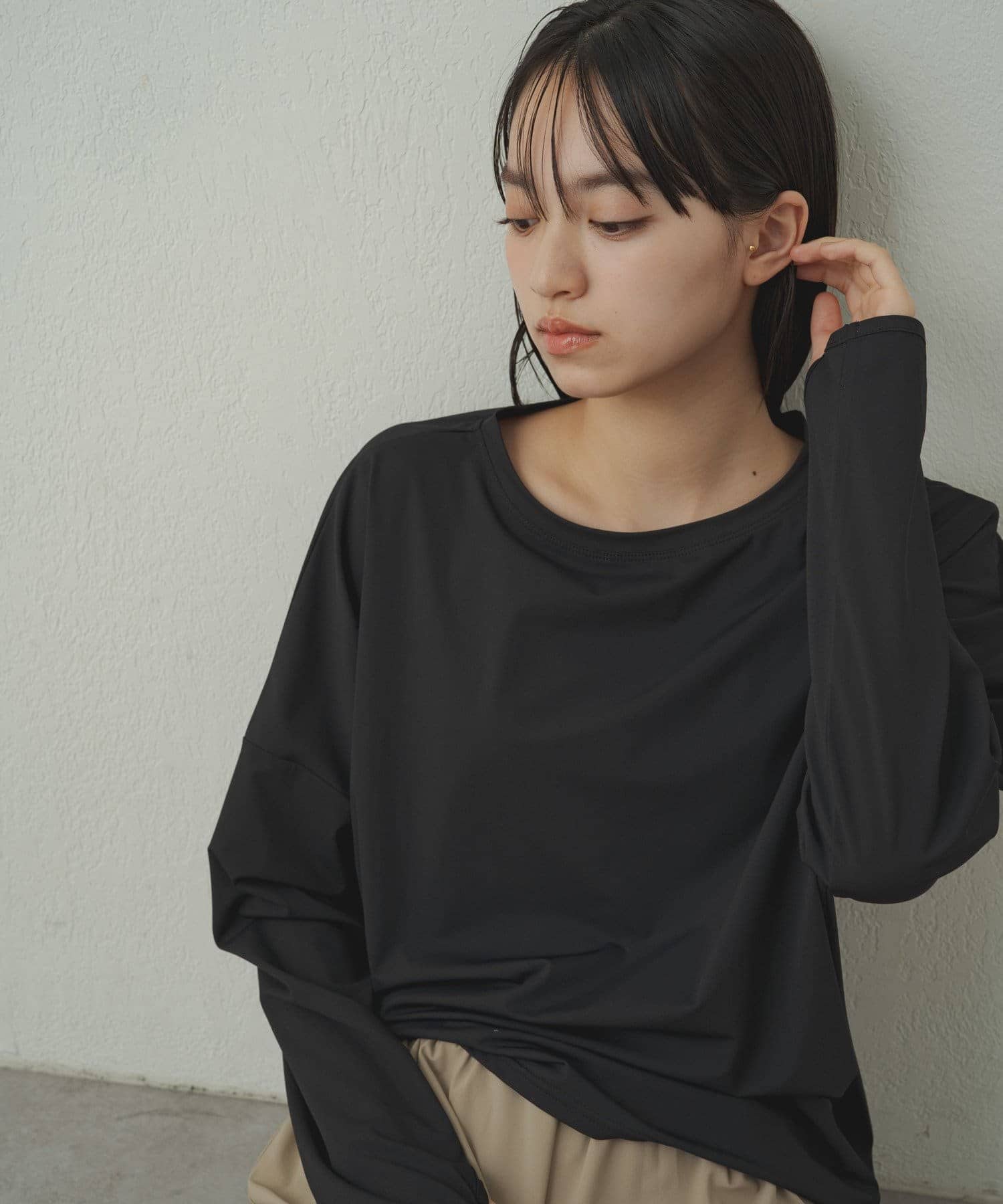 ・ゆったりとしたドルマンスリーブで、身体のラインを拾わず着やすい一枚。