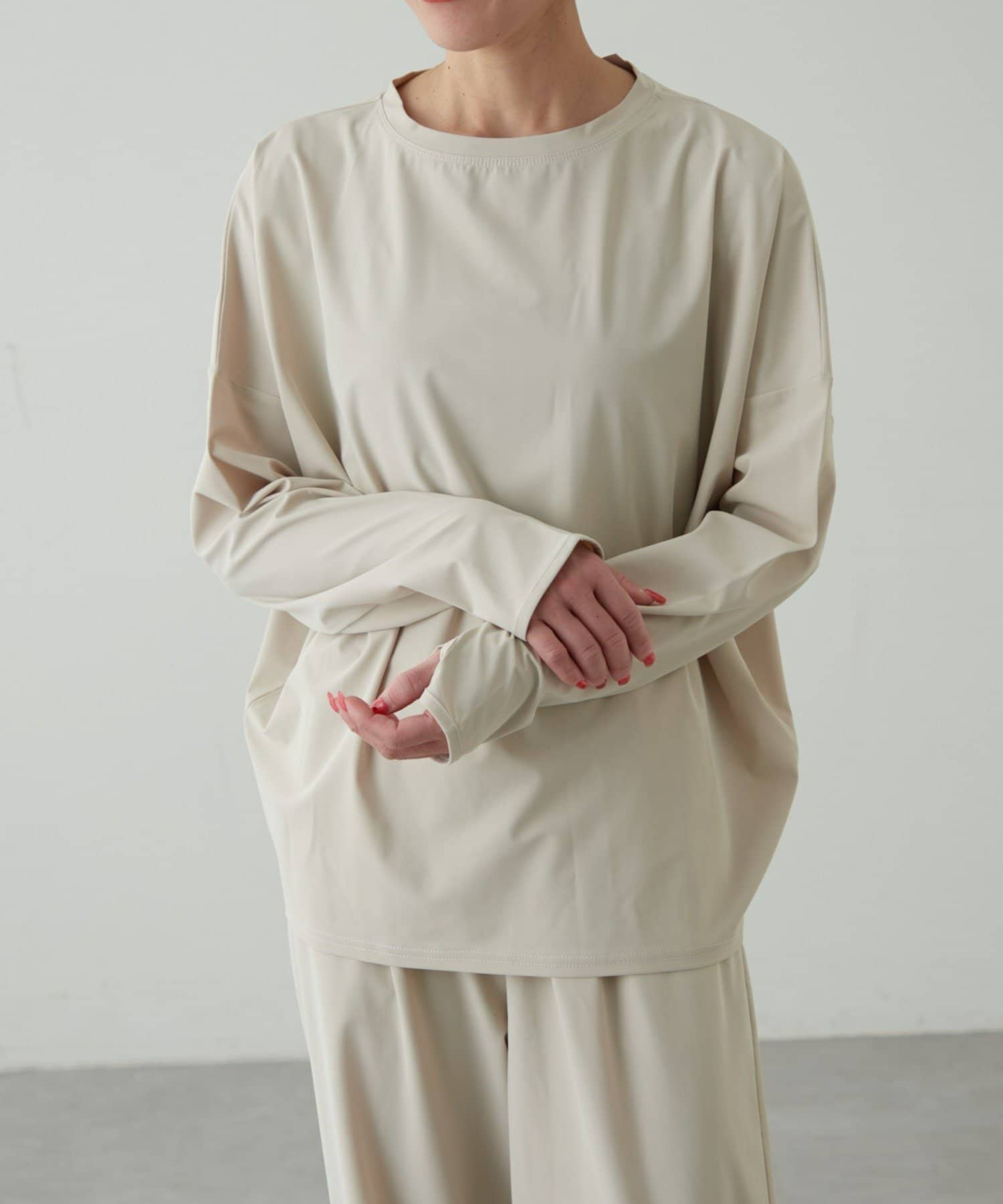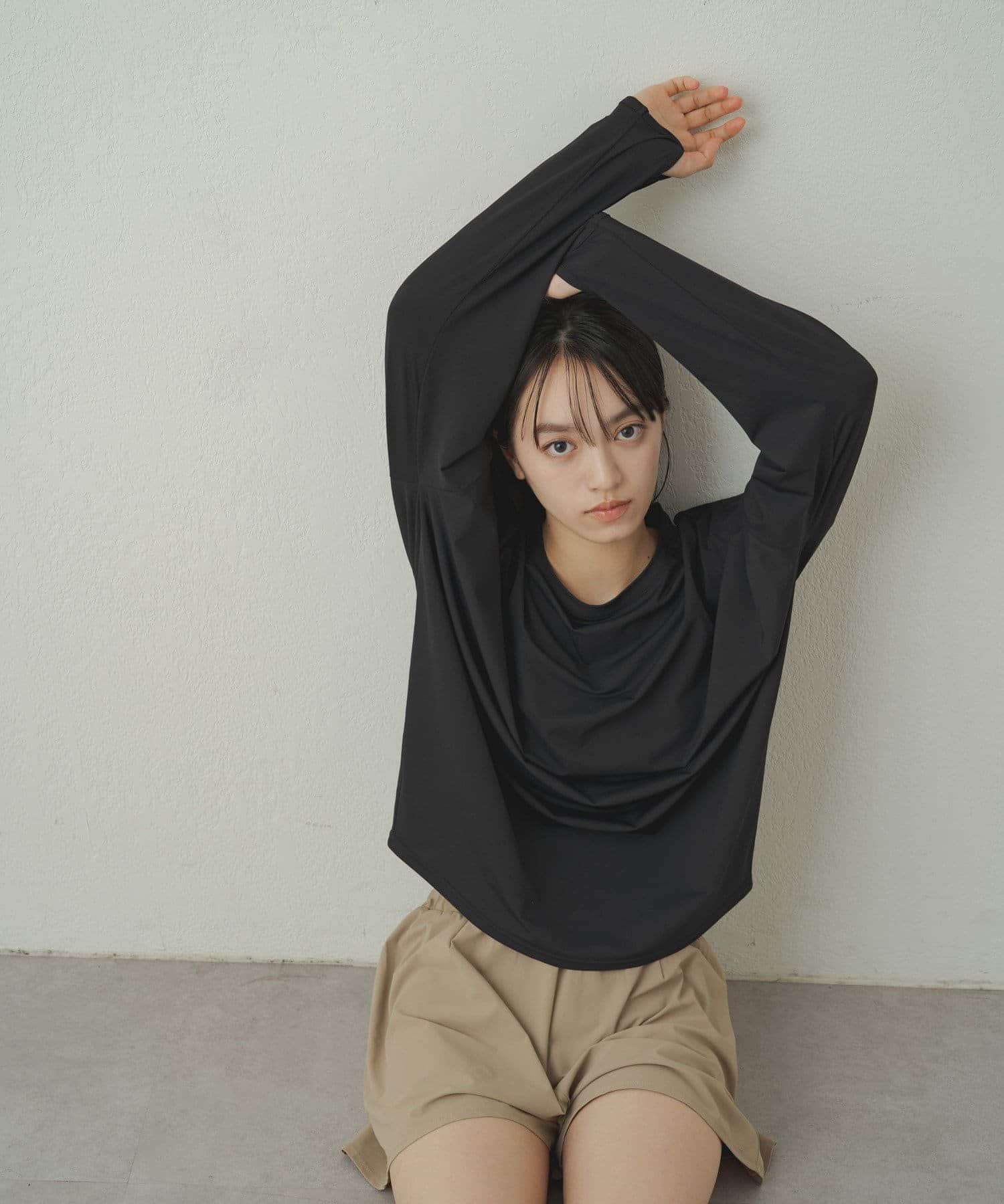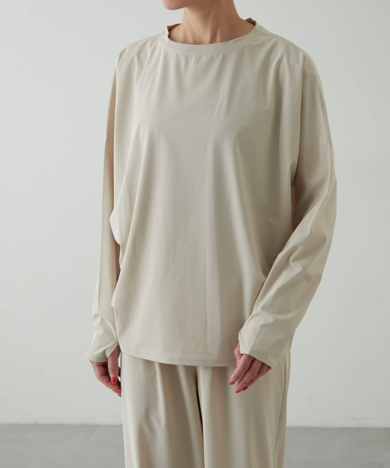 ・ゆったりとしたドルマンスリーブで、身体のラインを拾わず着やすい一枚。