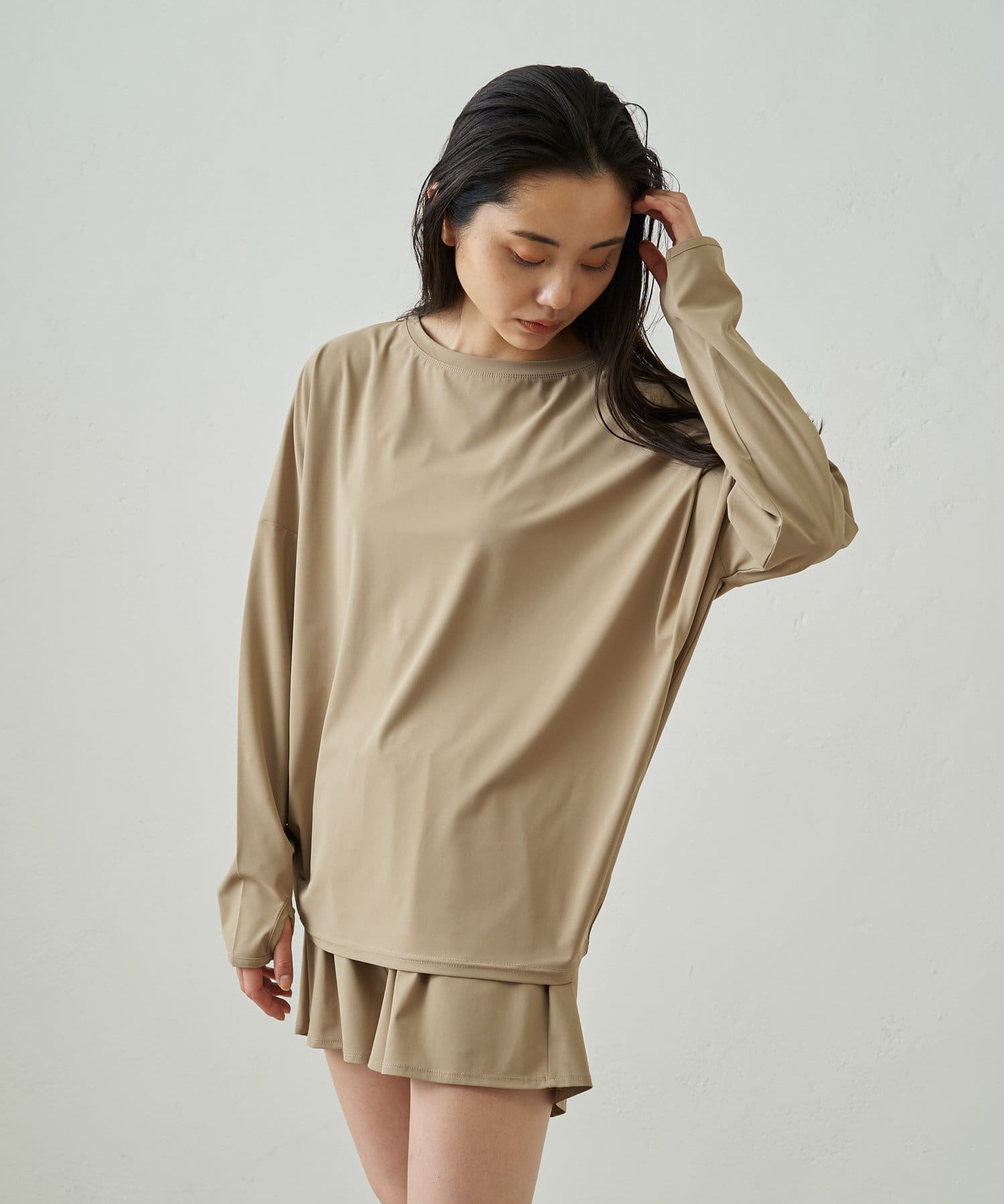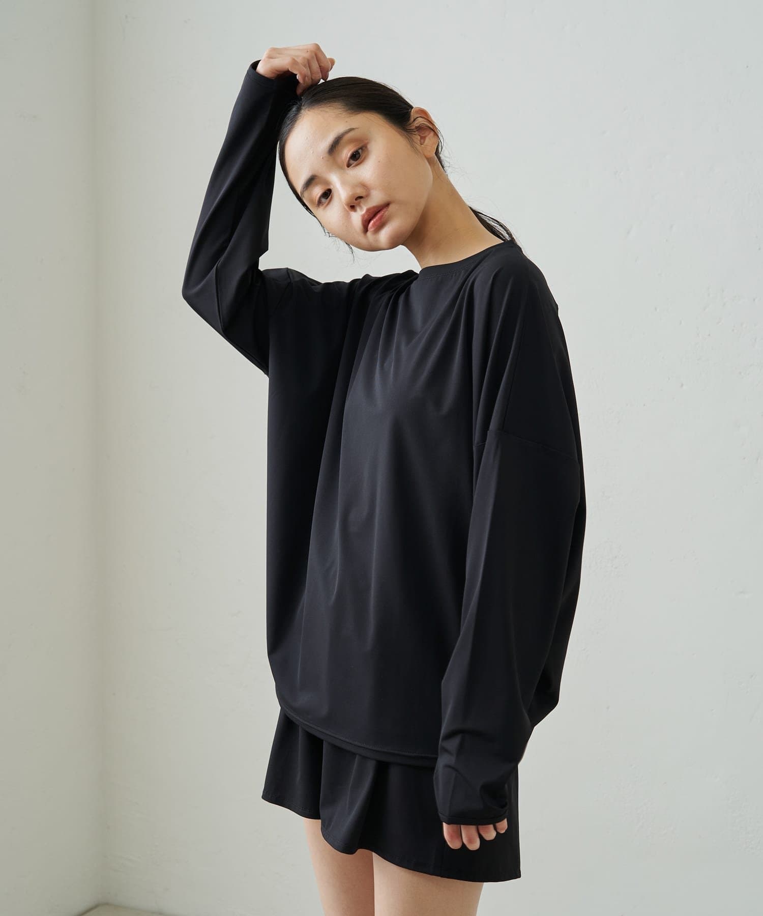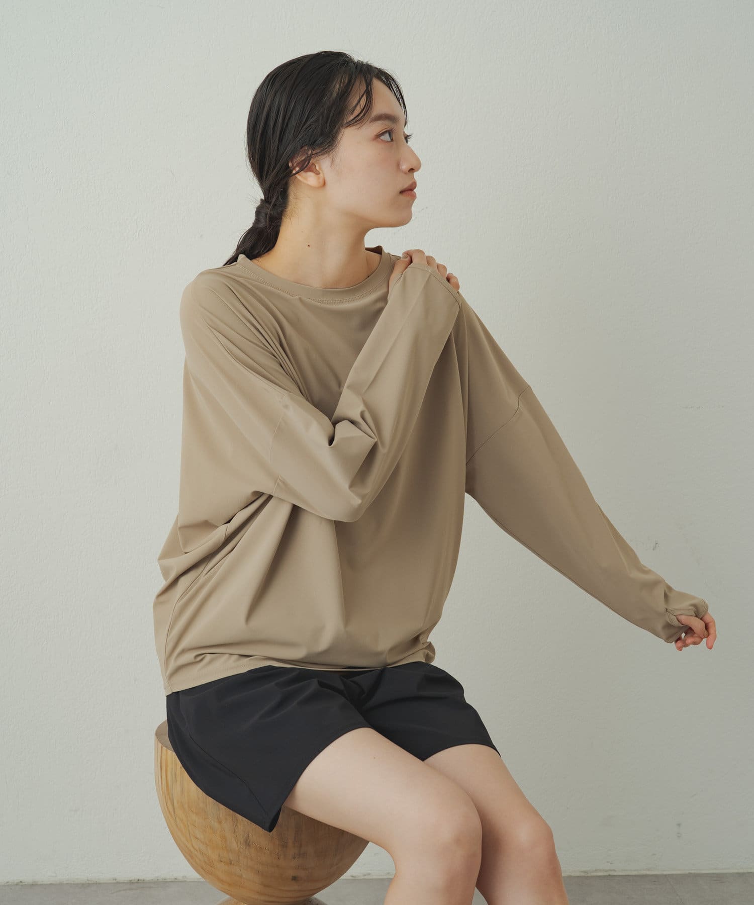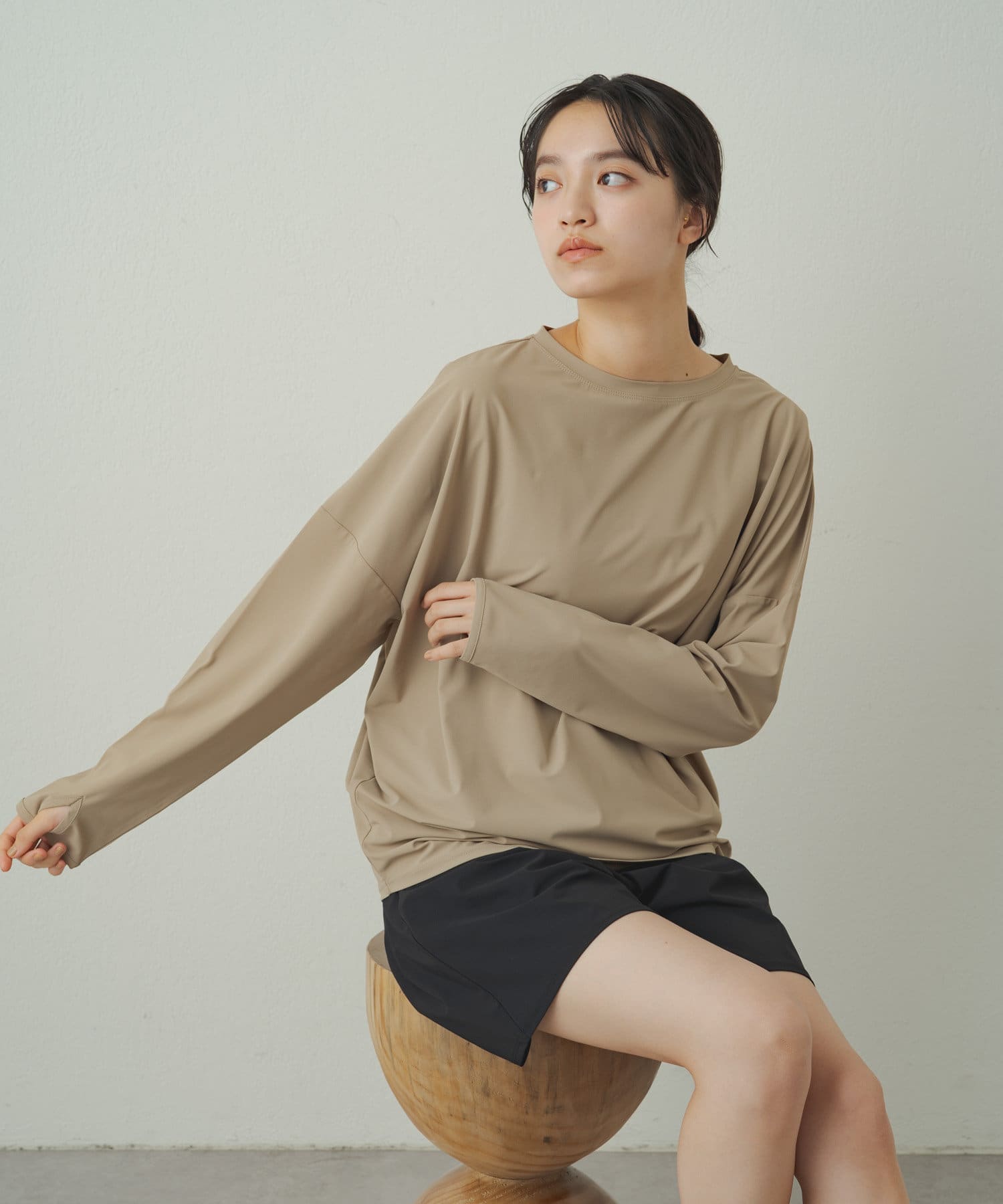 ・ゆったりとしたドルマンスリーブで、身体のラインを拾わず着やすい一枚。