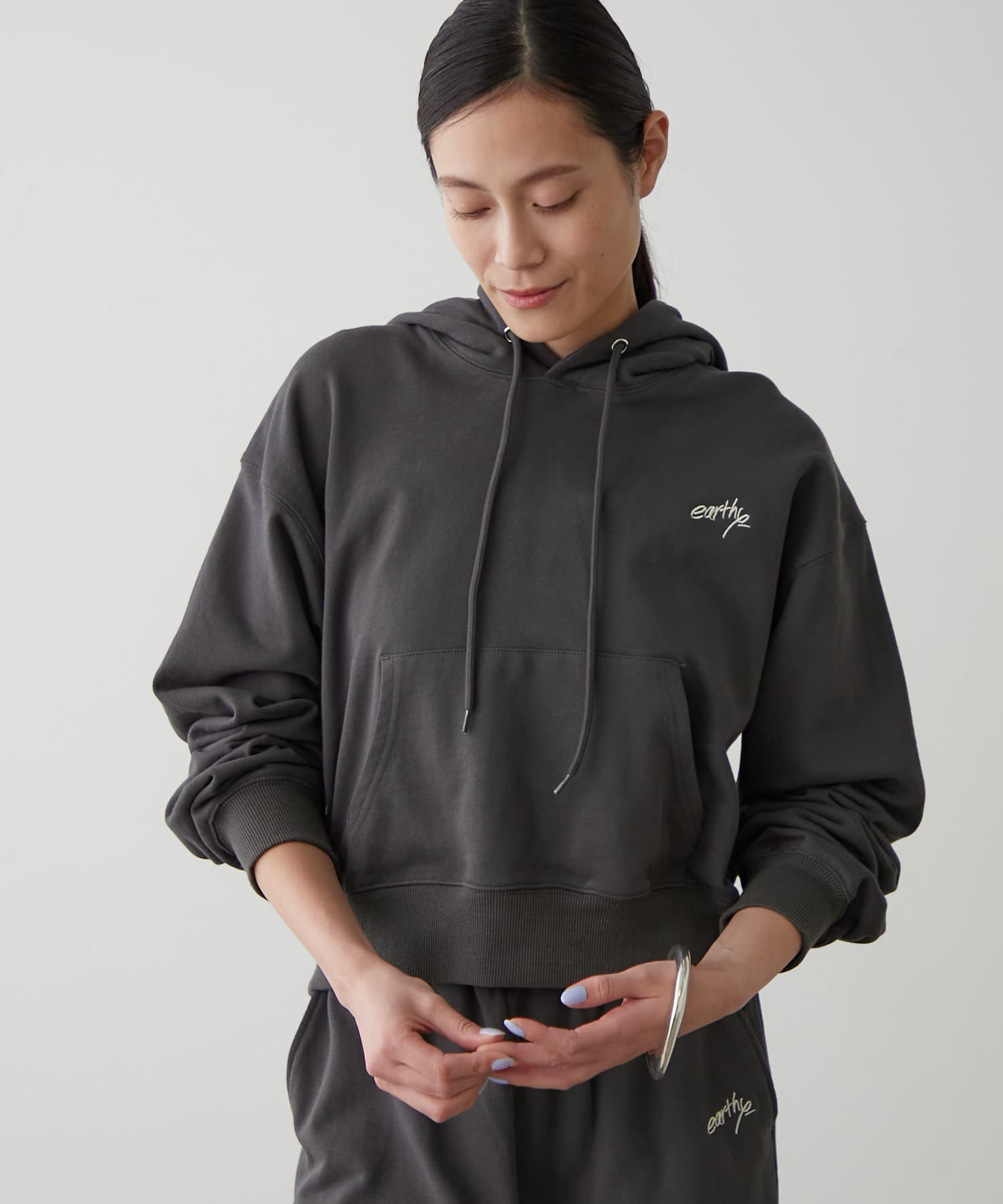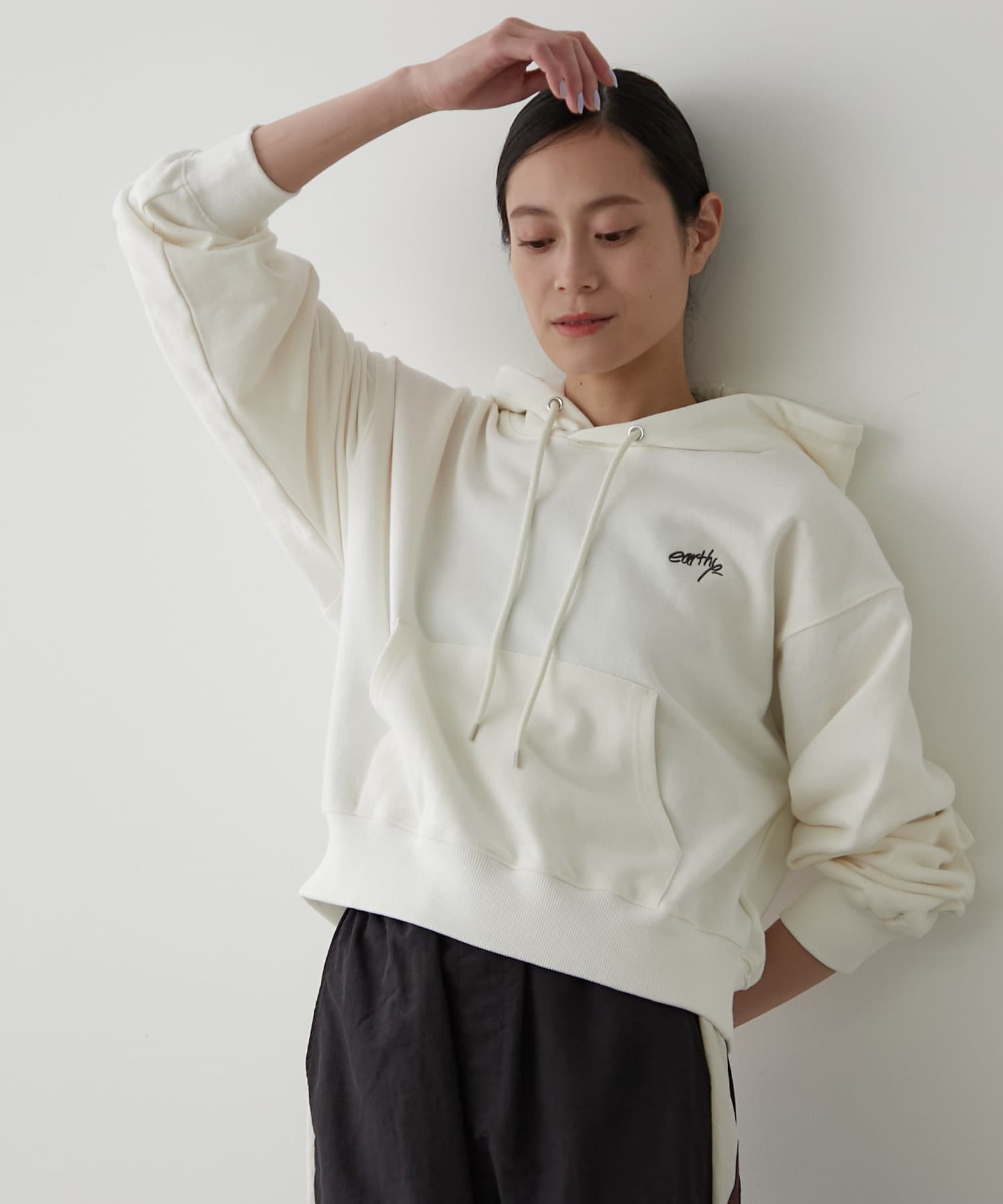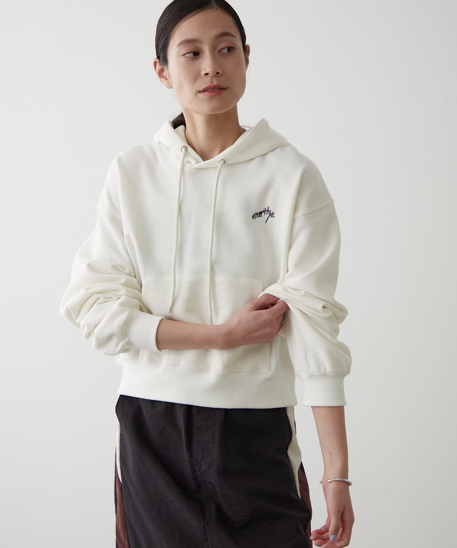 ・胸元には「earthy_」の控えめな刺繍が施され、さりげない個性をプラス。主張しすぎないデザインだからこそ、様々なシーンで活躍します。