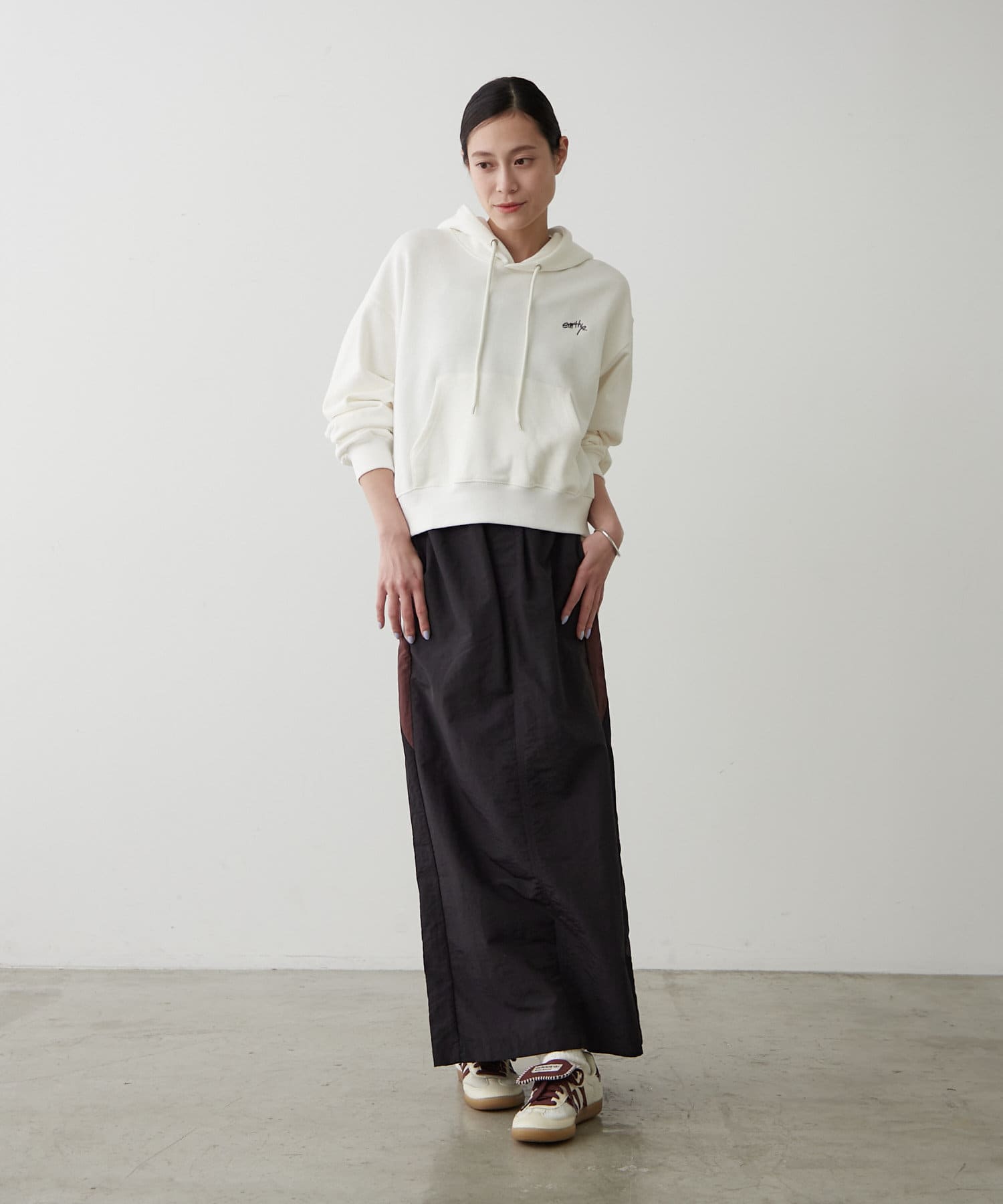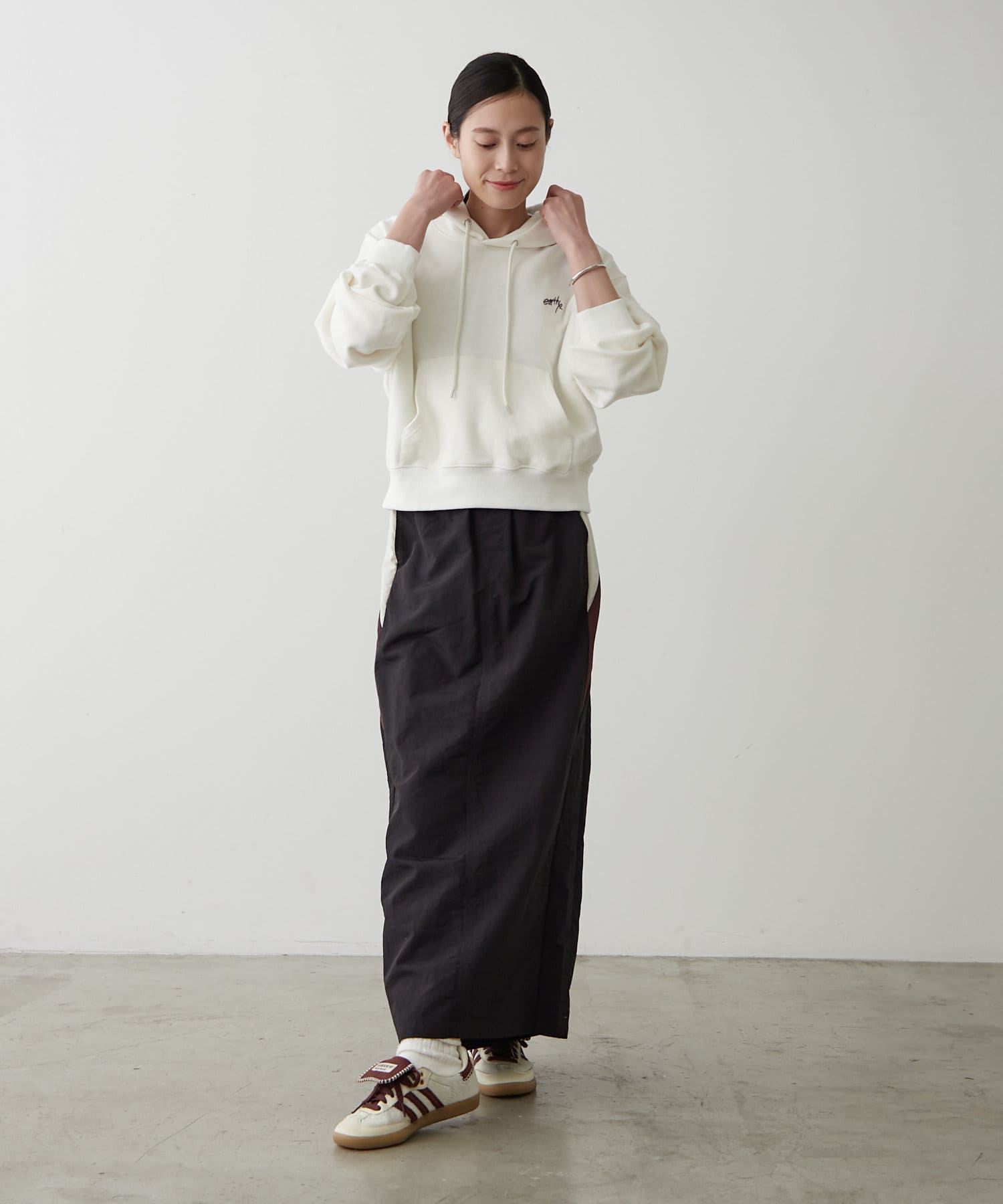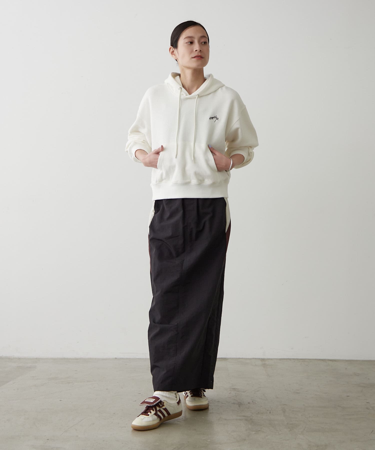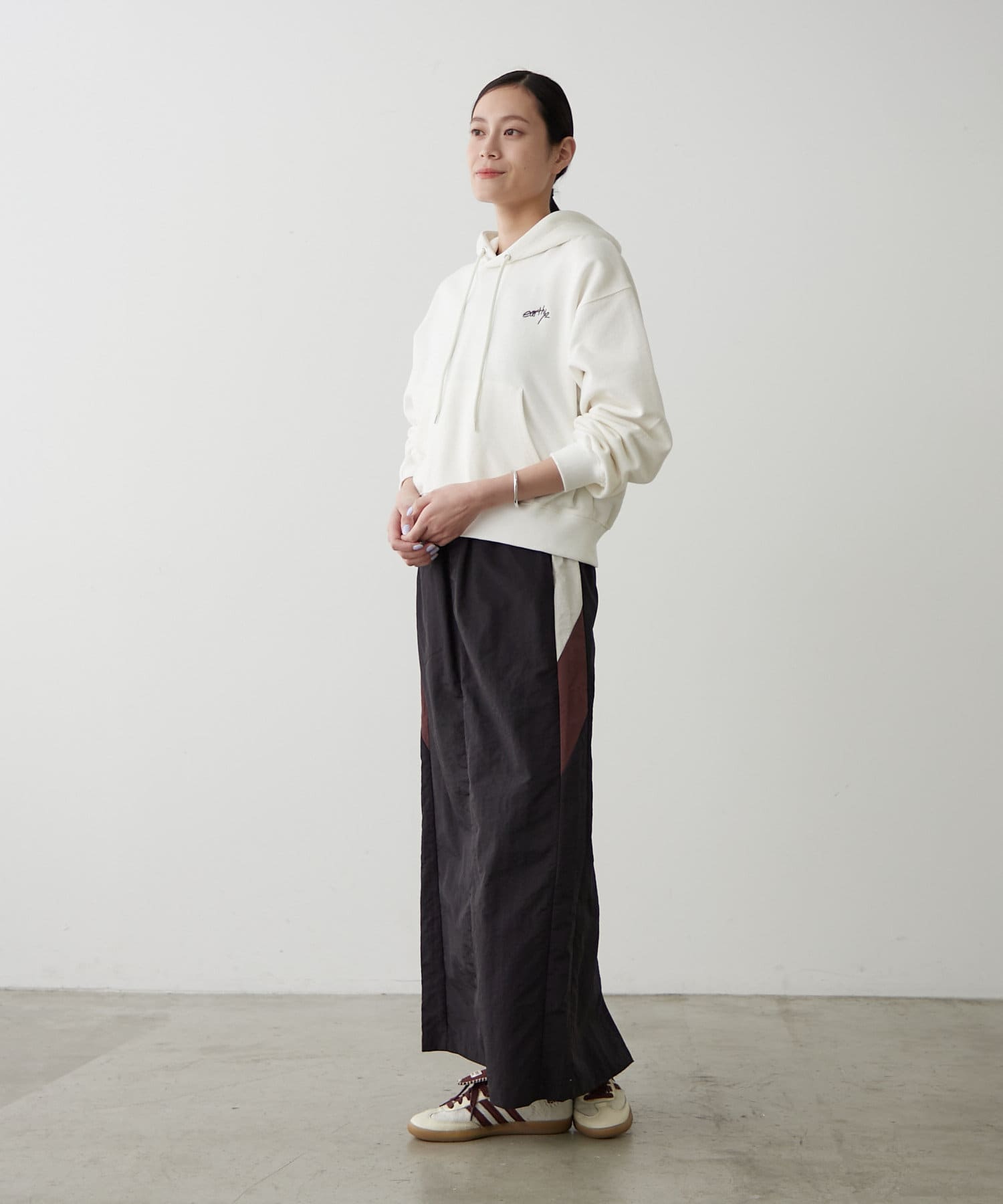 ・胸元には「earthy_」の控えめな刺繍が施され、さりげない個性をプラス。主張しすぎないデザインだからこそ、様々なシーンで活躍します。