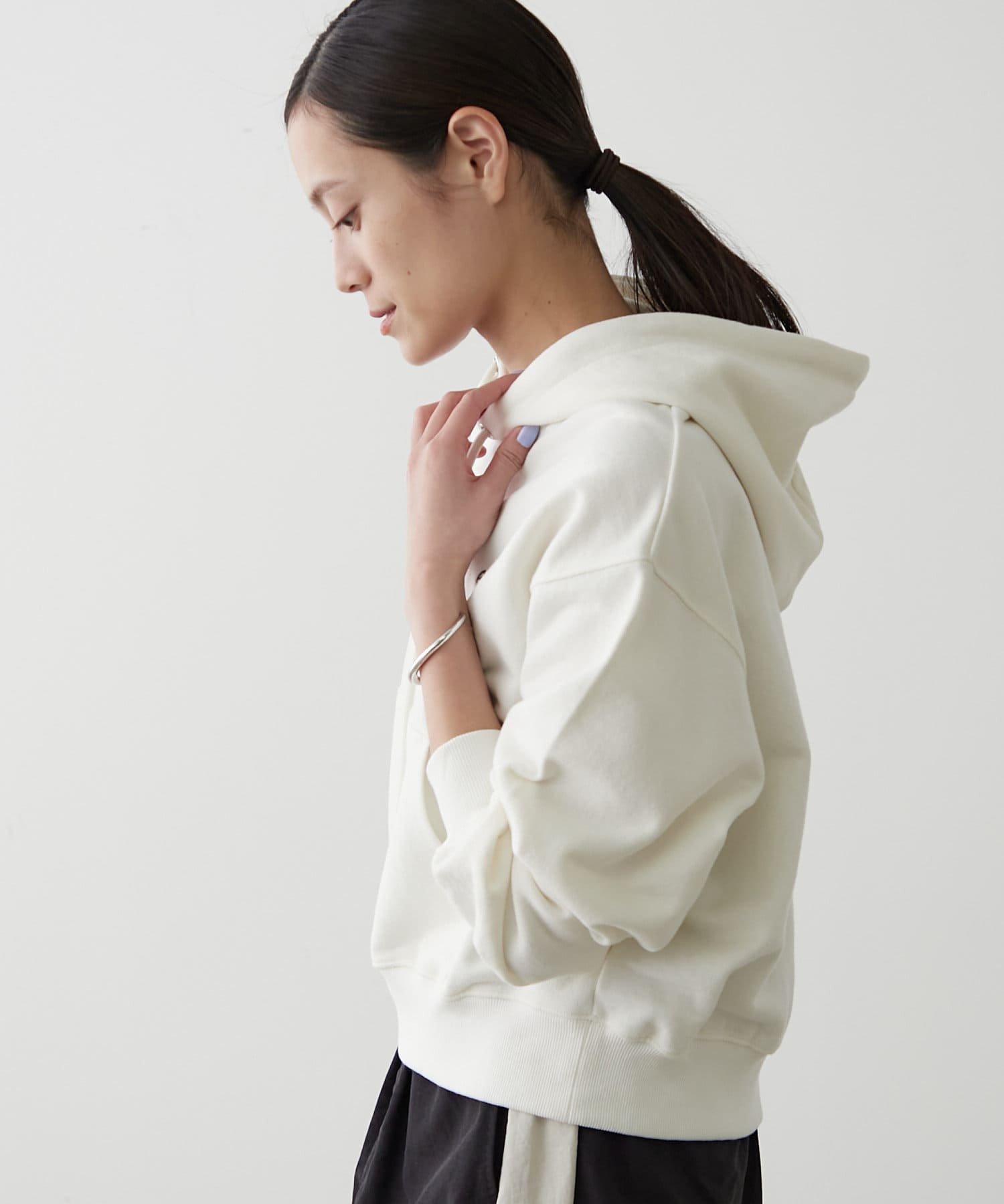 ・フードは優しく顔を包み込み、着心地の良さをさらに高めてくれます。ゆったりとした袖は、動きやすさも抜群。一日中着ていても疲れません。