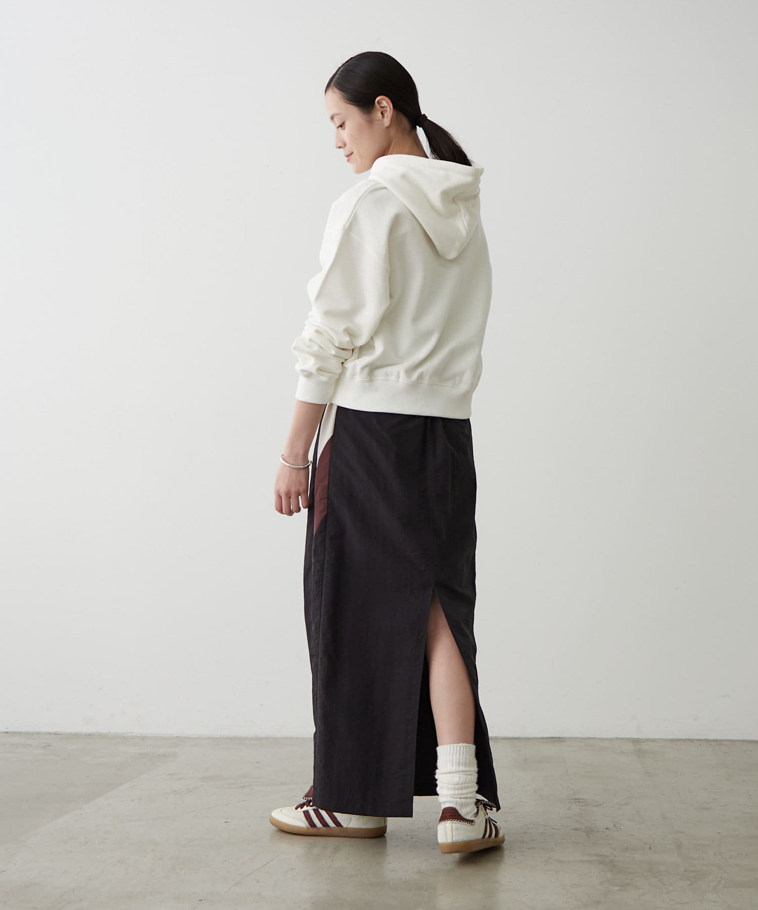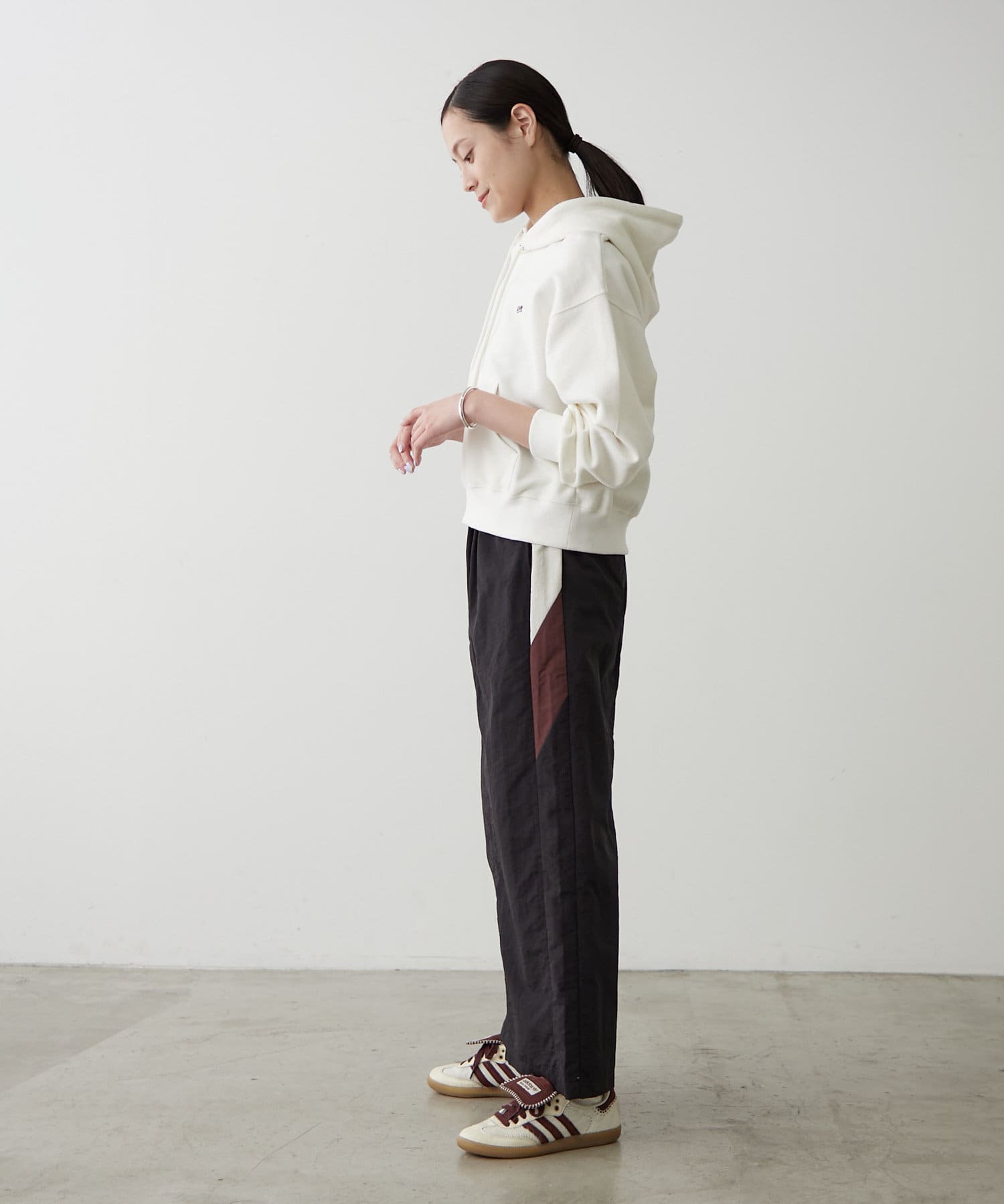 ジーンズやワイドパンツと合わせて、リラックスしたカジュアルスタイルに。スニーカーやフラットシューズを合わせれば、アクティブな印象に。