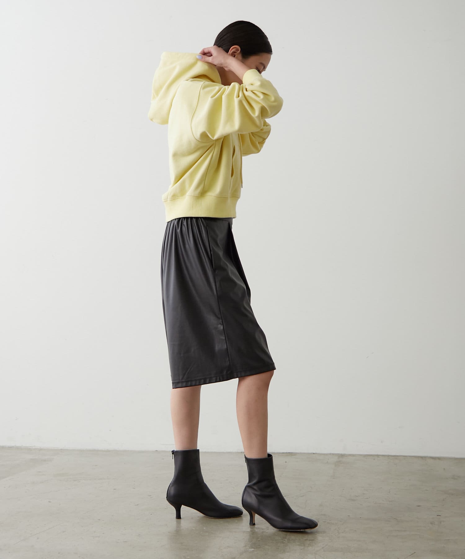 ・滑らかな表面感とシルエットを綺麗に出しつつ、ハリ感がありすぎないので身体にほどよく馴染むのが特徴。