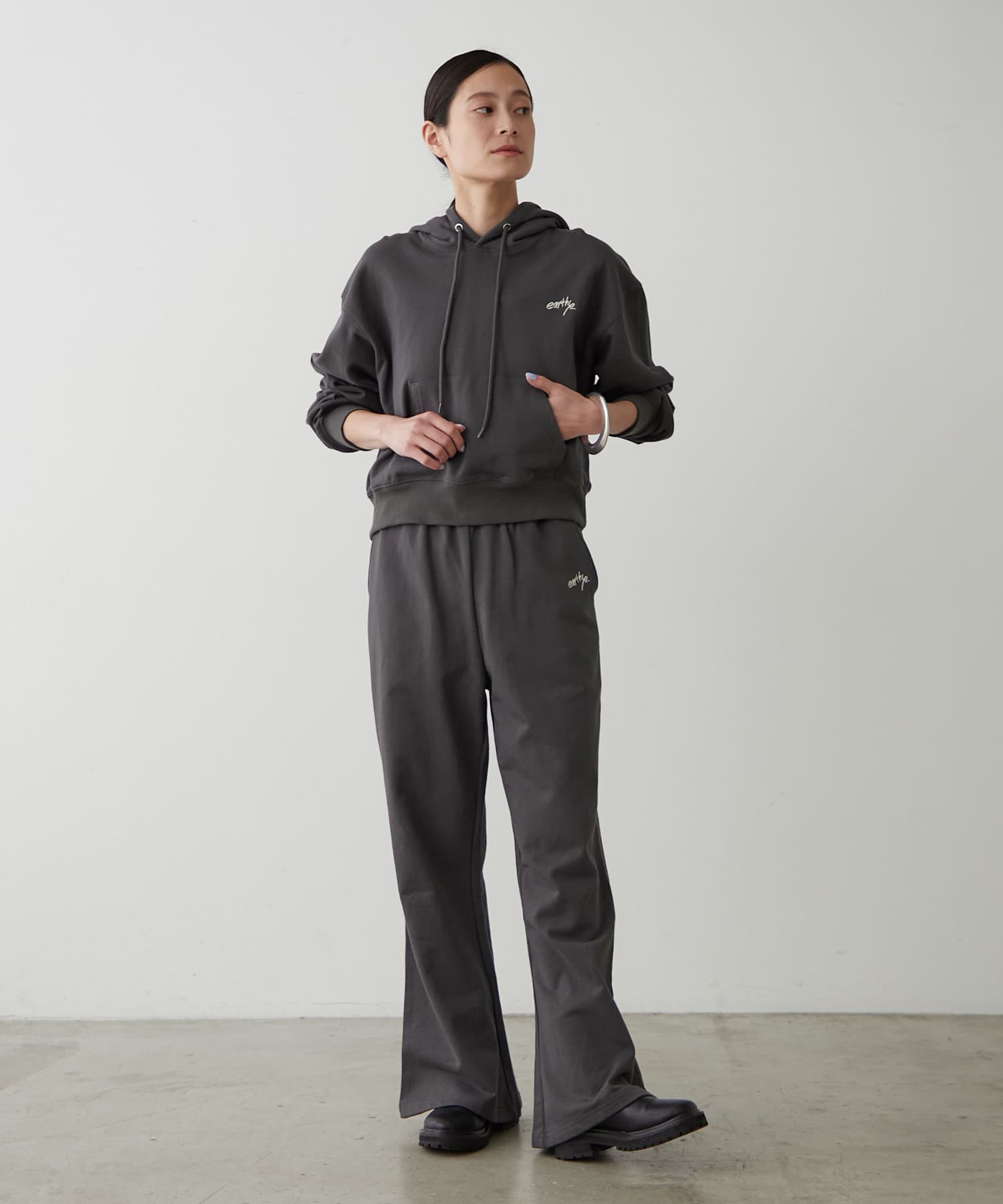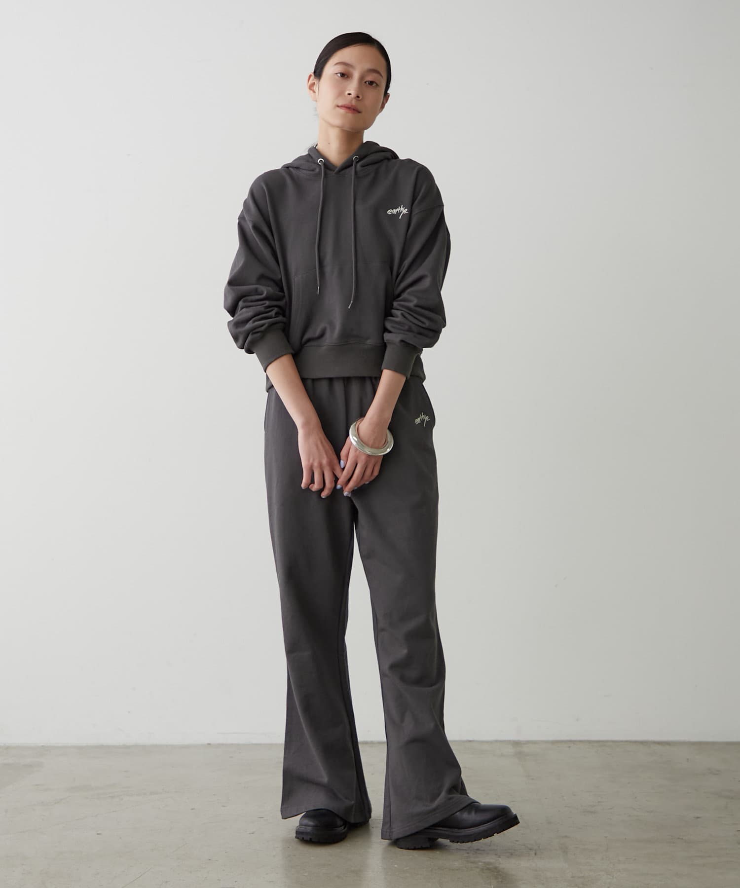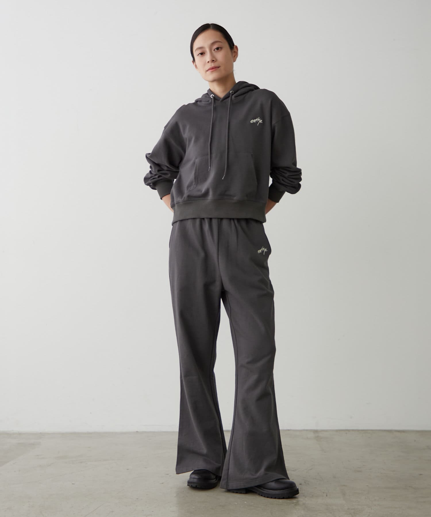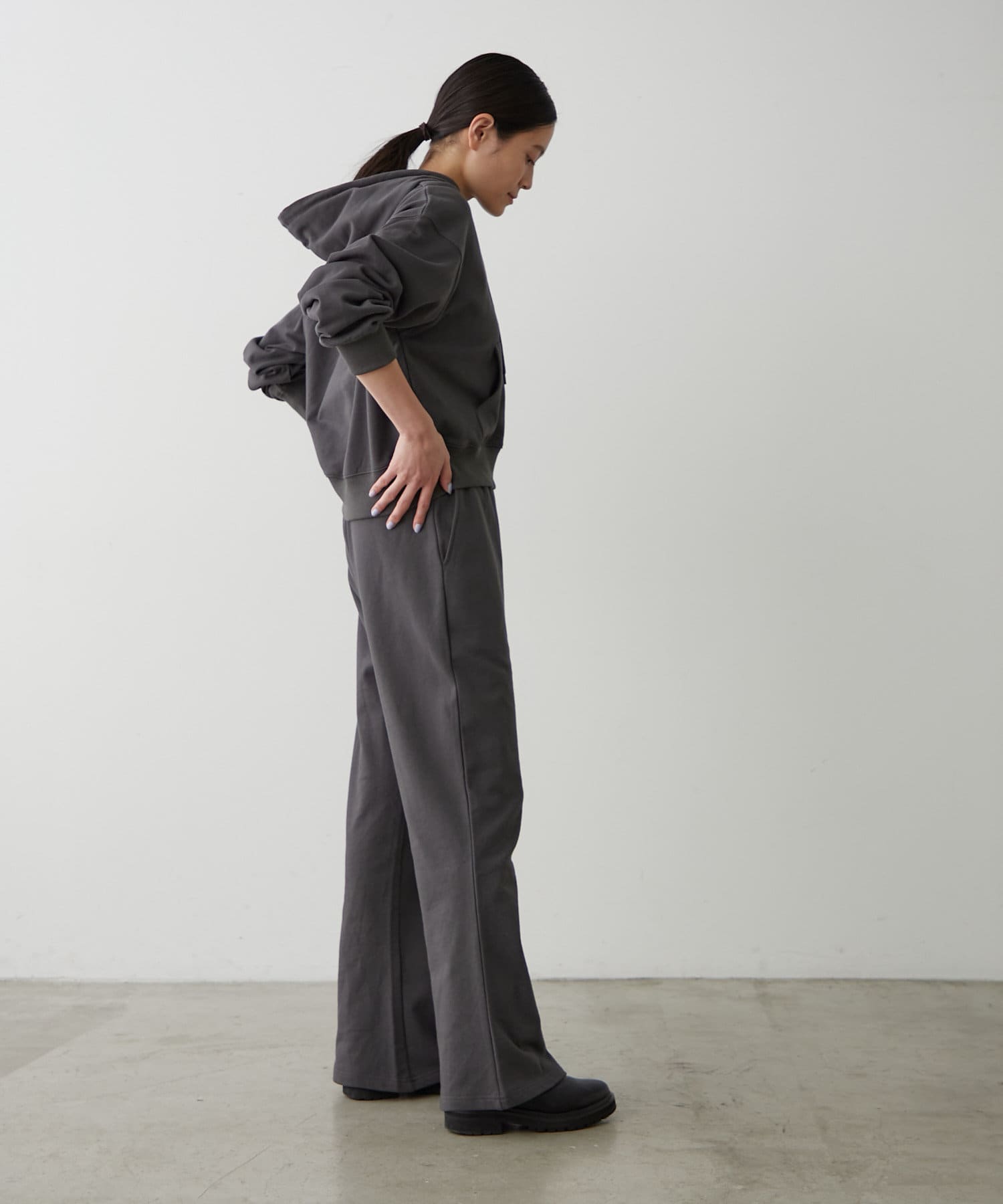・同素材で展開のある、スウェットフレアパンツと合わせてセットアップで着こなすのもおすすめです!