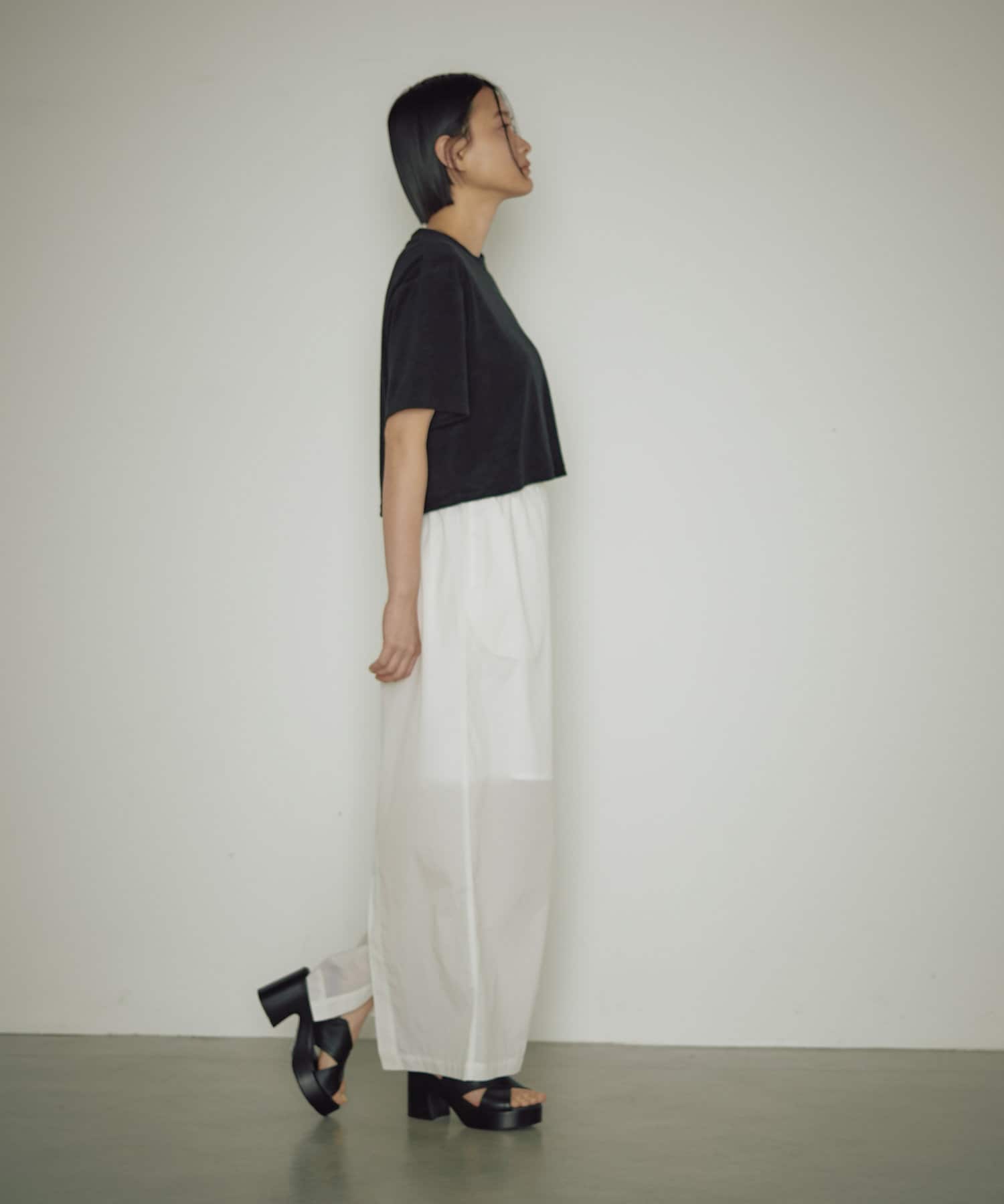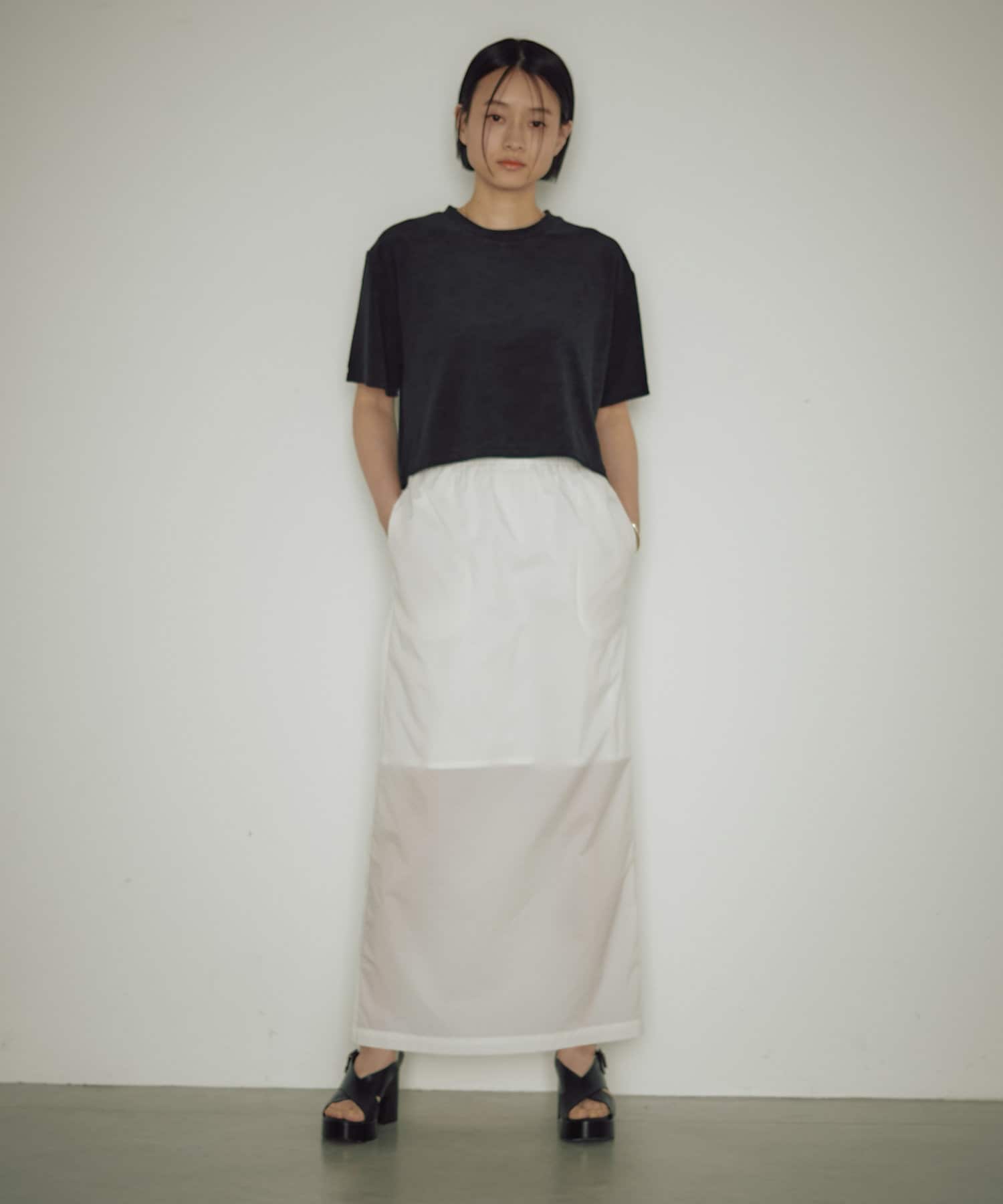 ・ナイロン素材でカジュアルながらも、シアー感があるのでコーディネートにトレンド感をプラスできます。