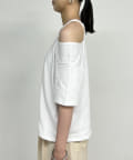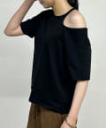 ・一枚着はもちろん、シャツやジャケットのインナーにしてもカットアウト部分がチラ見えするので抜け感に◎