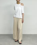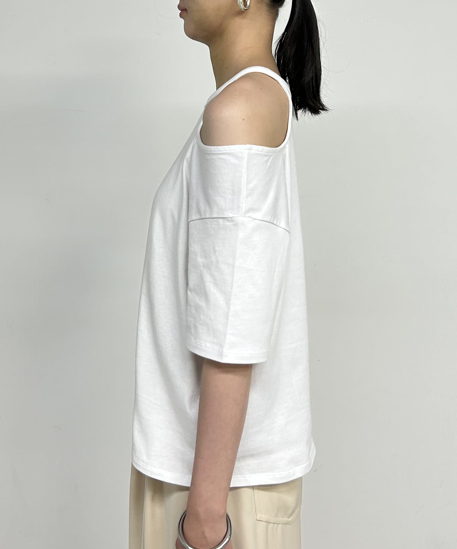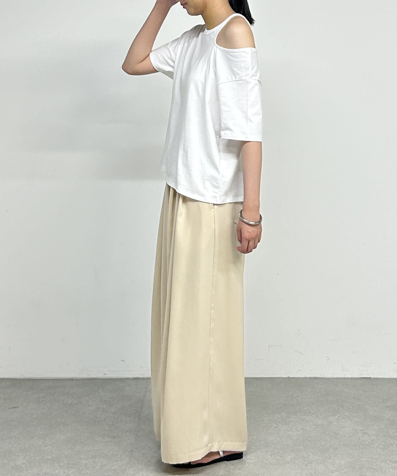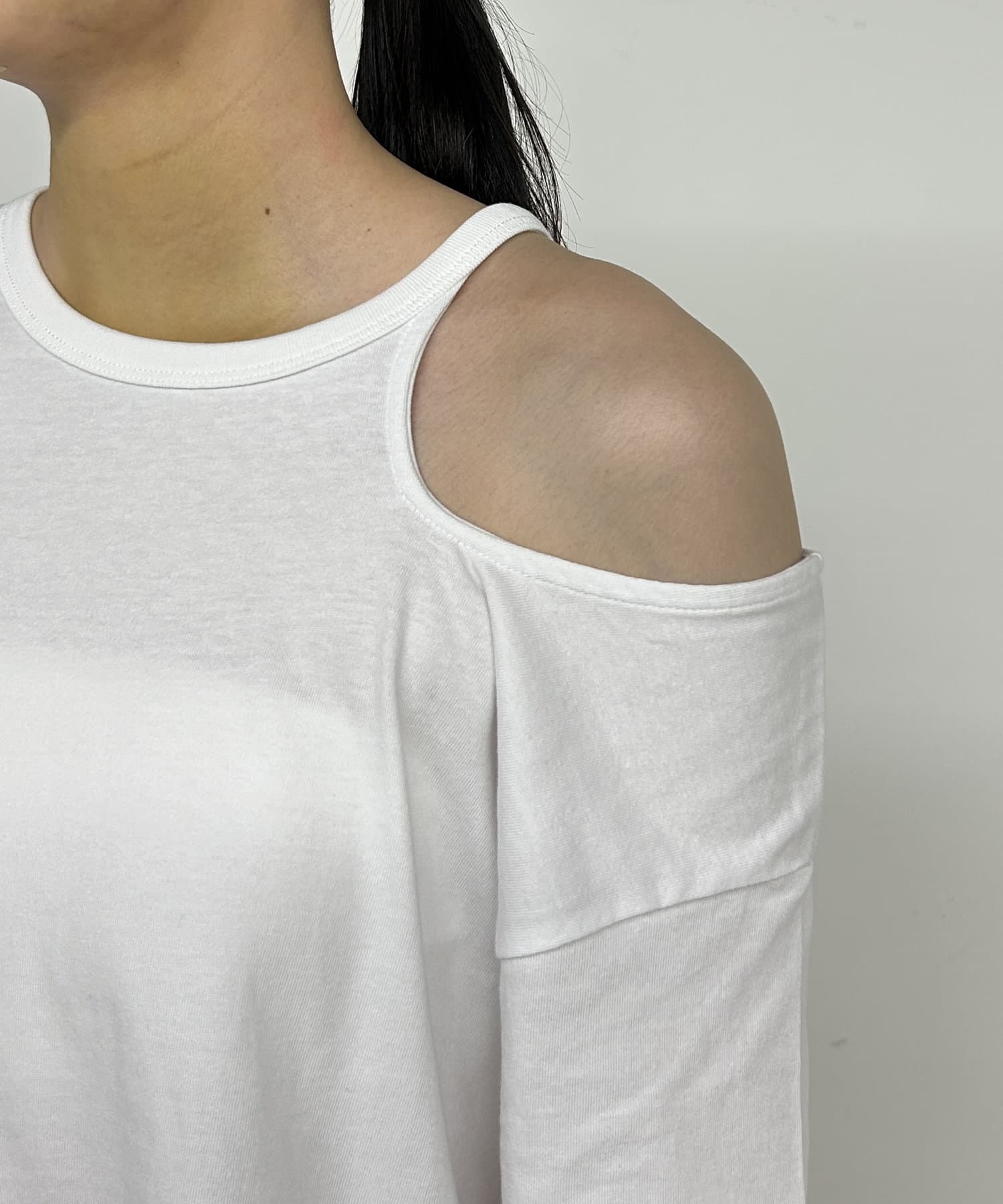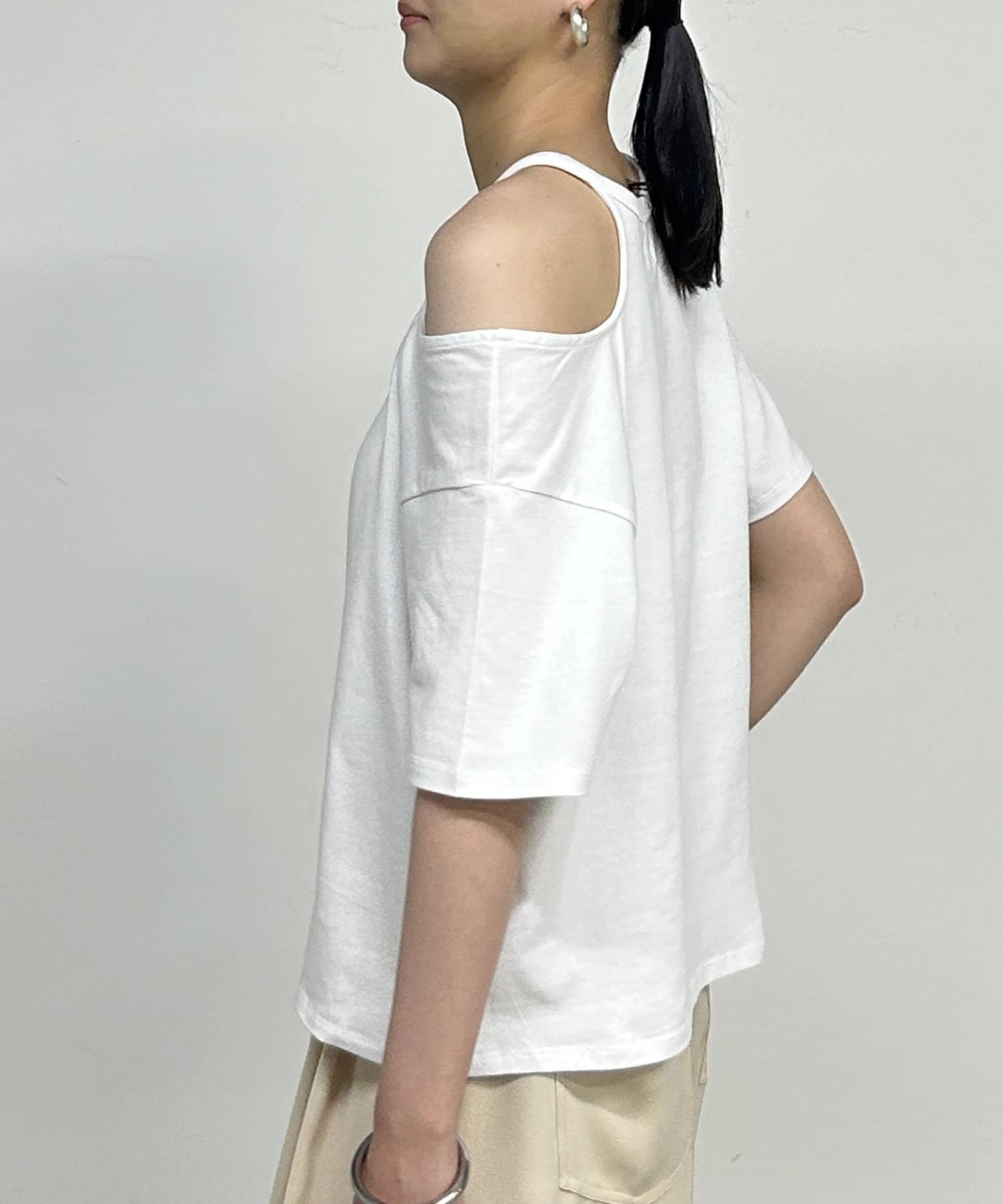 ・肩のラインに沿ったカットアウトが、さりげない肌見せで抜け感をプラスしてくれます。