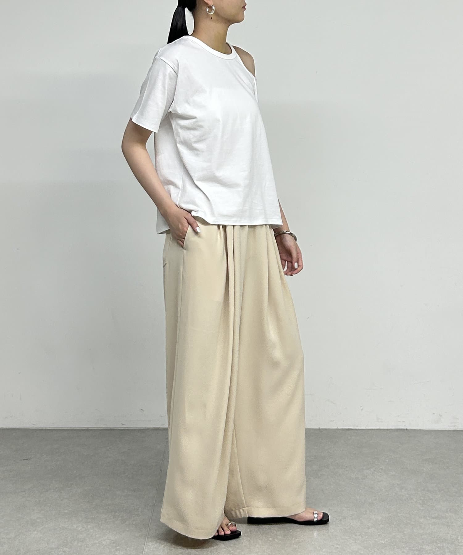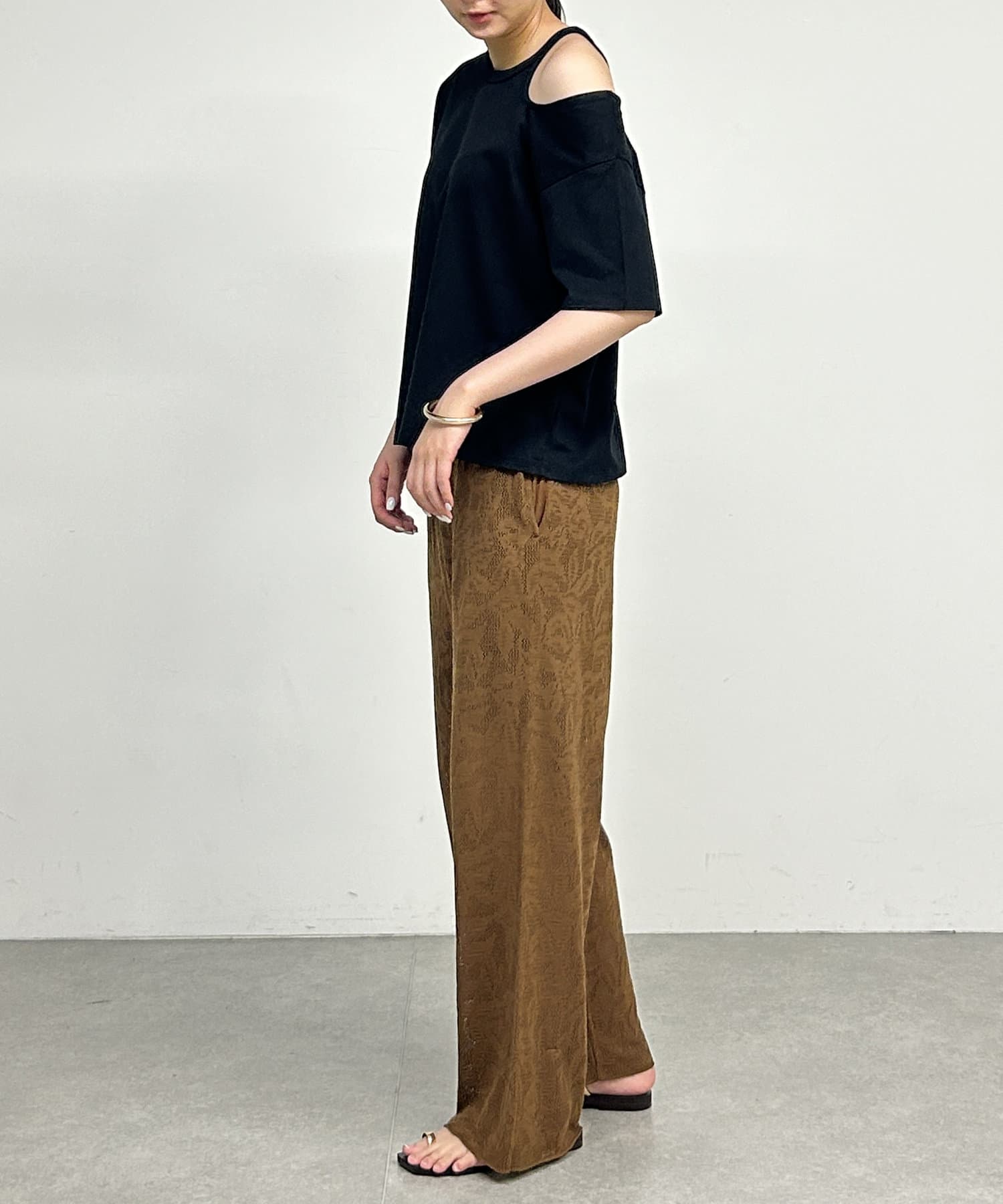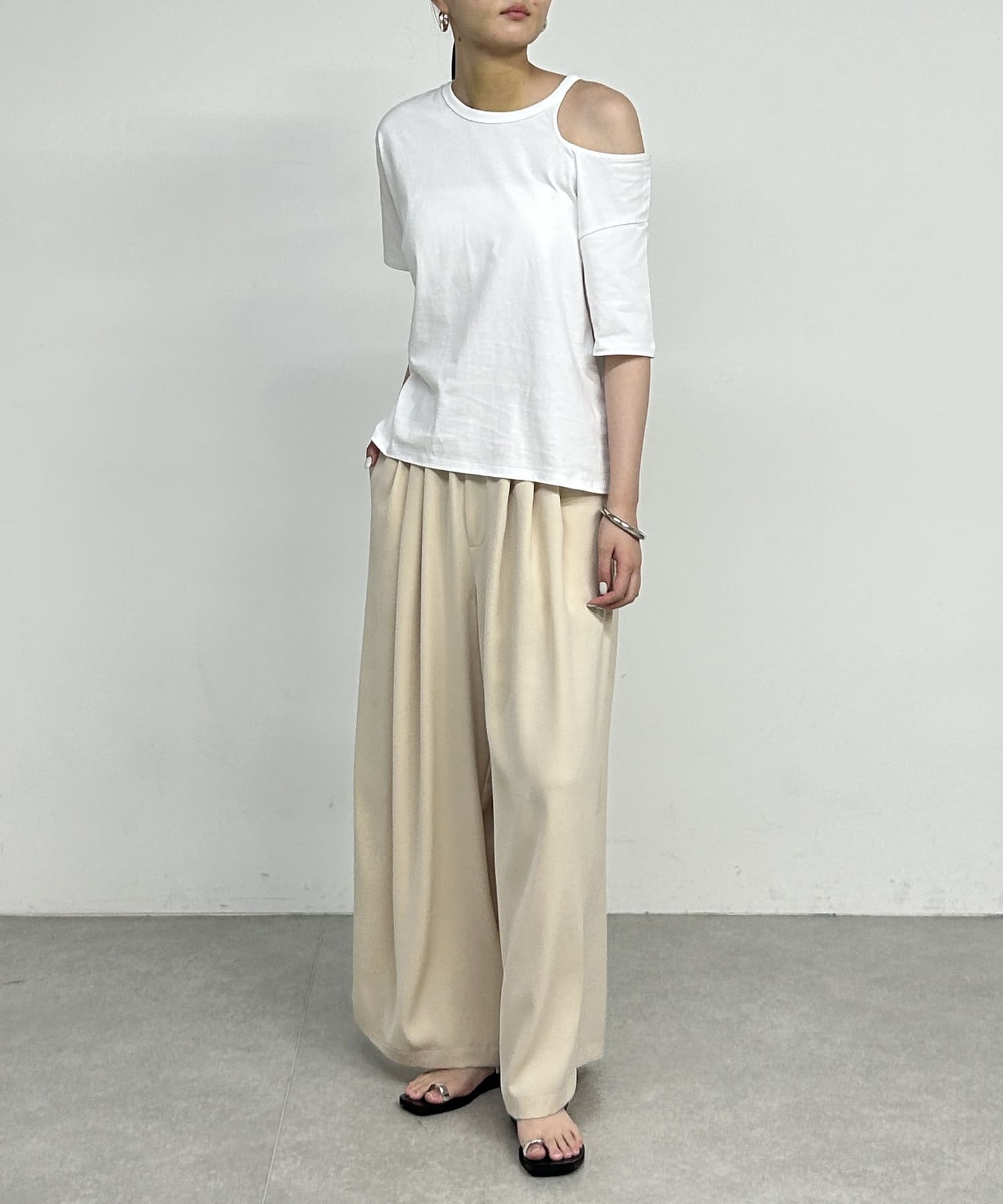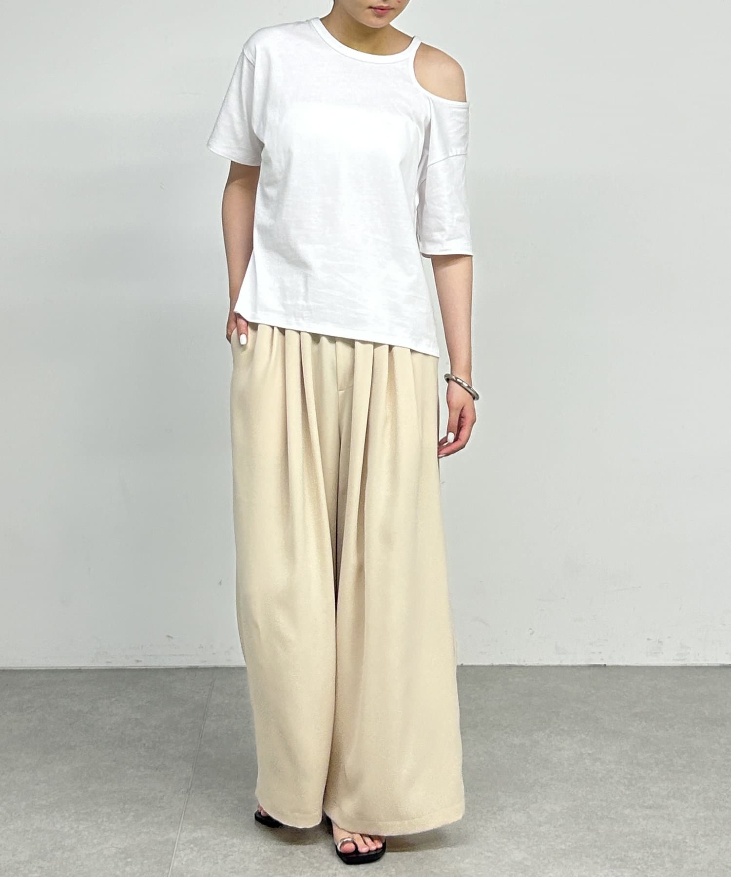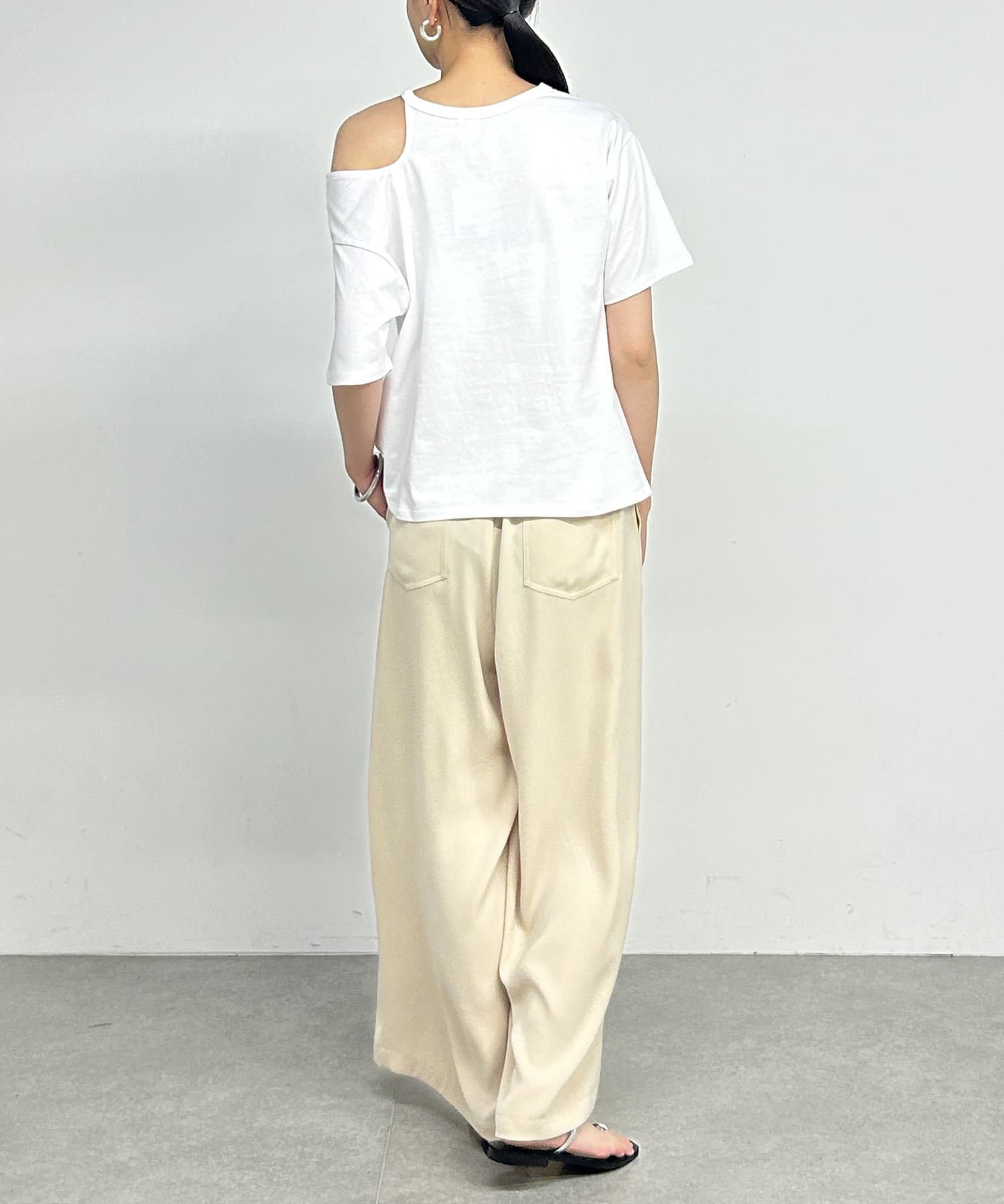 ・肩のラインに沿ったカットアウトが、さりげない肌見せで抜け感をプラスしてくれます。