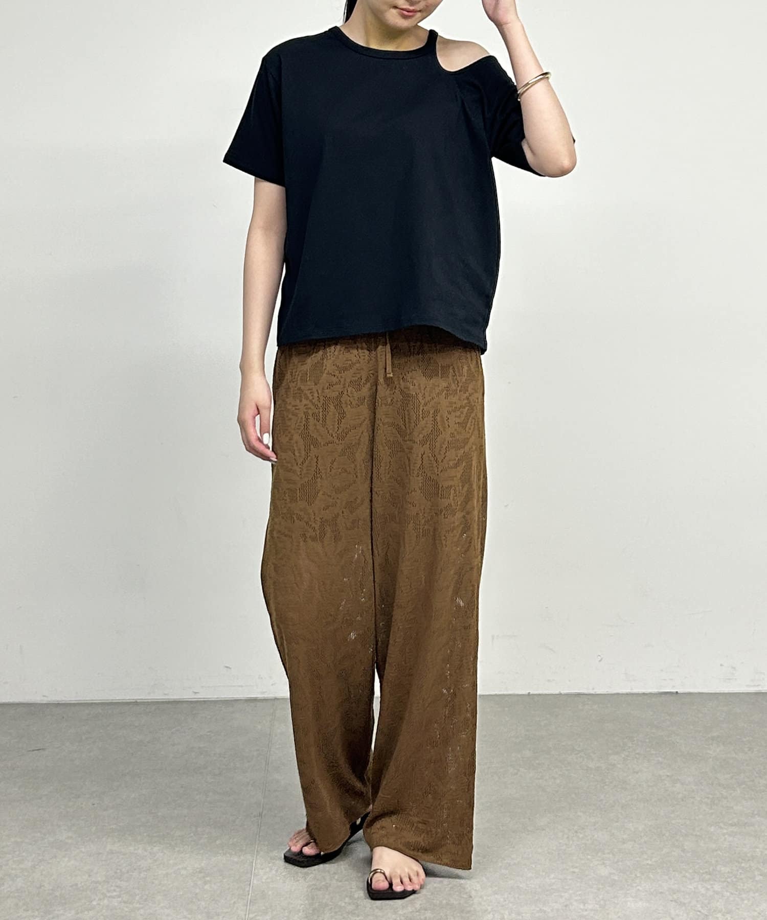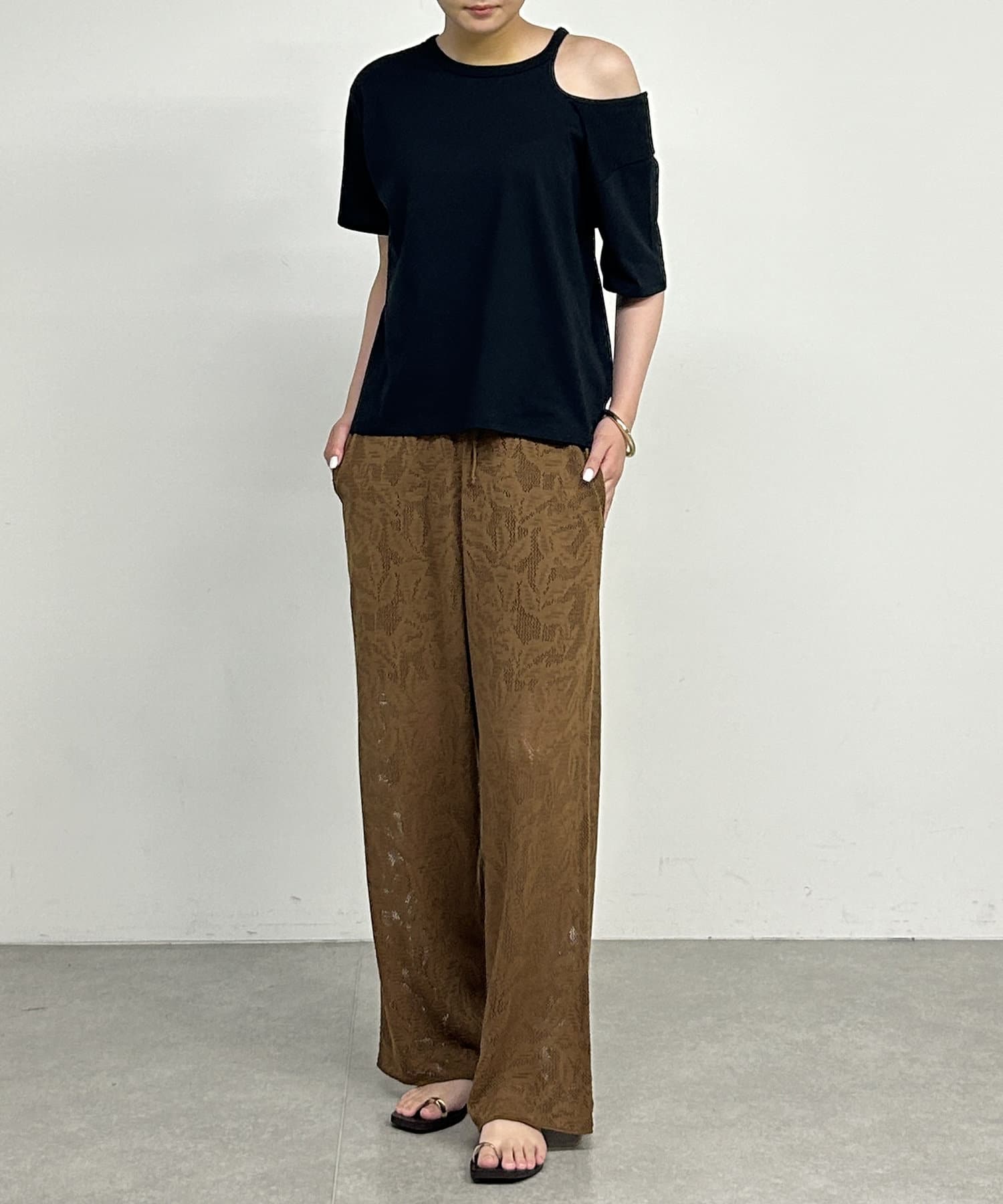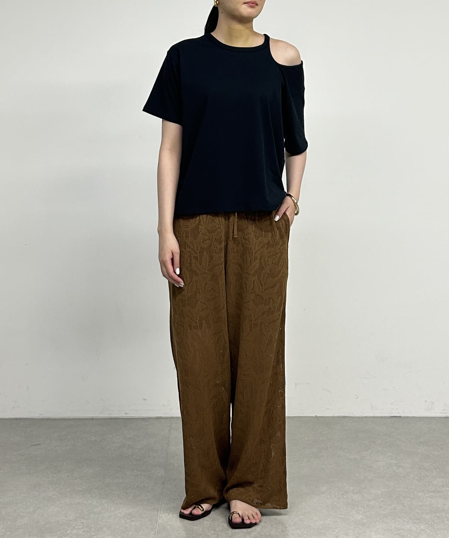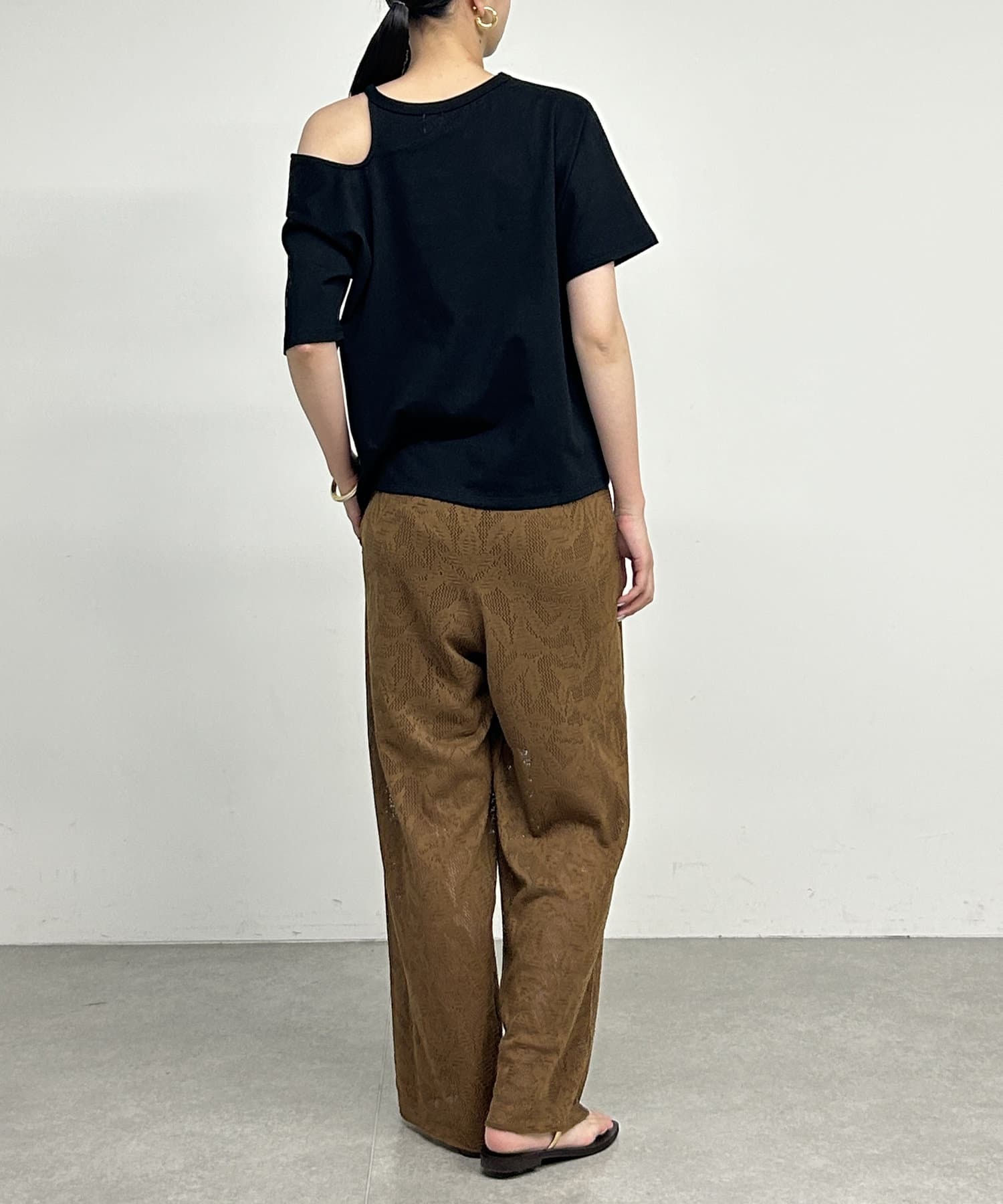 ・肩のラインに沿ったカットアウトが、さりげない肌見せで抜け感をプラスしてくれます。