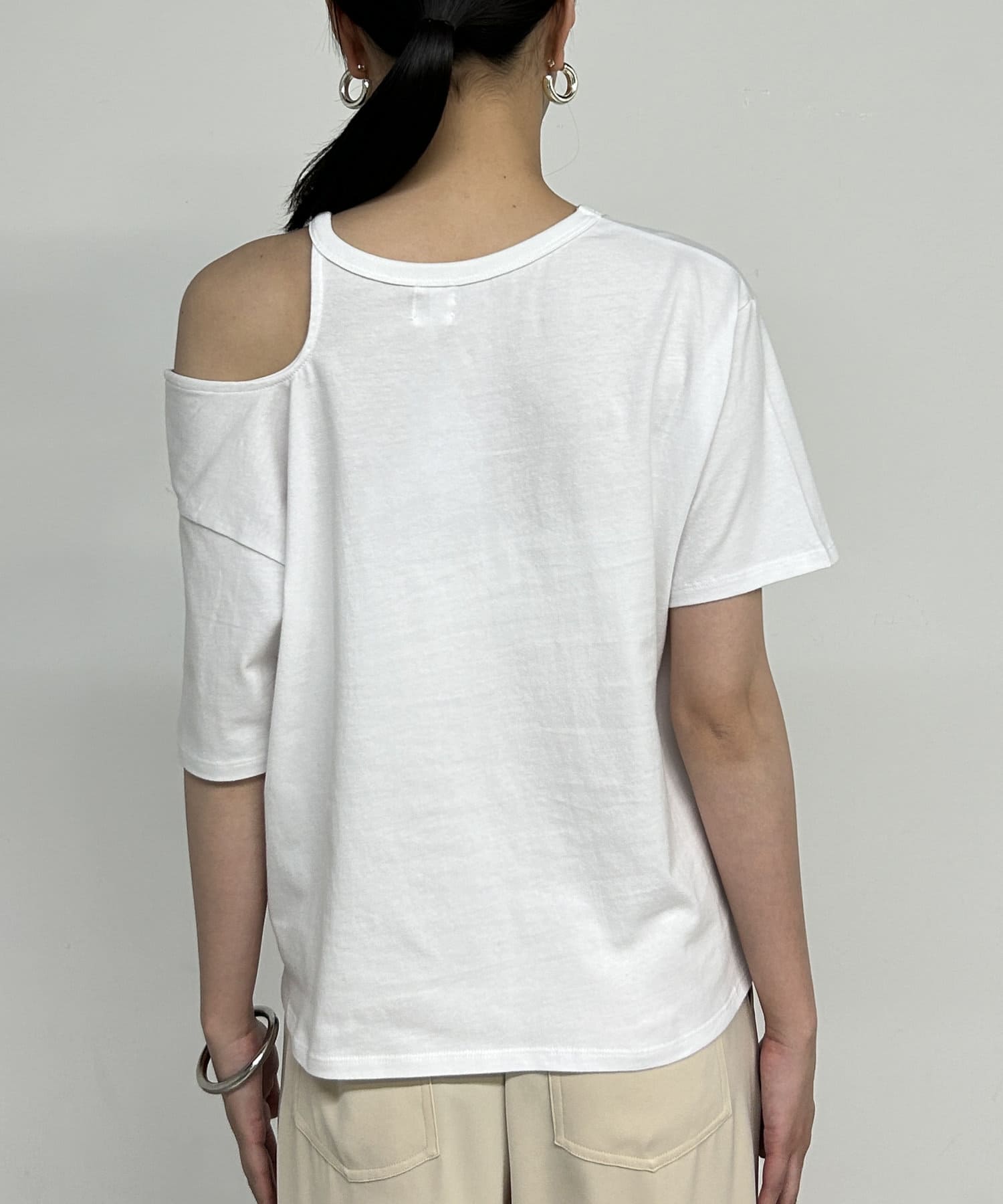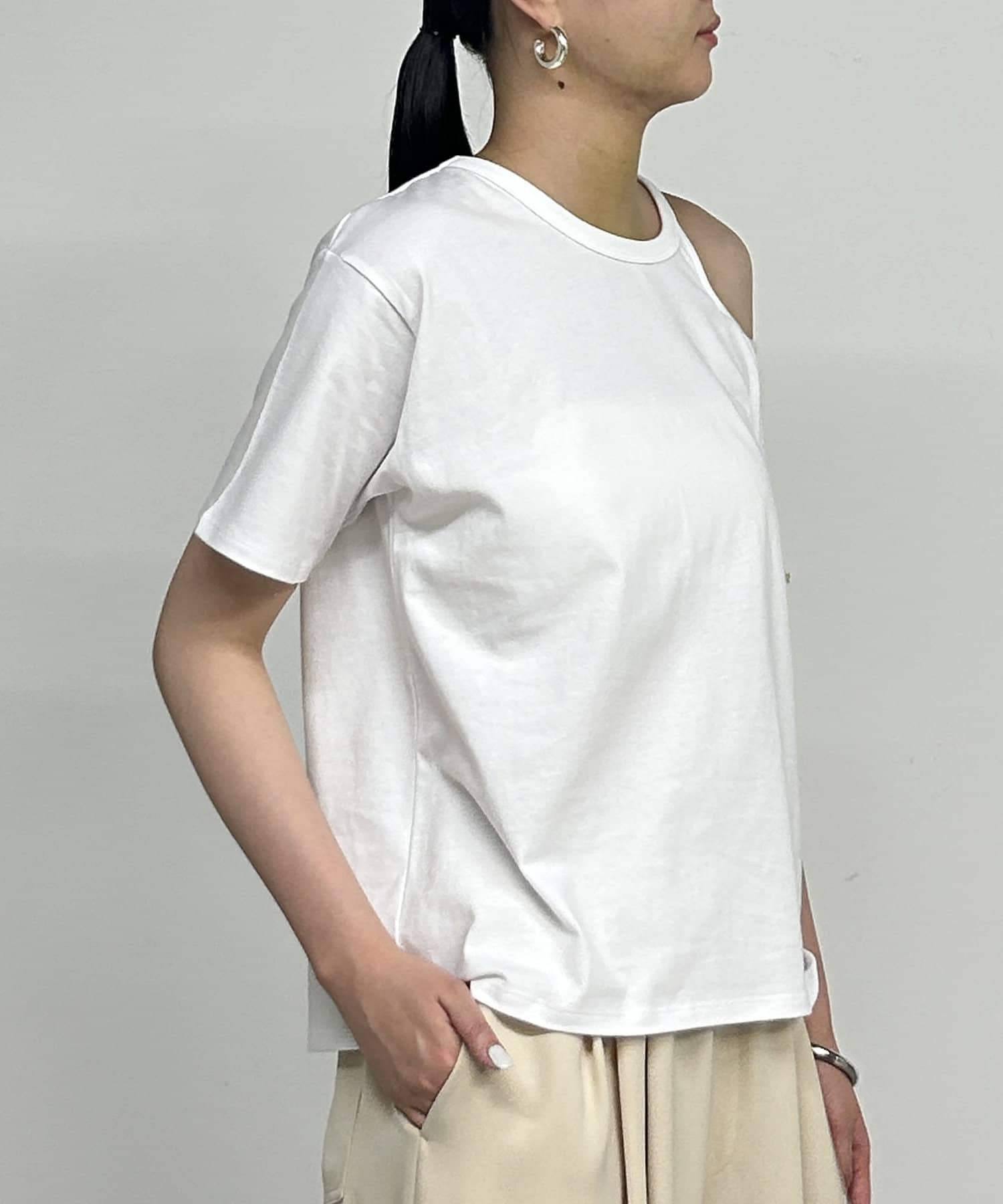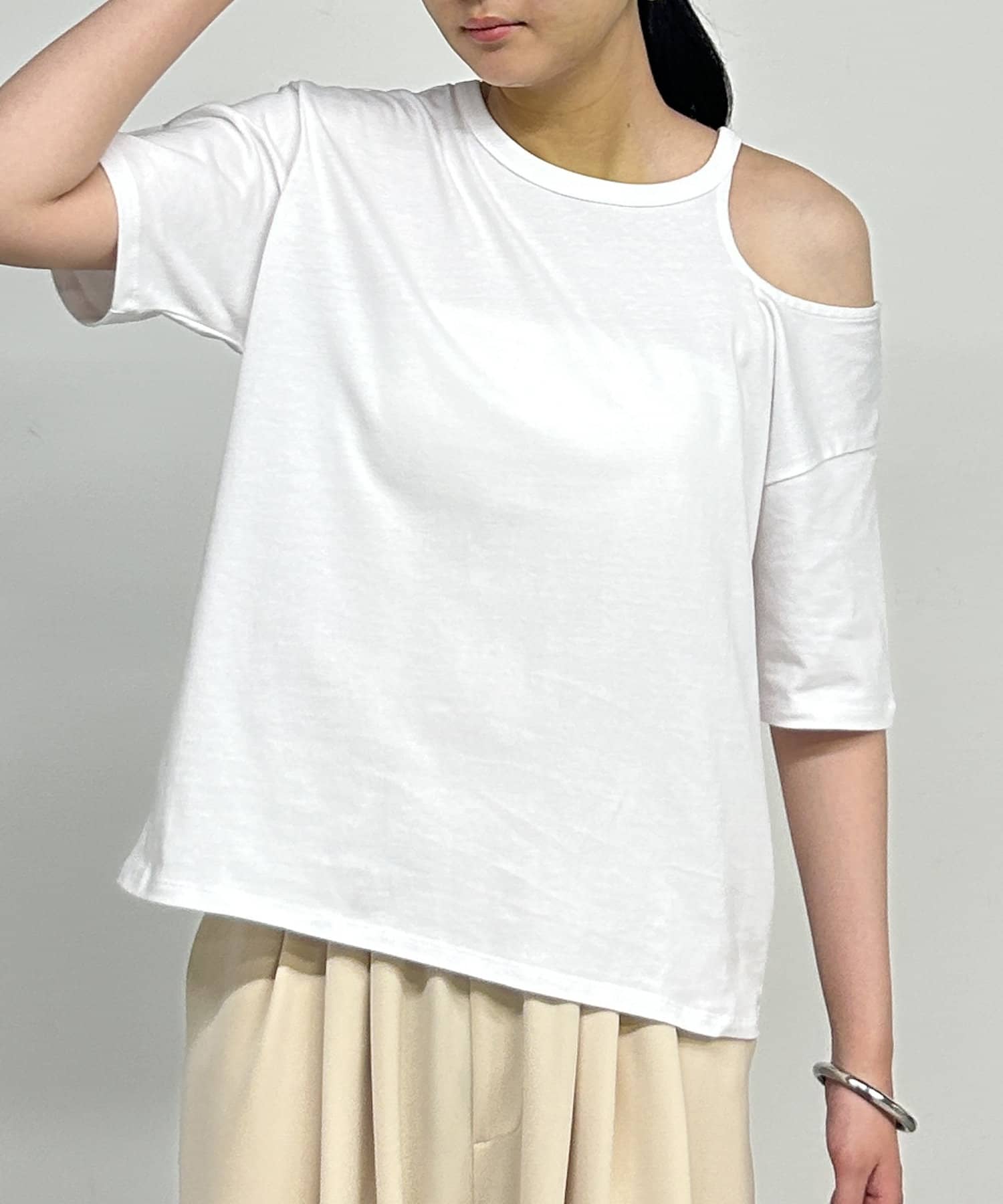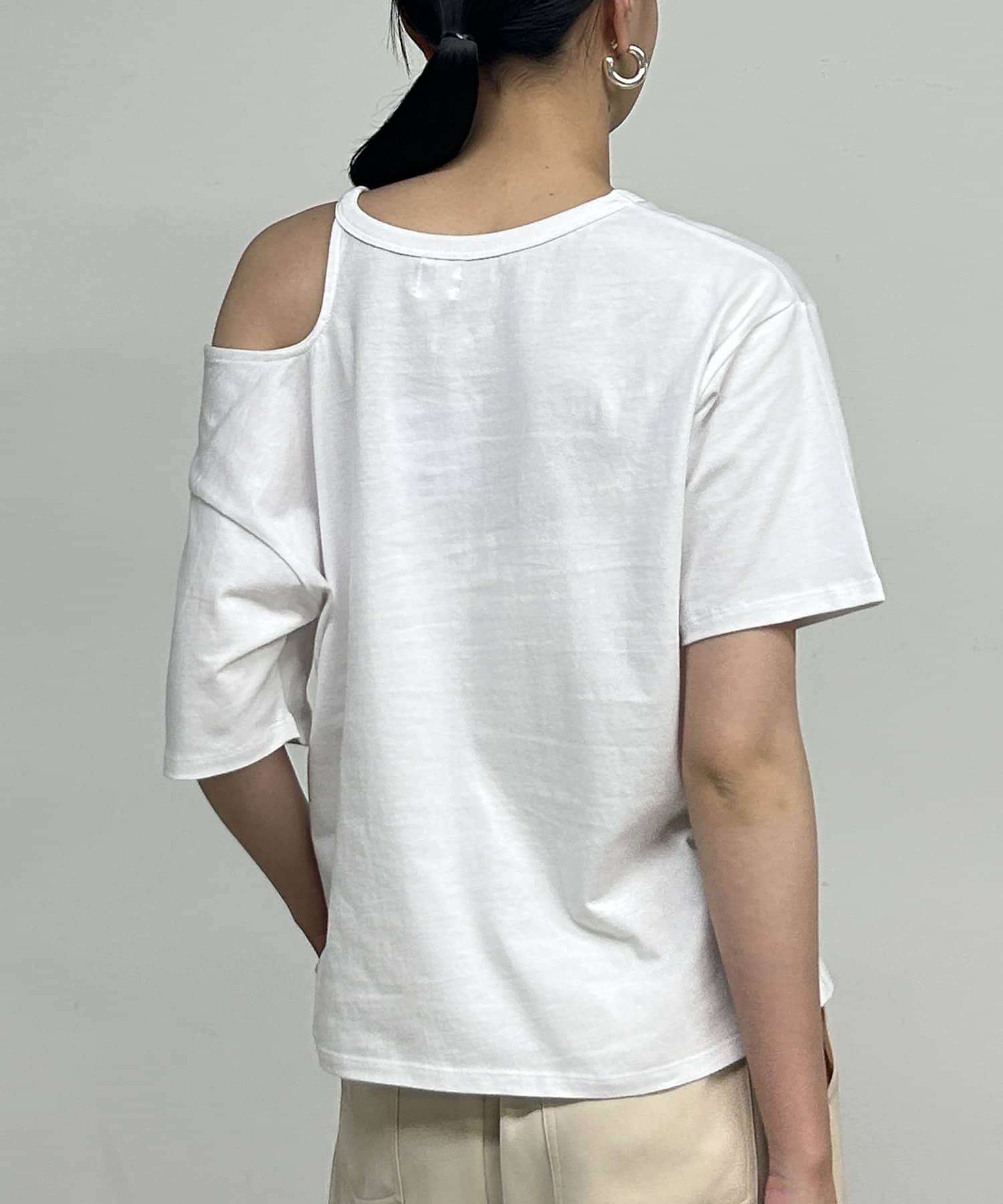 アシンメトリーデザインが魅力のカットソー