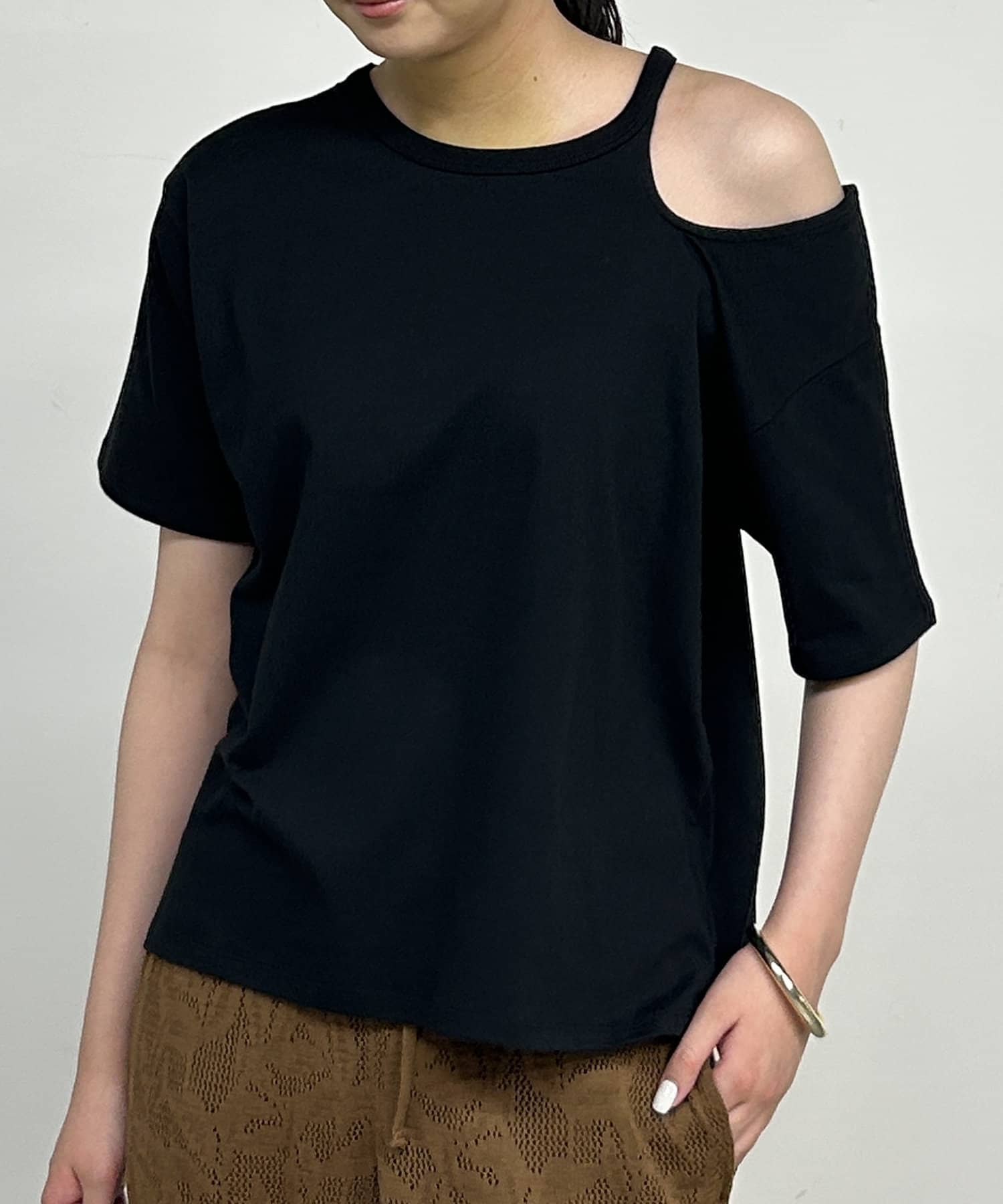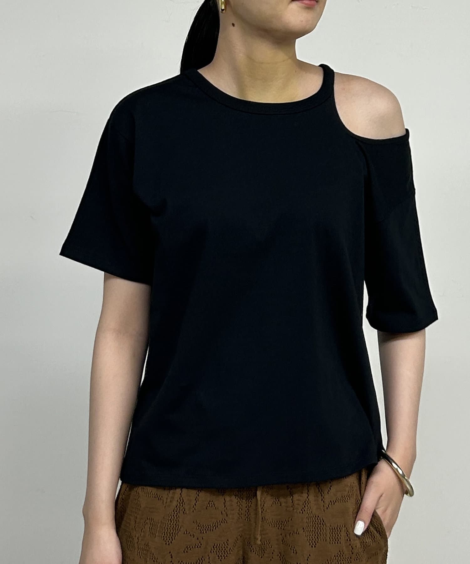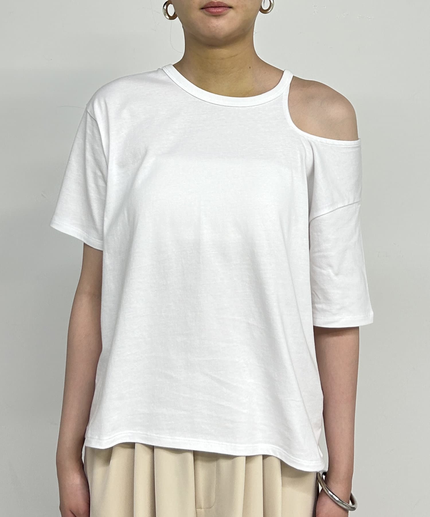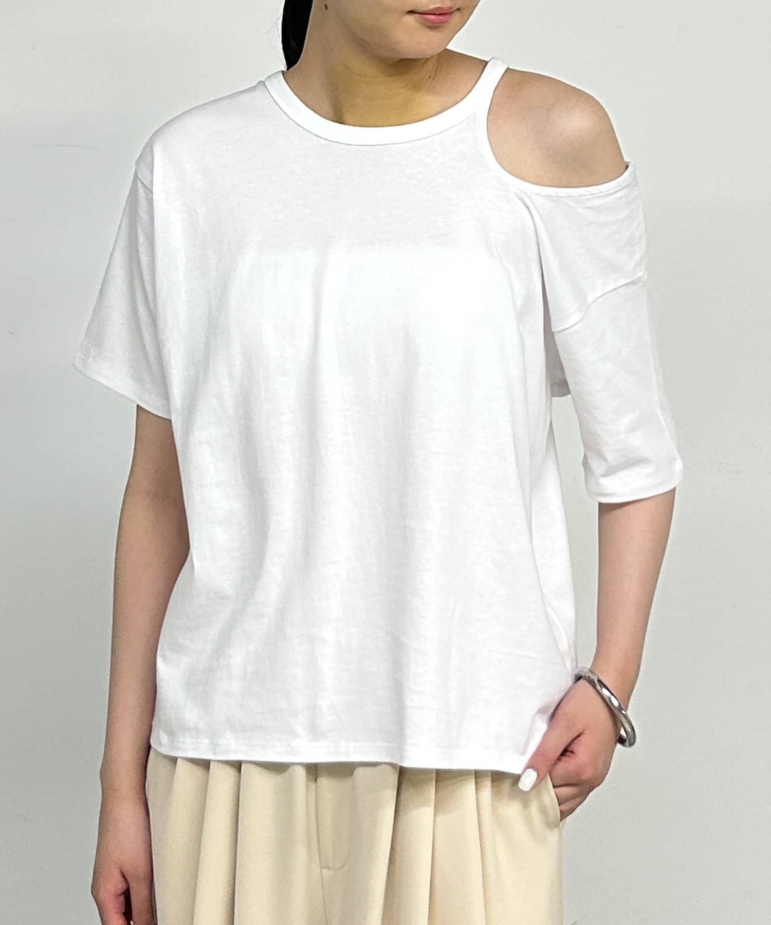アシンメトリーデザインが魅力のカットソー