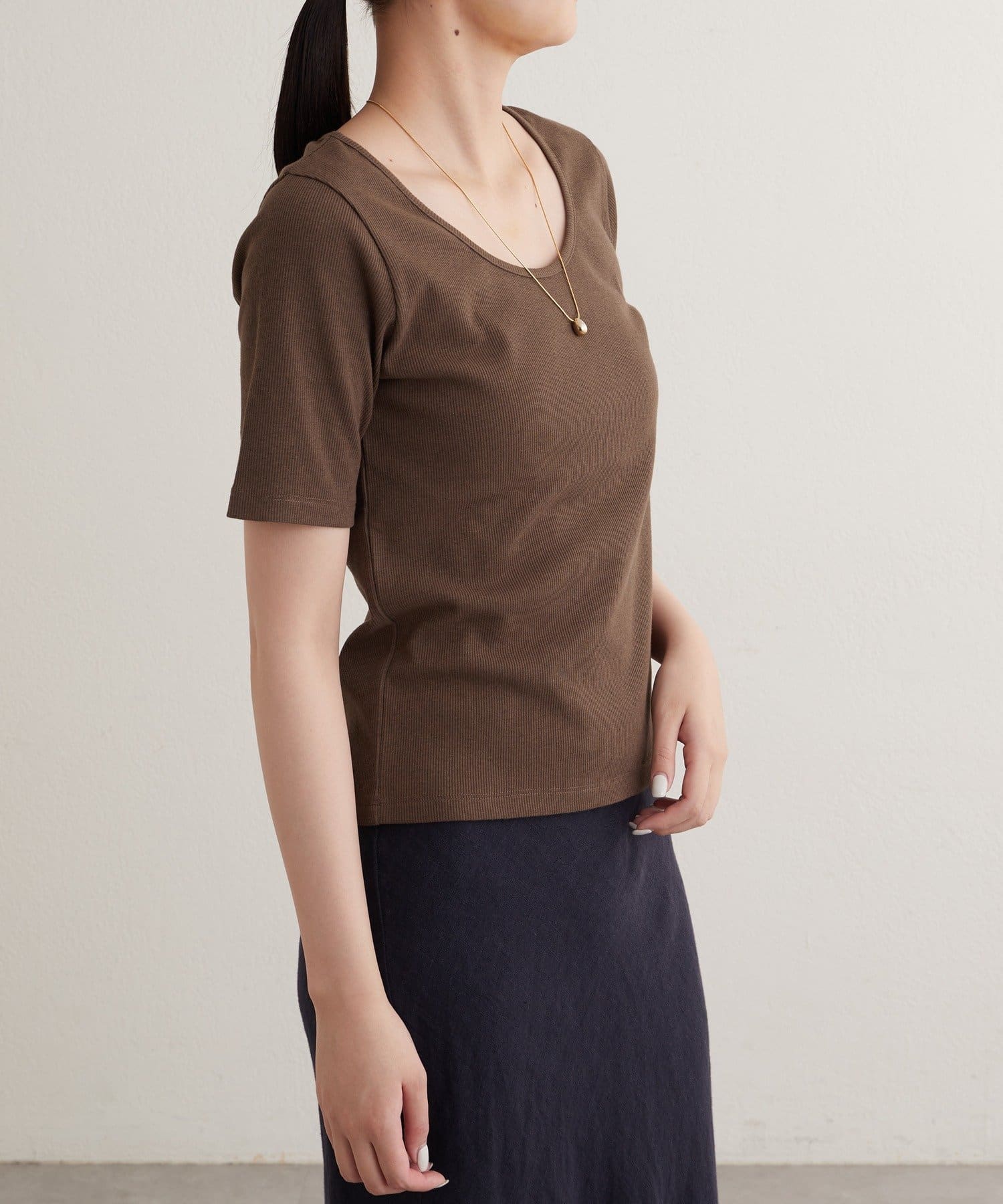 【earthy_】OネックリブTEE