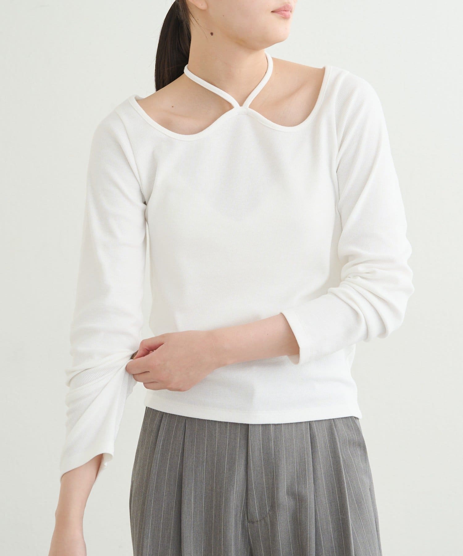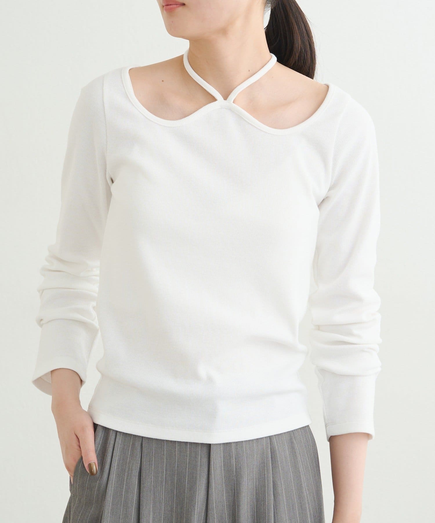 ・ホルターネックデザインが、デコルテを美しく、ヘルシーに演出。