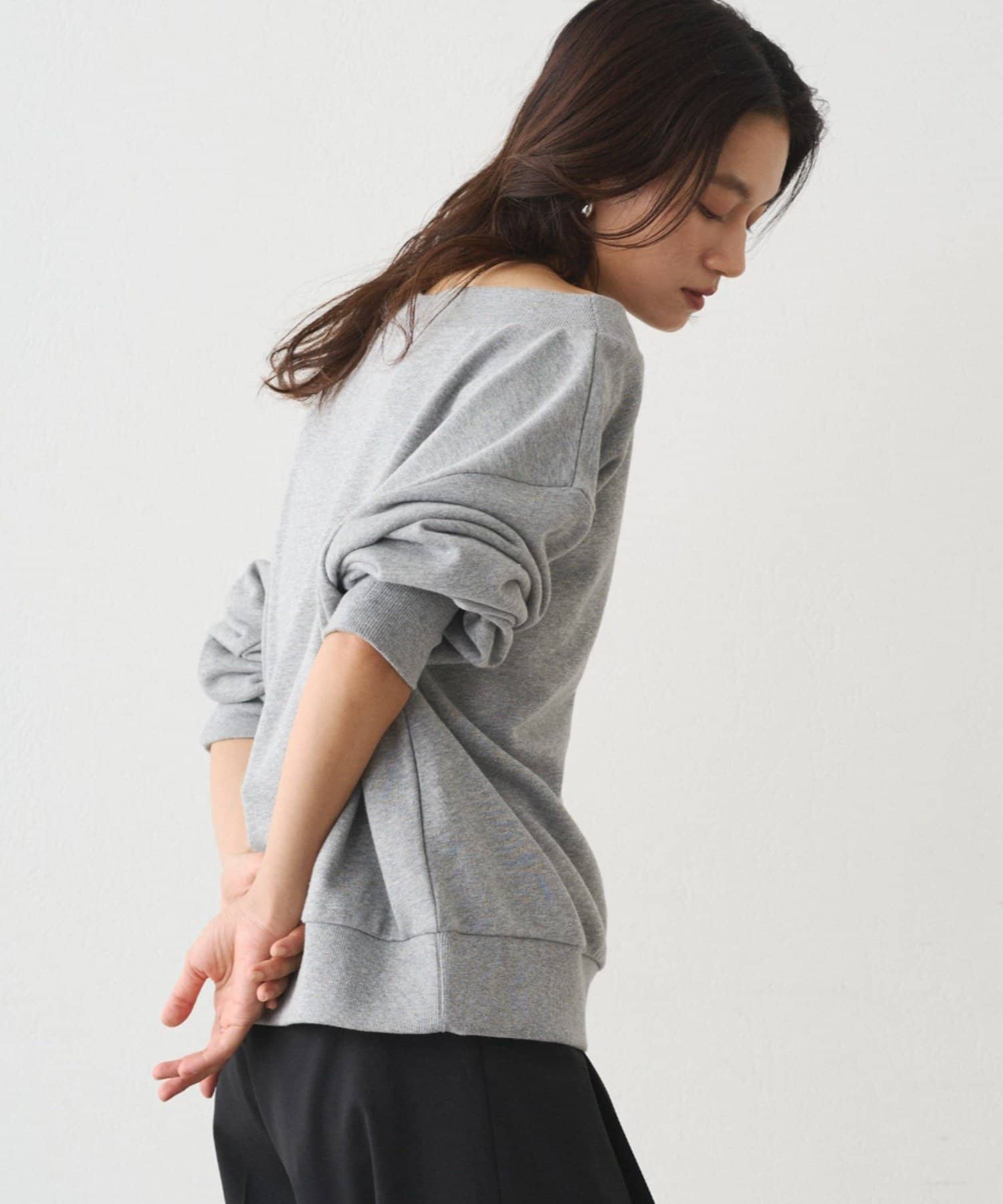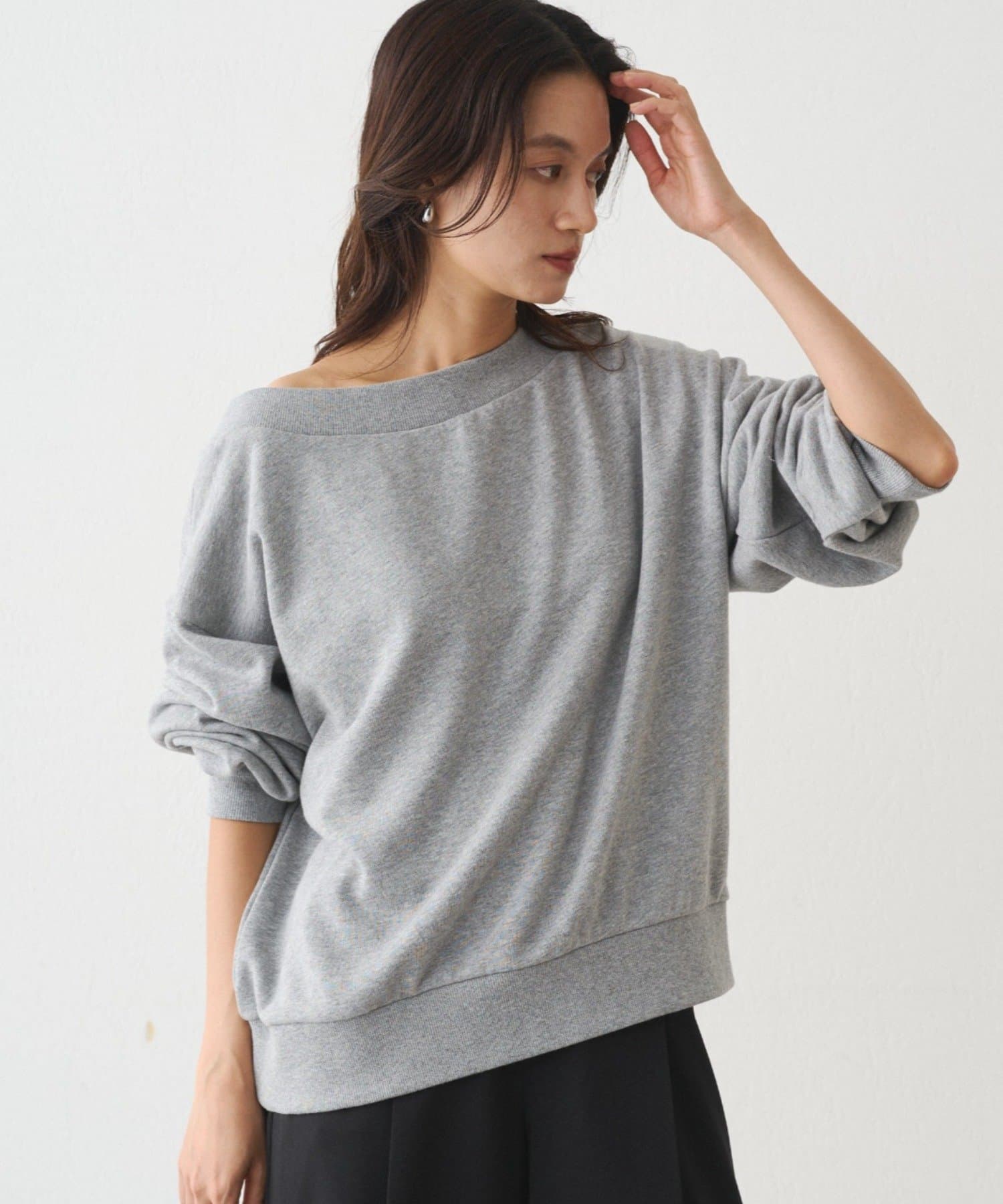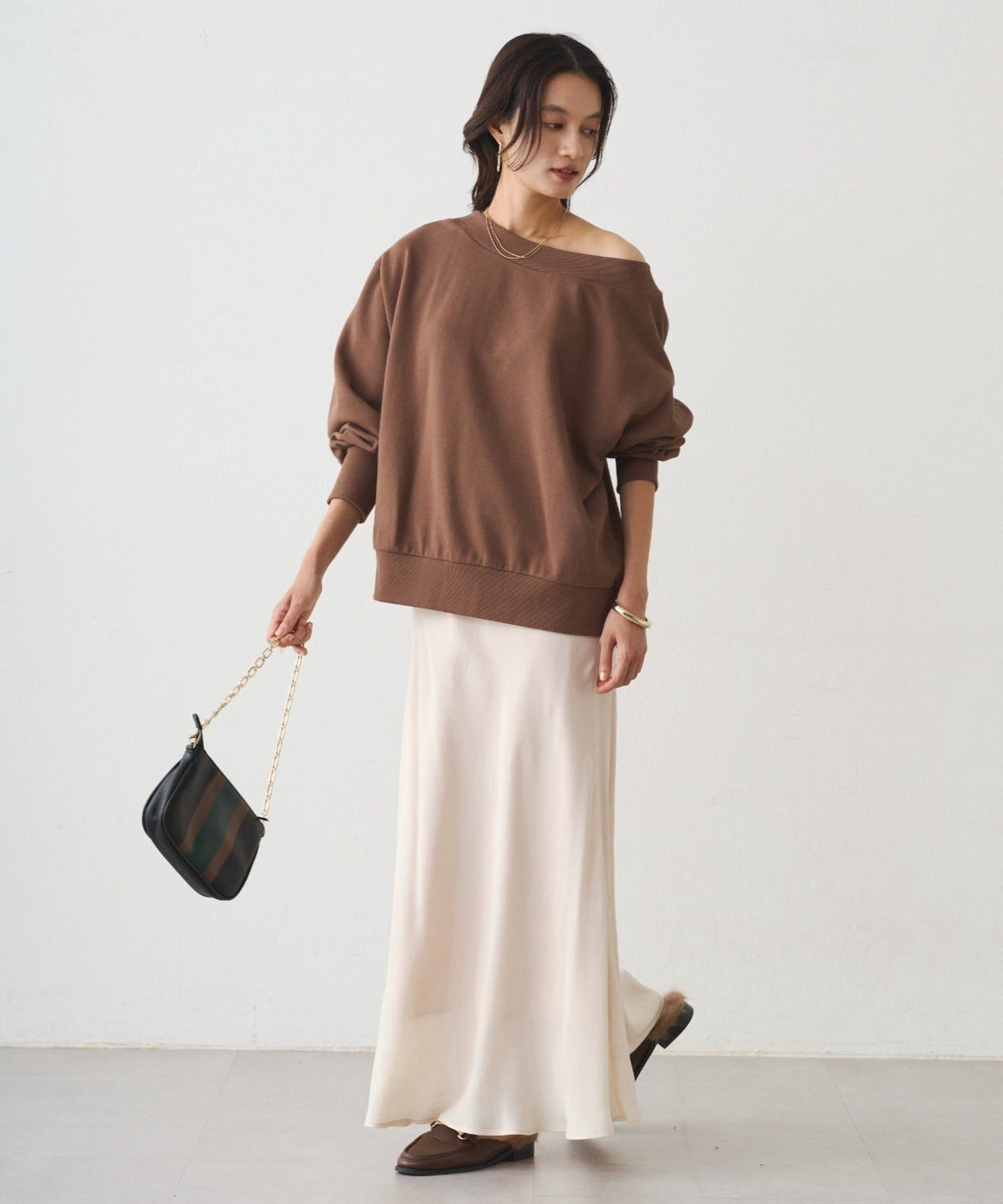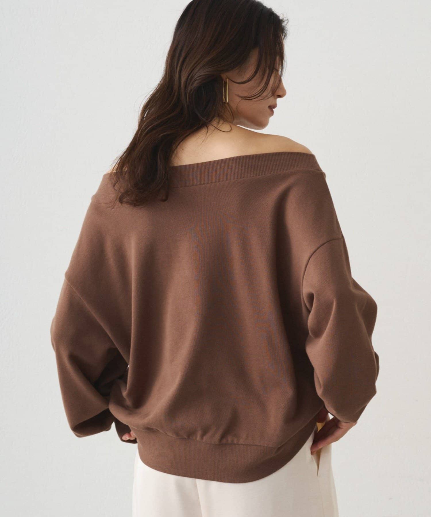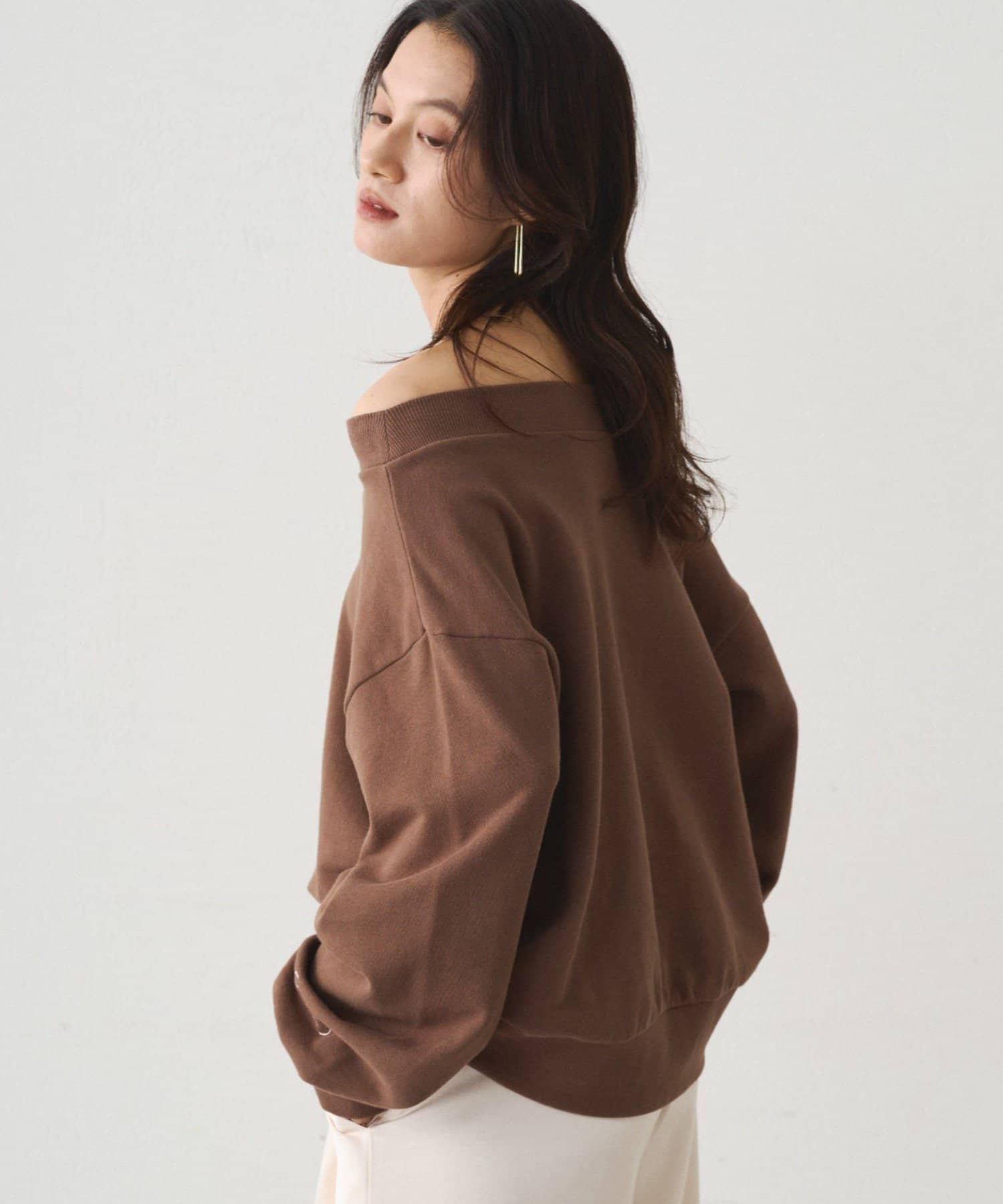 ・ラフな印象のスウェット素材を、大胆なオフショルダーに仕立てることで、抜け感のある大人の女性らしさを演出。