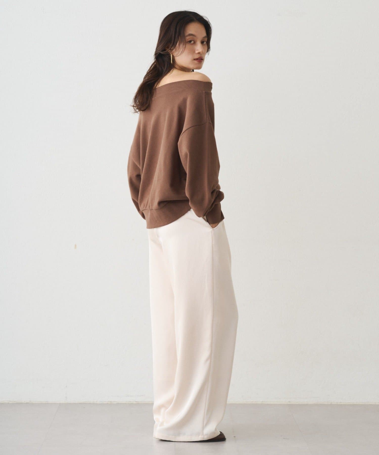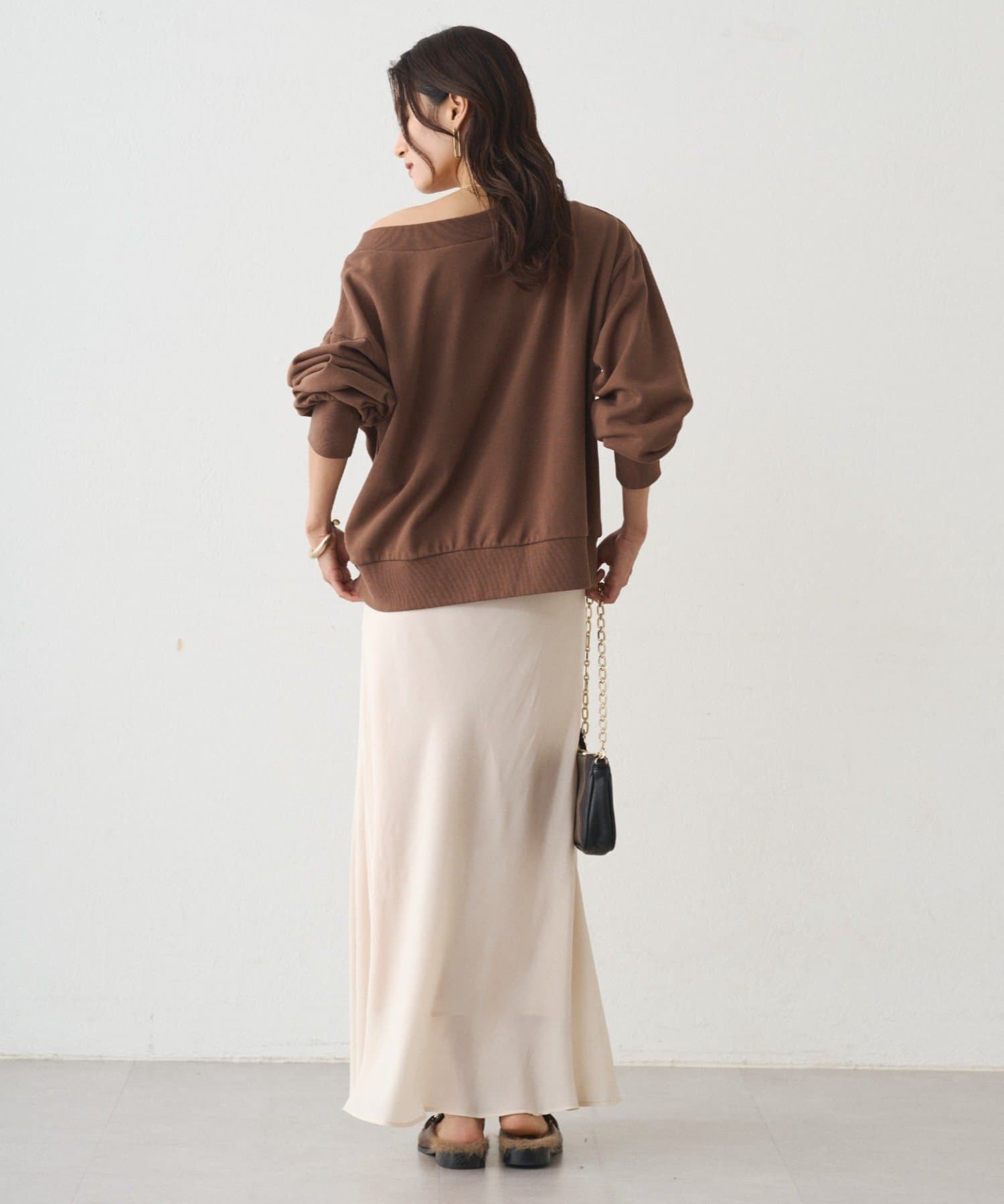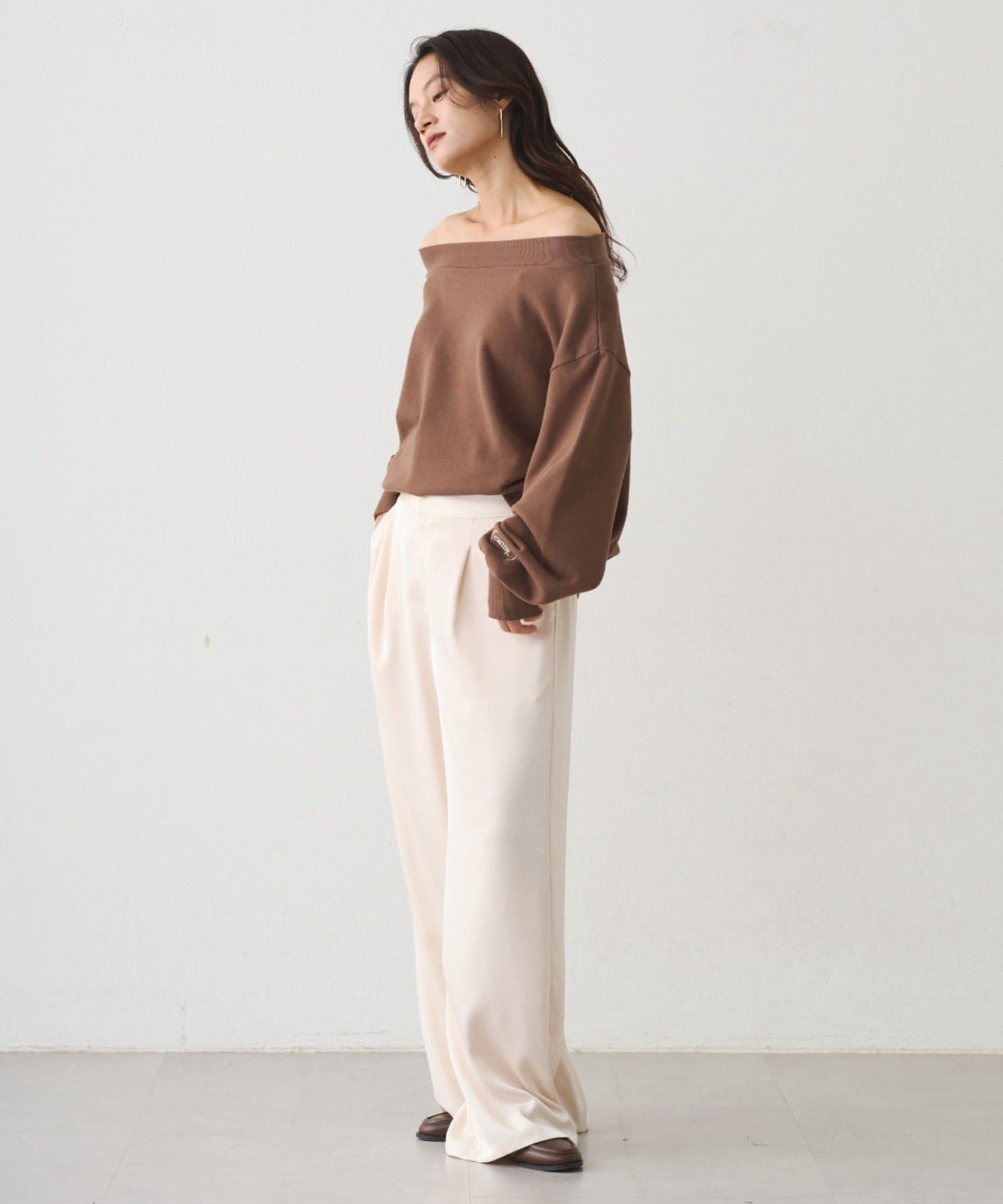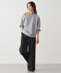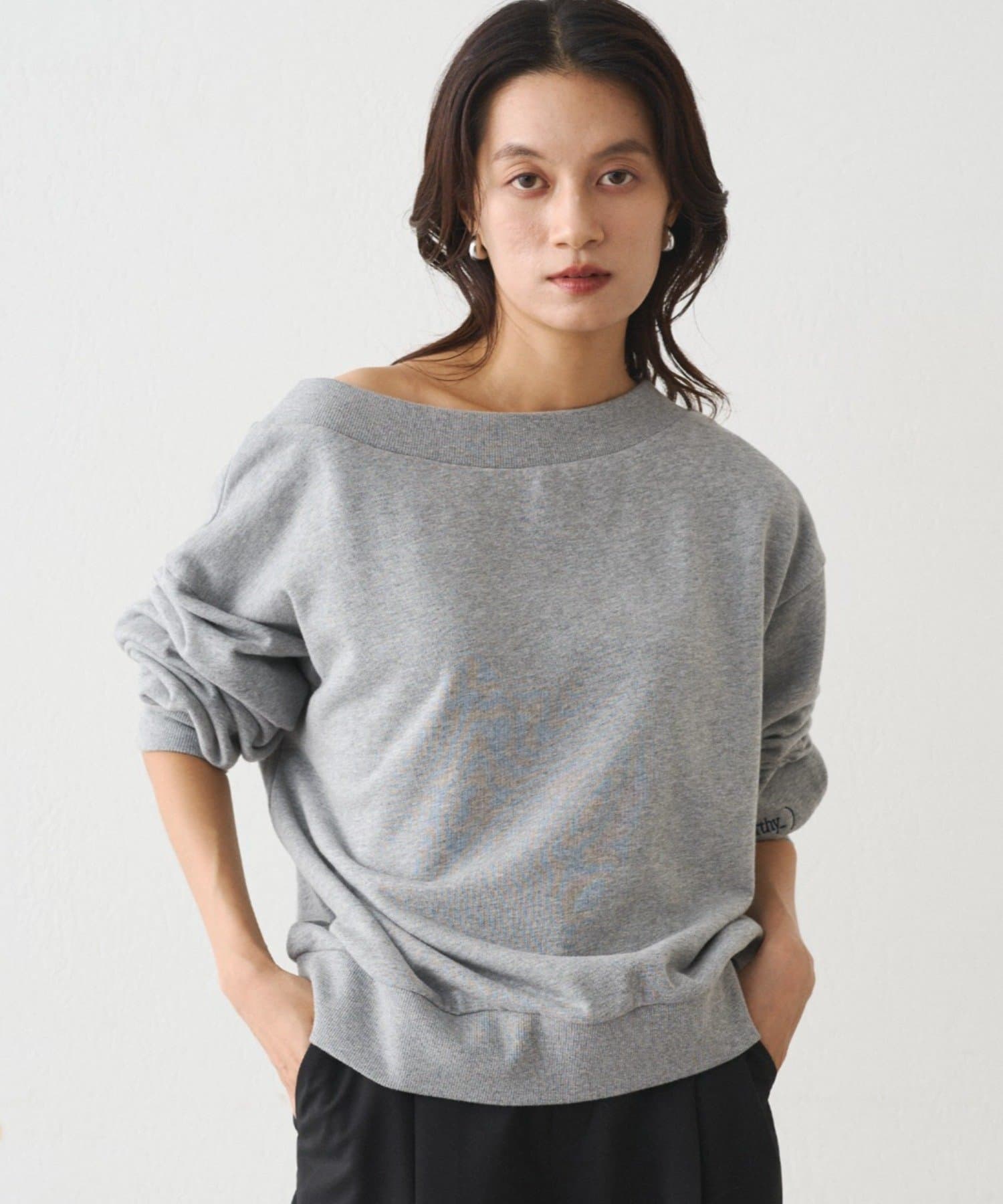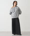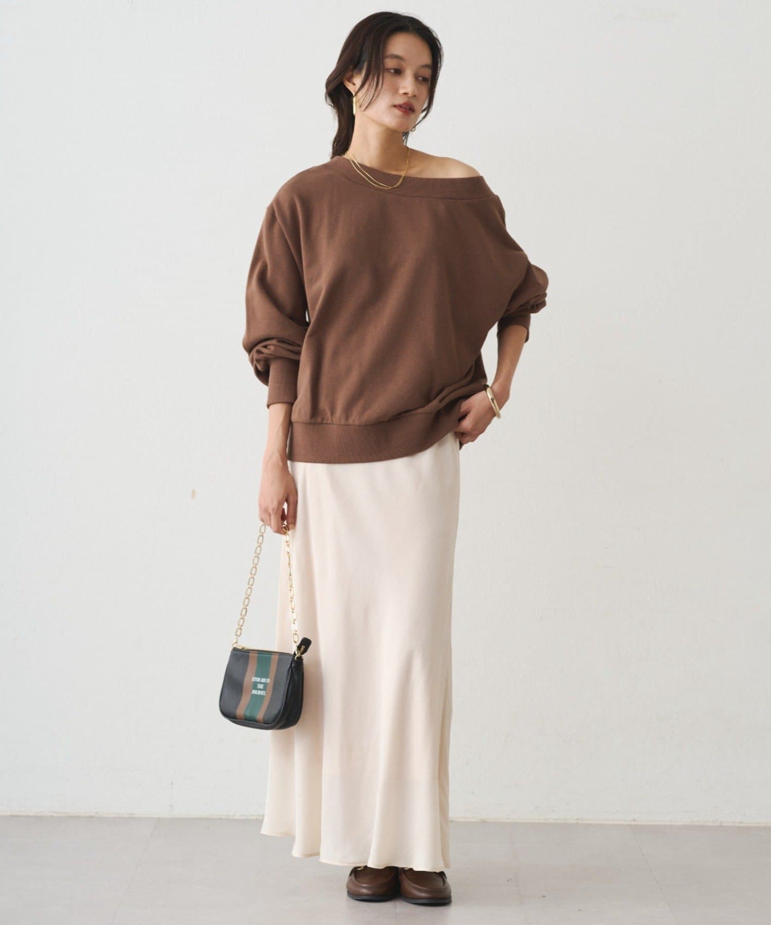 ・ラフな印象のスウェット素材を、大胆なオフショルダーに仕立てることで、抜け感のある大人の女性らしさを演出。