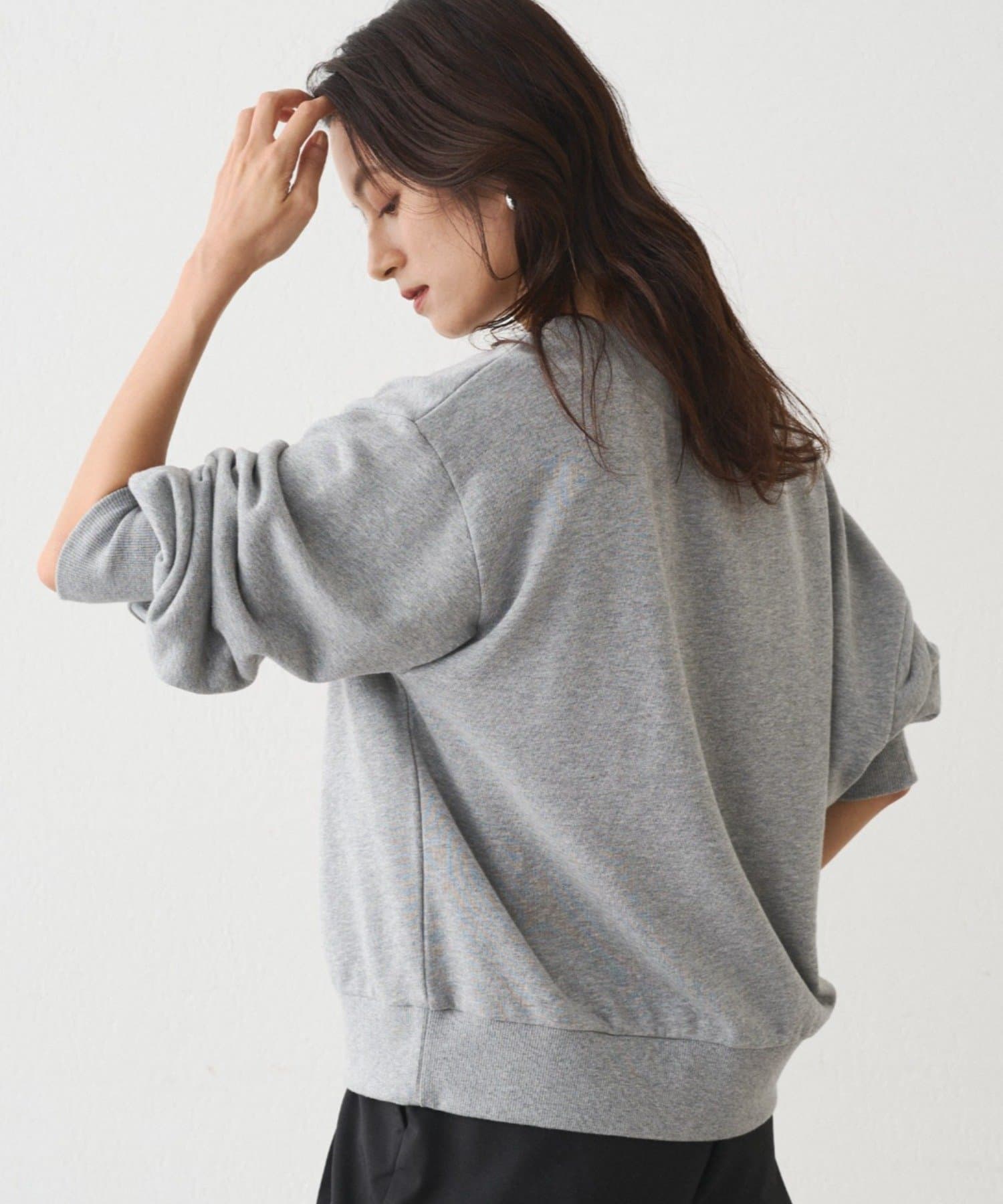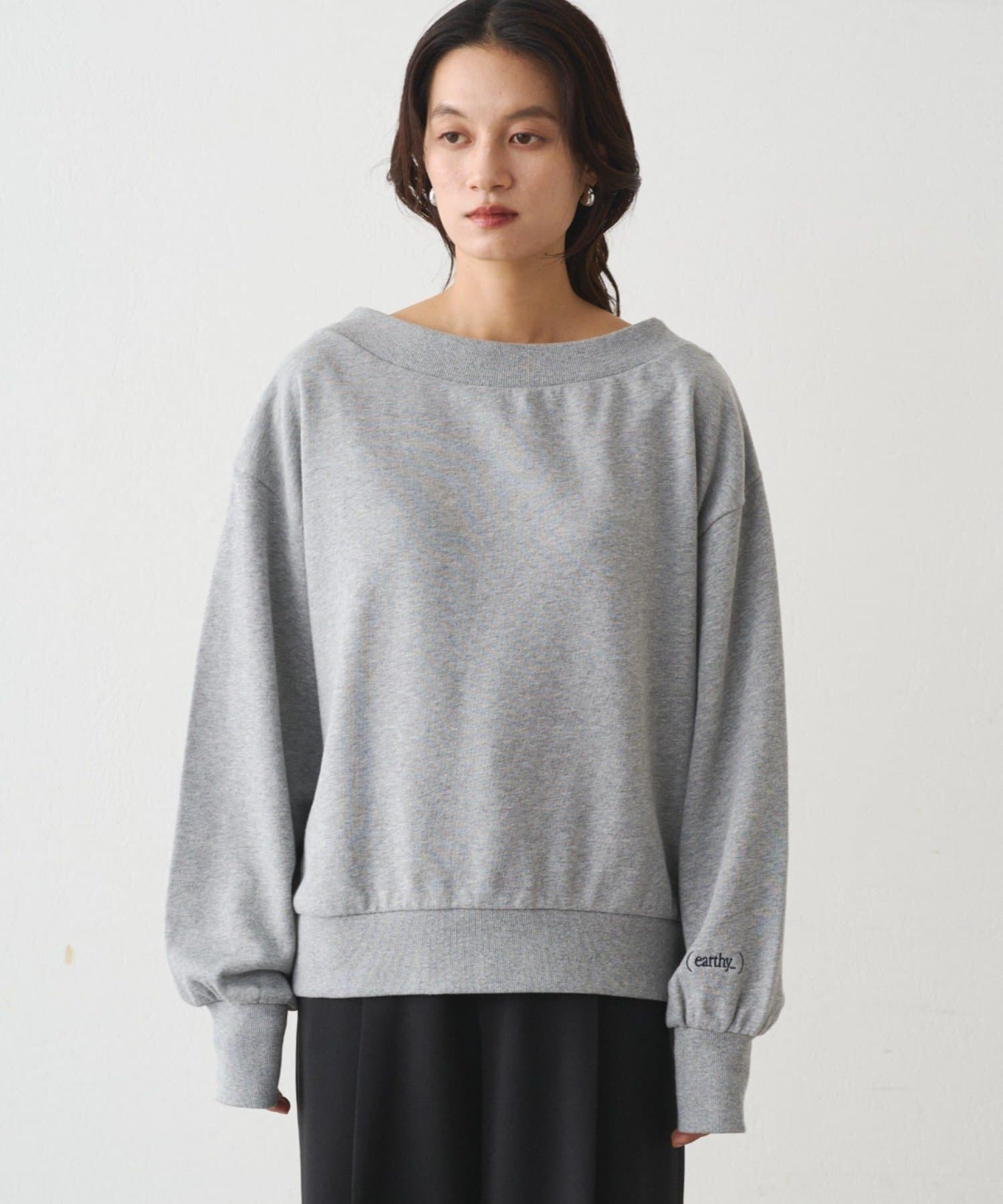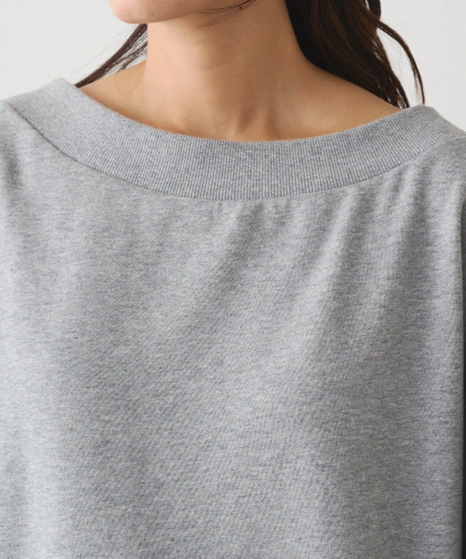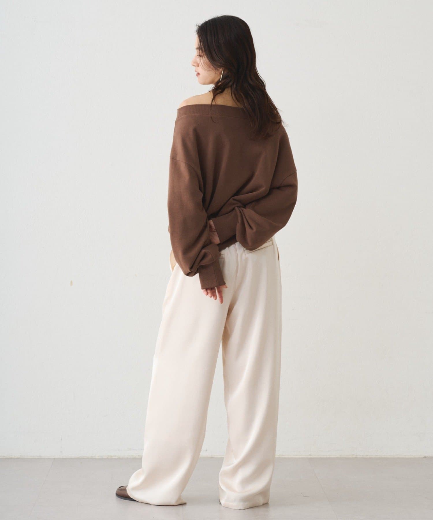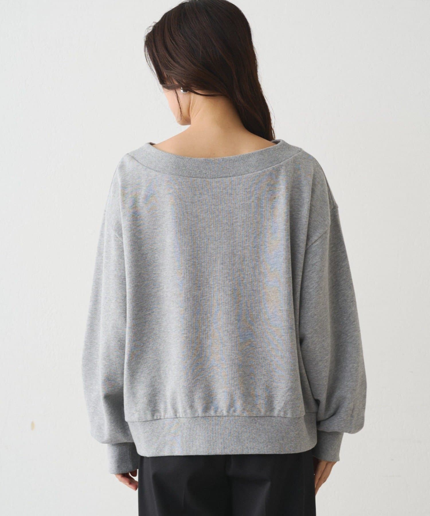 ・ラフな印象のスウェット素材を、大胆なオフショルダーに仕立てることで、抜け感のある大人の女性らしさを演出。