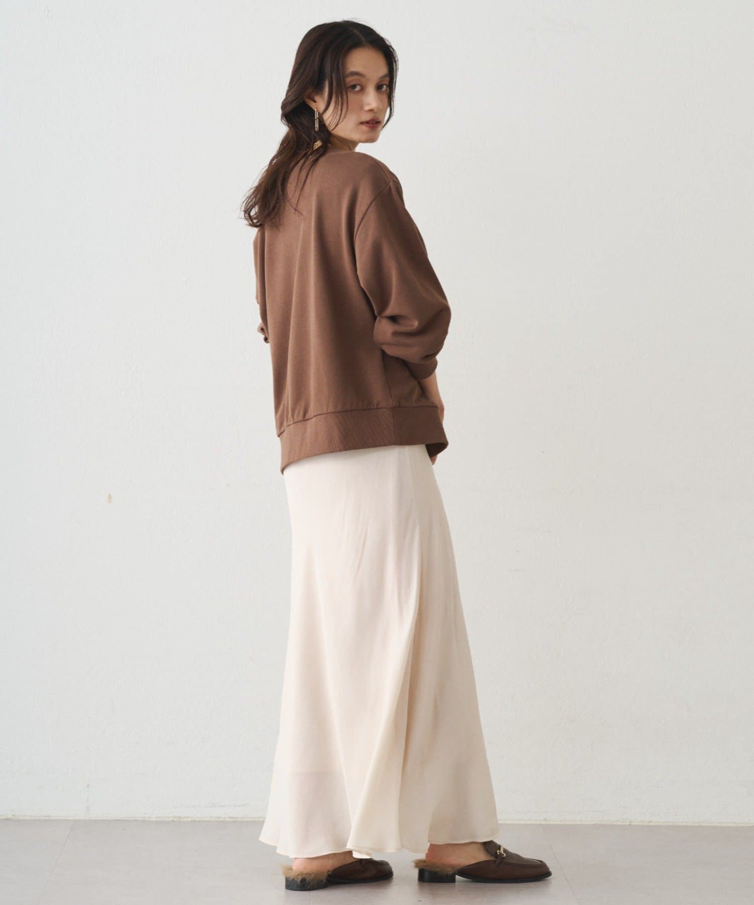 ・同シリーズのスウェットパンツとセットアップ合わせはもちろん、カジュアルなデニムやスカートはもちろん、きれいめなパンツやワンピースのレイヤード合わせなども楽しめます。