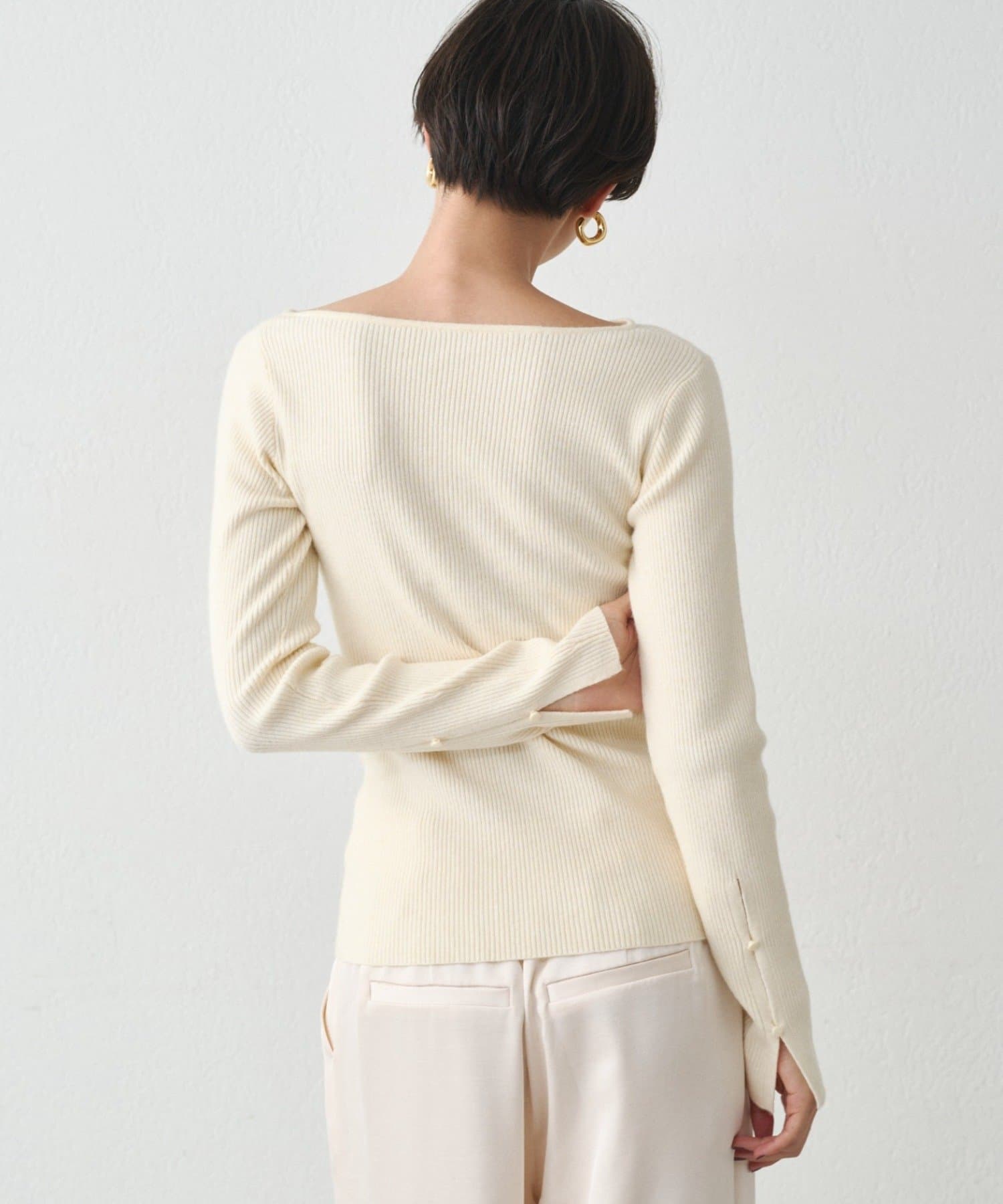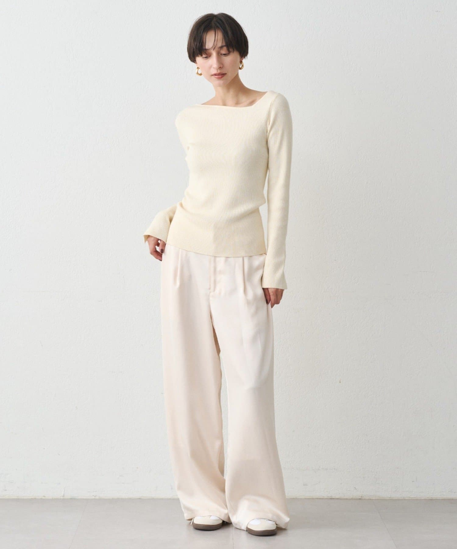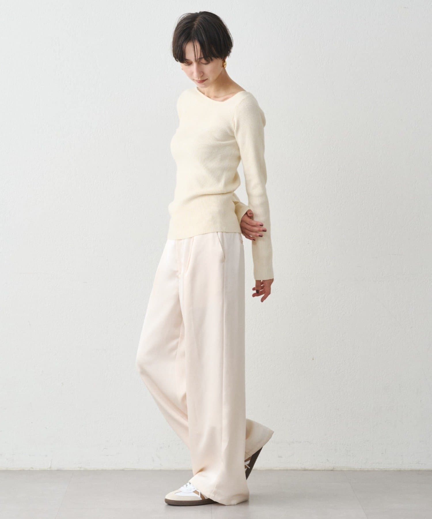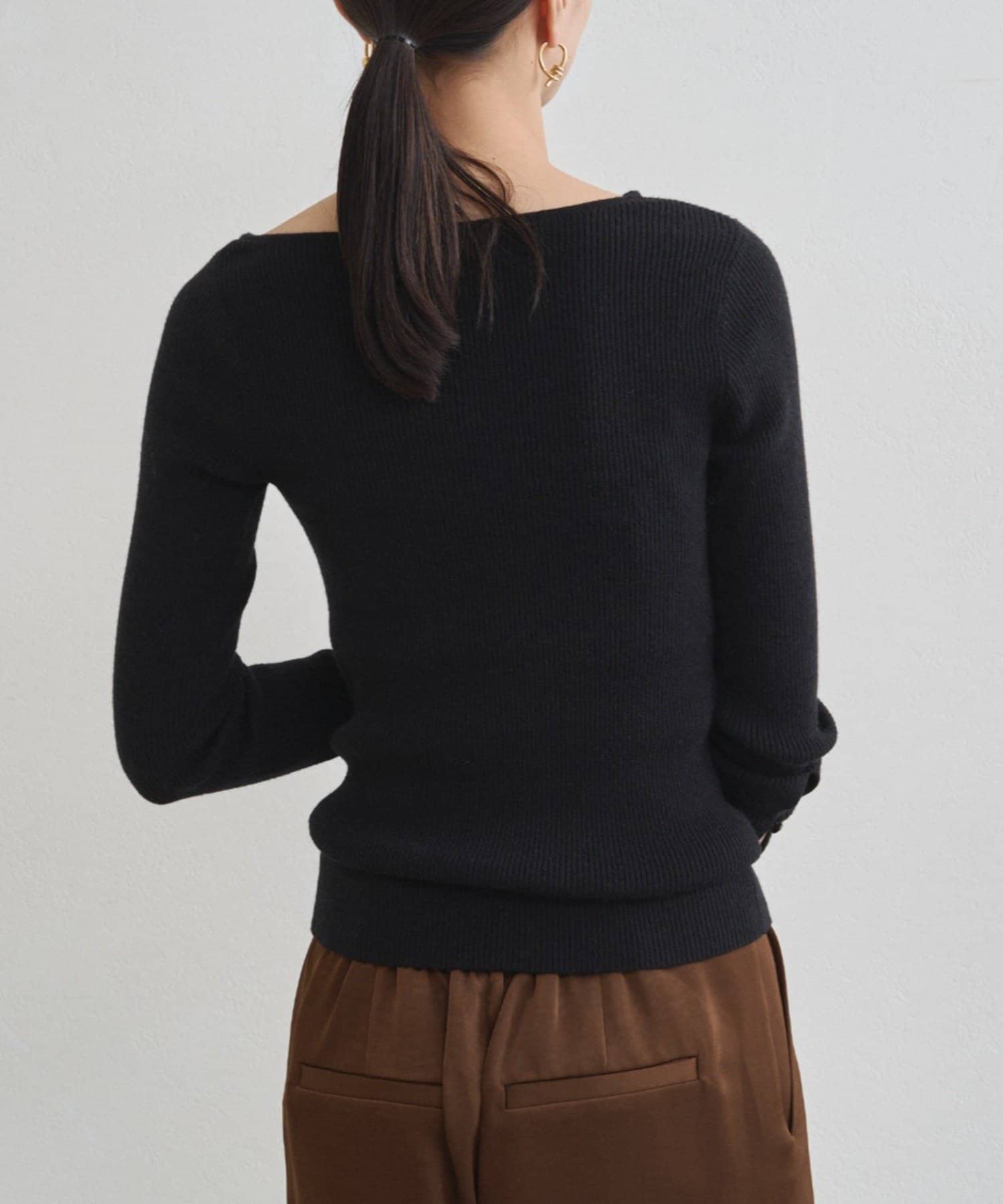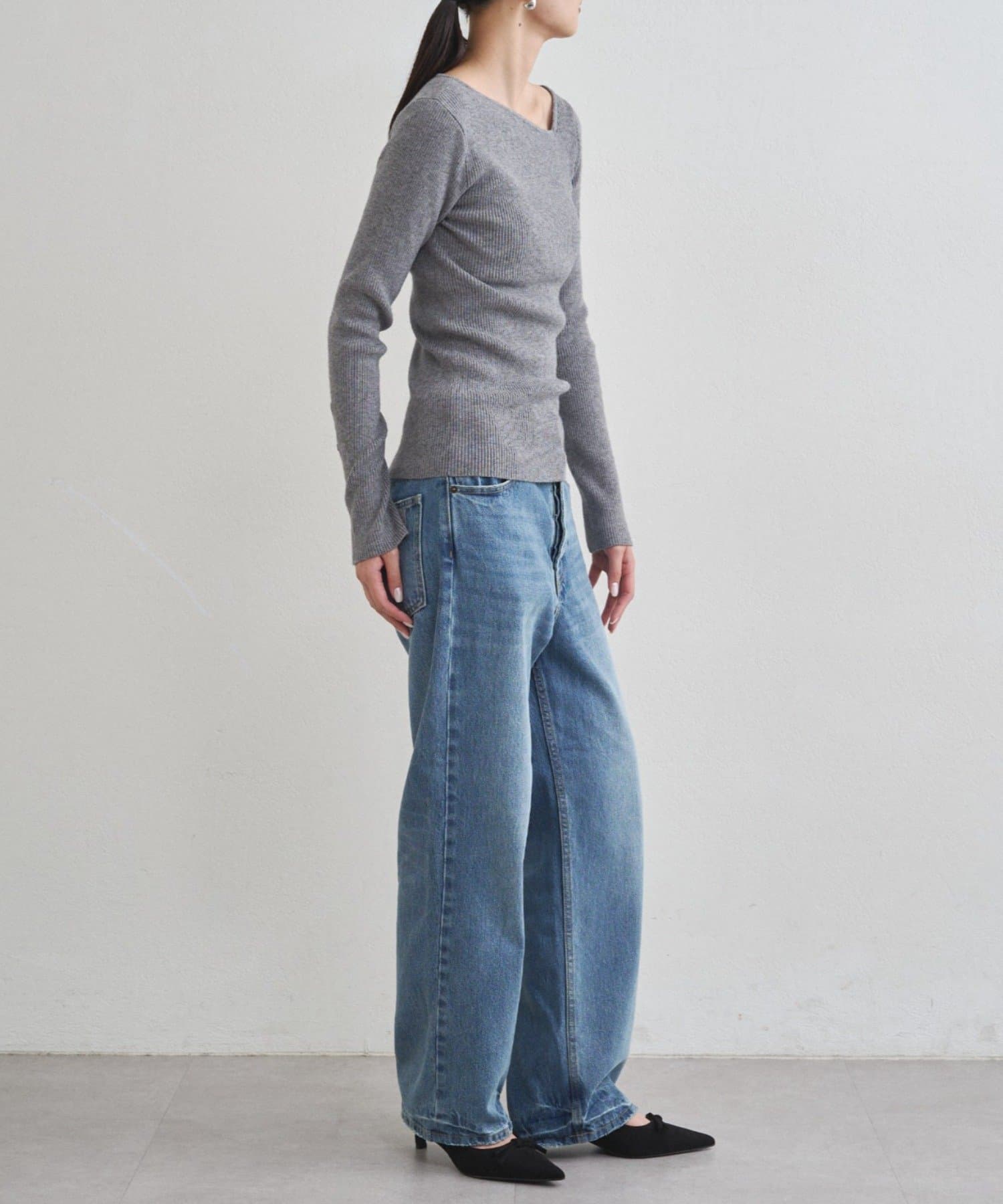 目を惹く首元アシンメトリーデザイン、リブアシメニット