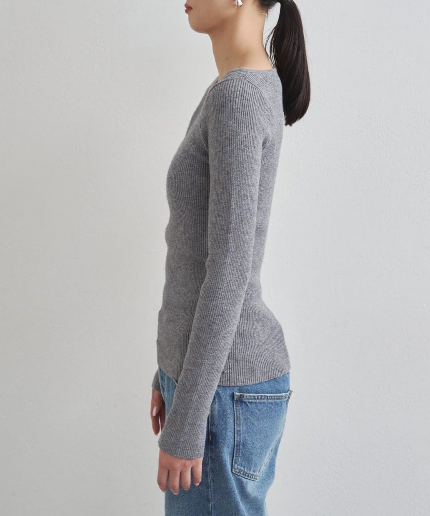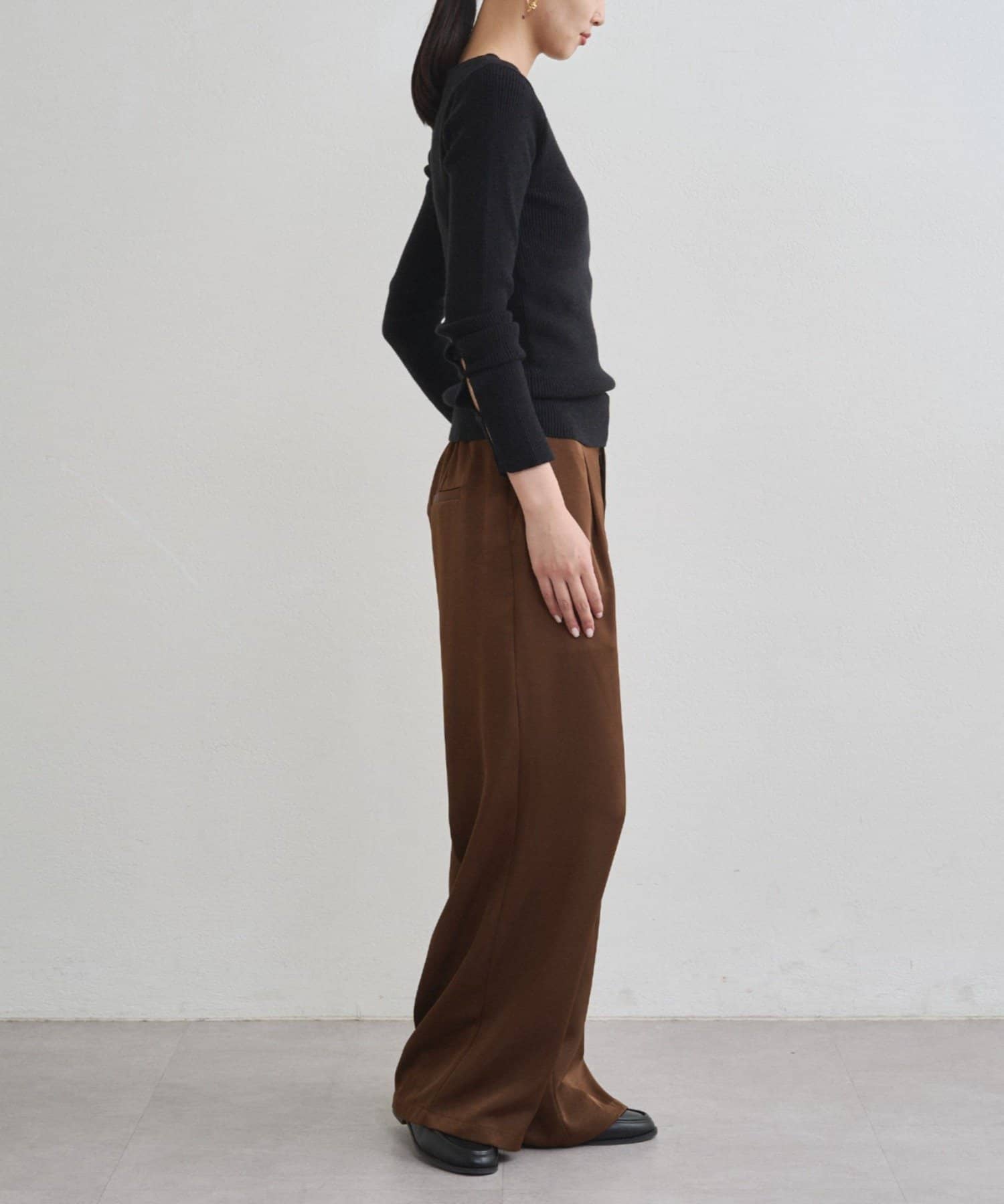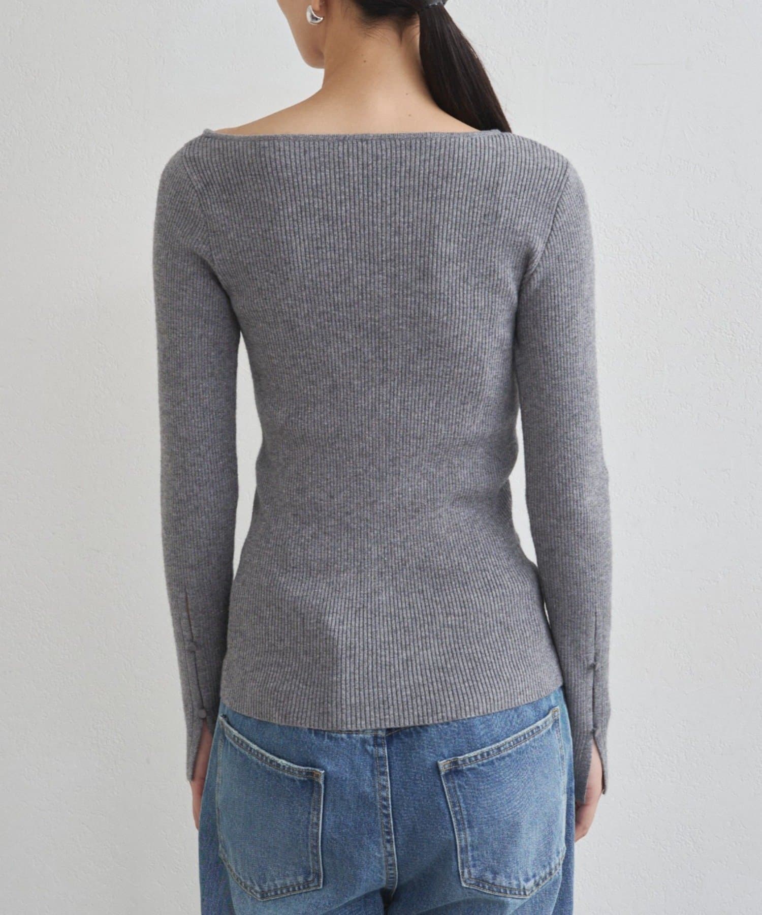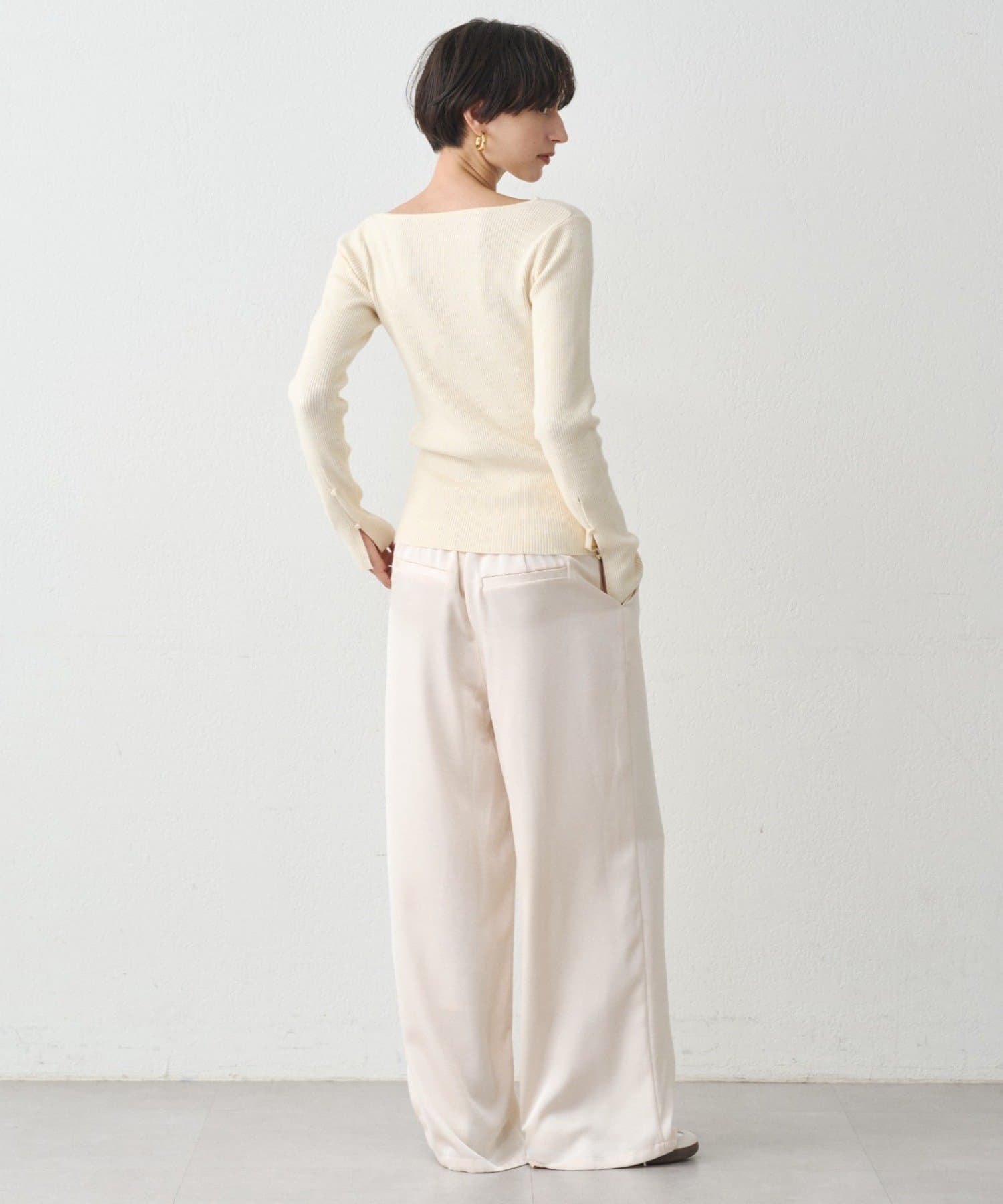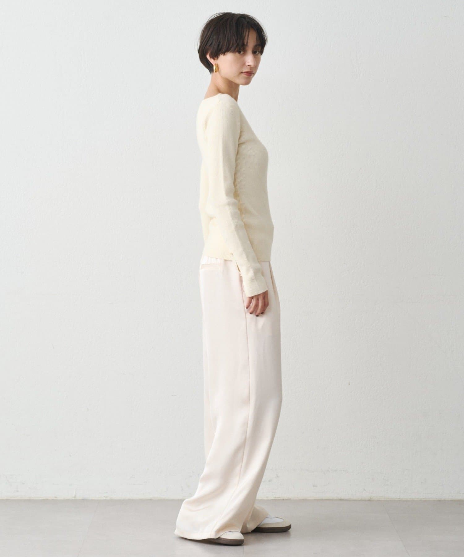 目を惹く首元アシンメトリーデザイン、リブアシメニット
