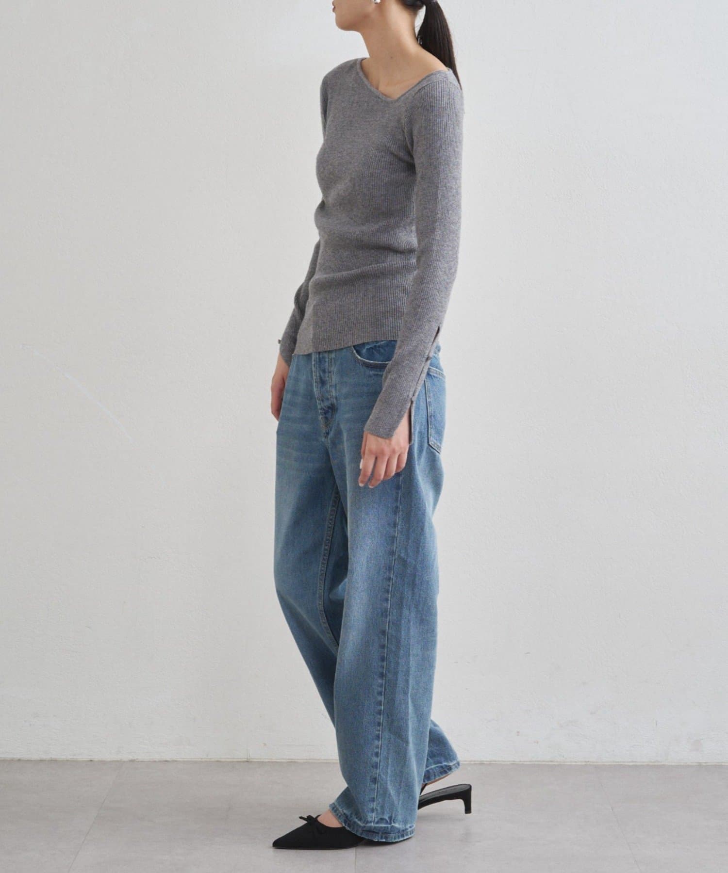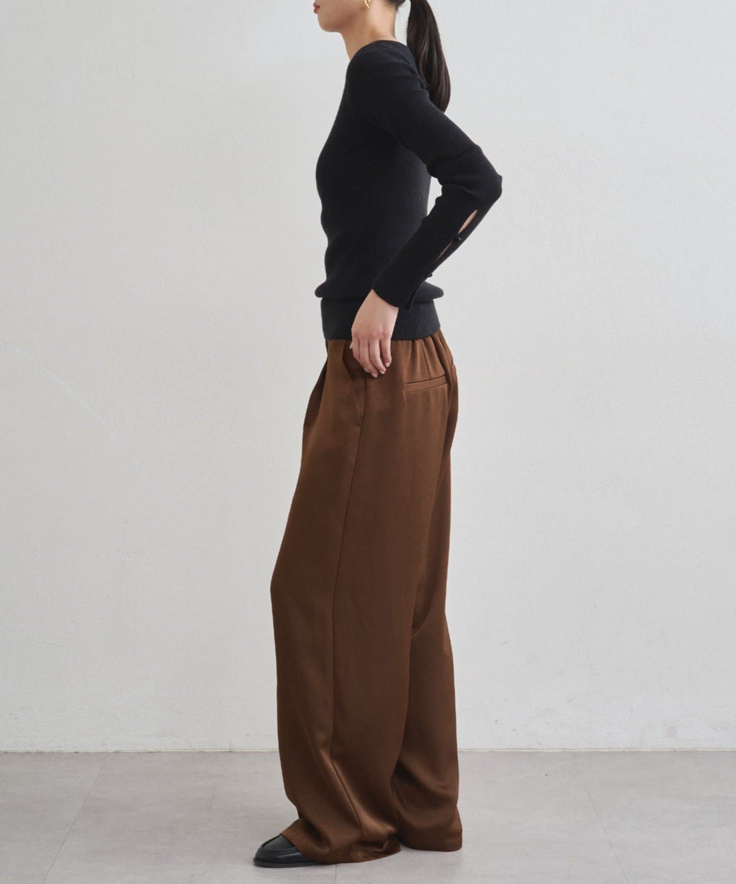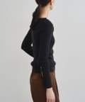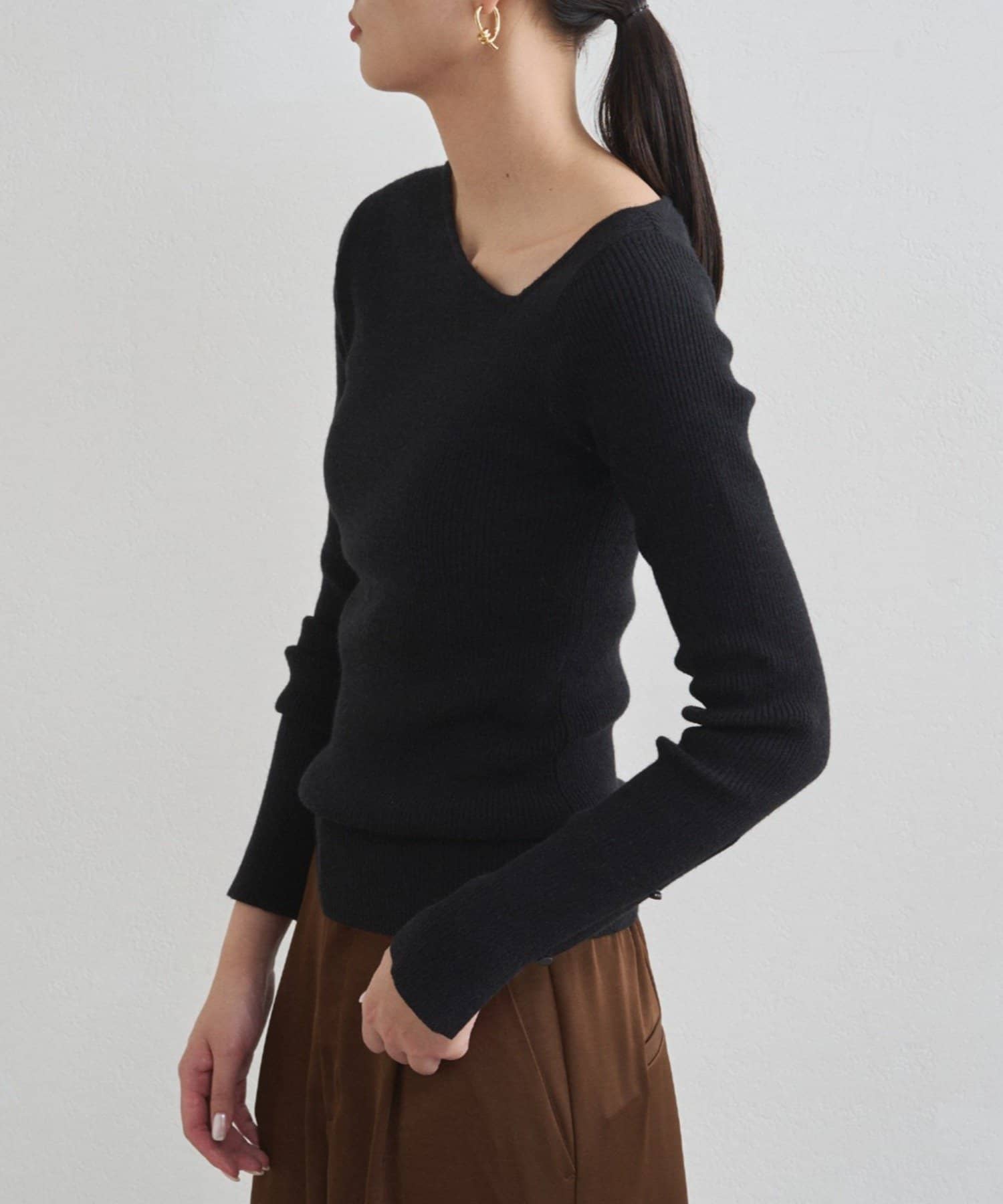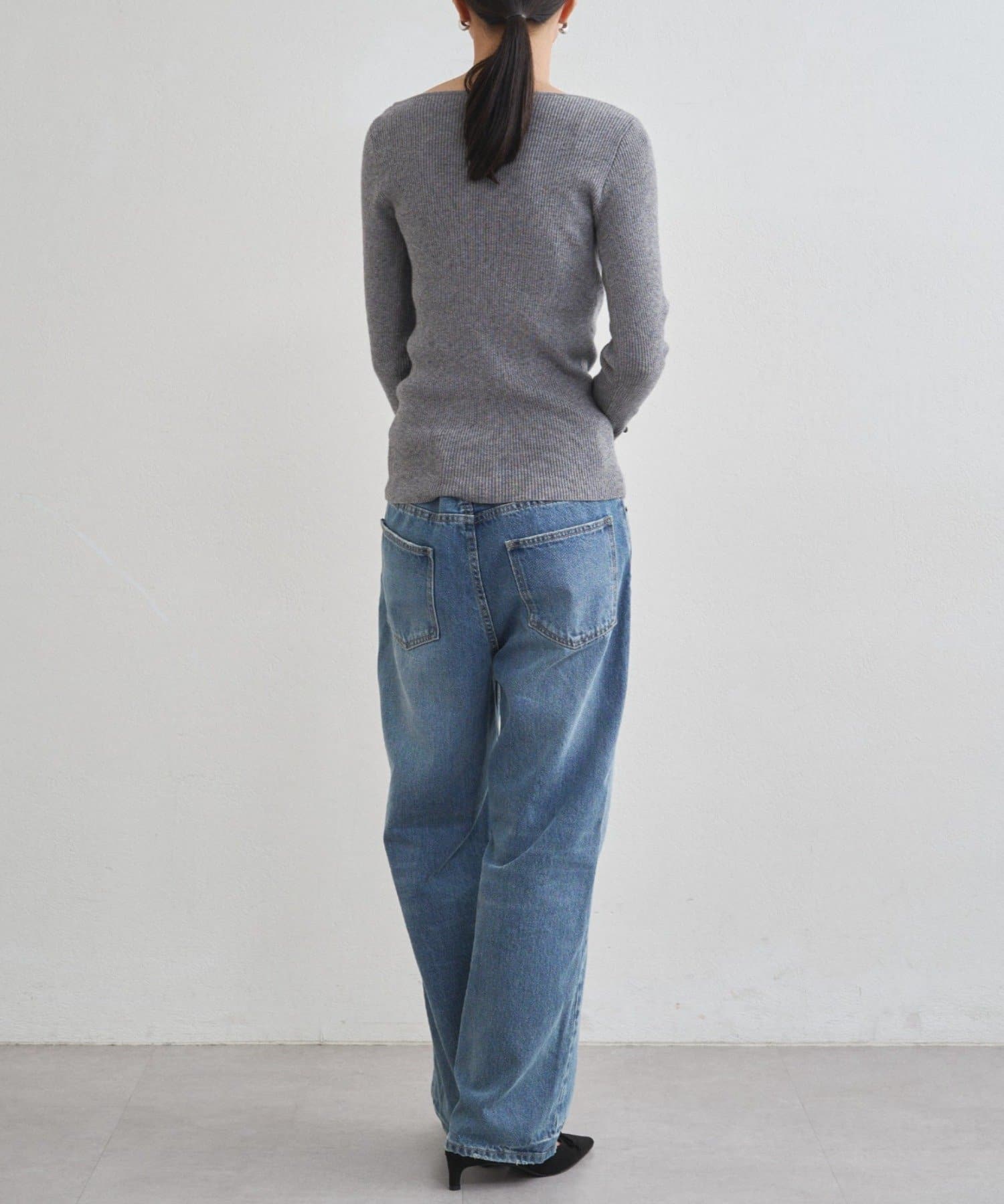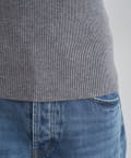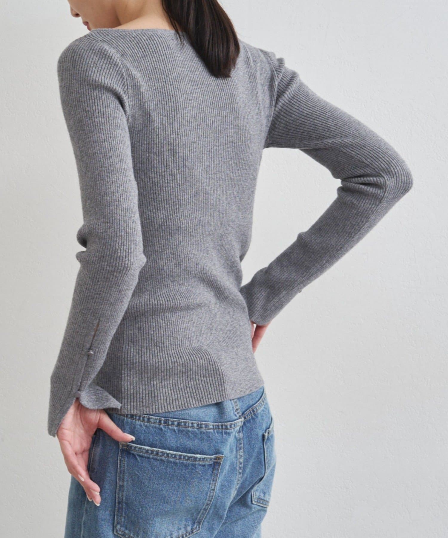 目を惹く首元アシンメトリーデザイン、リブアシメニット