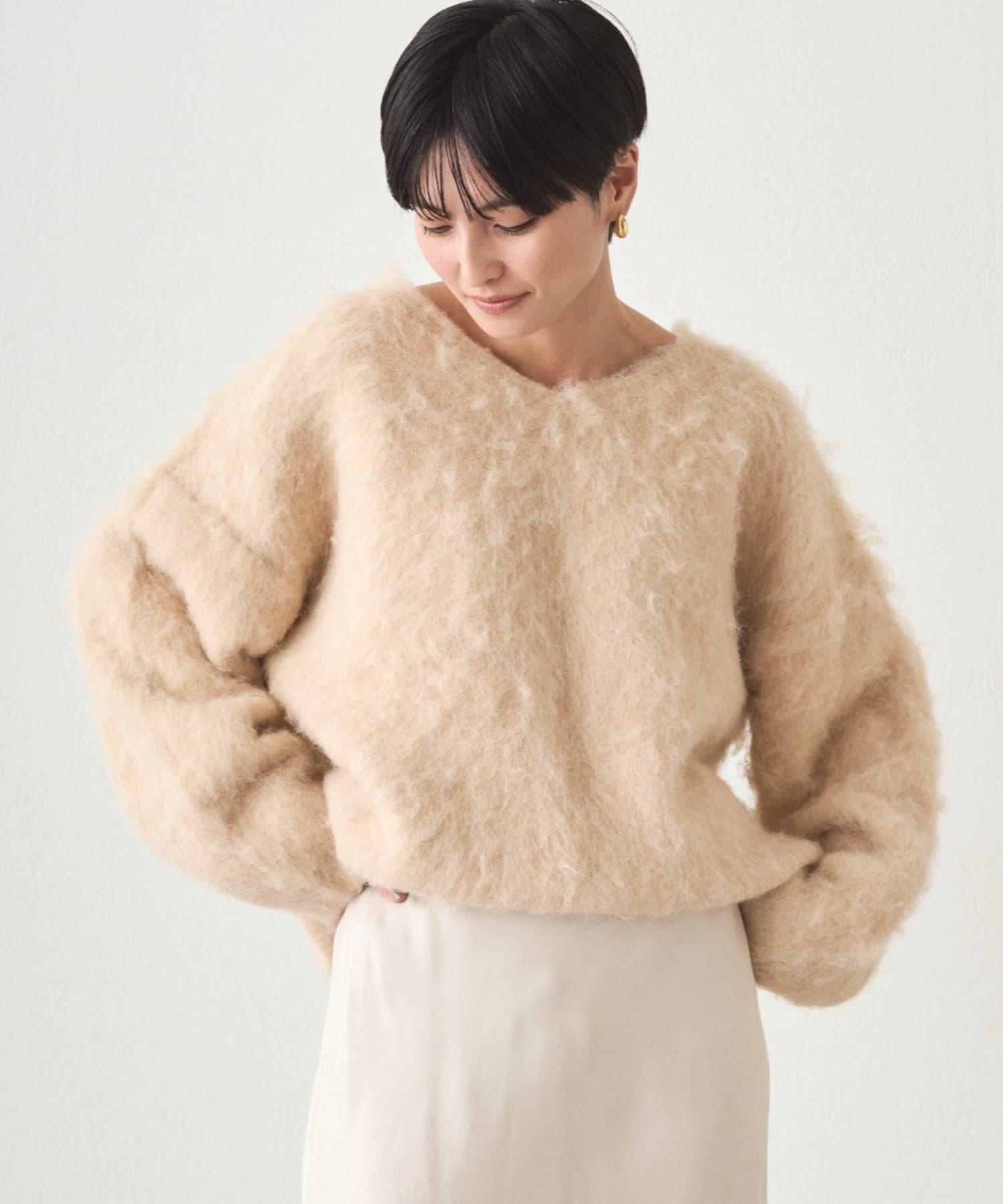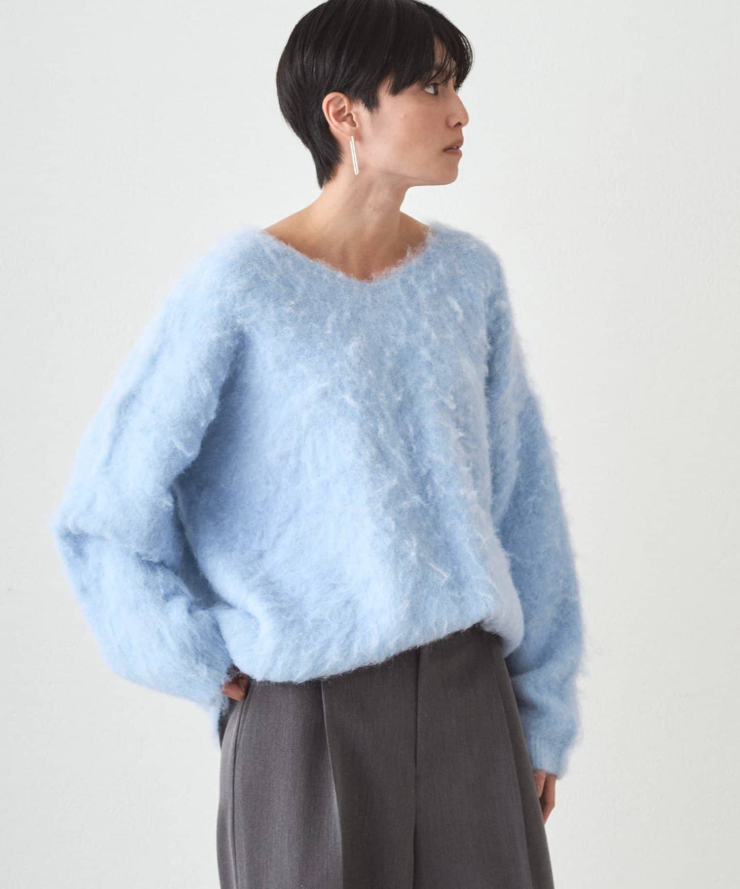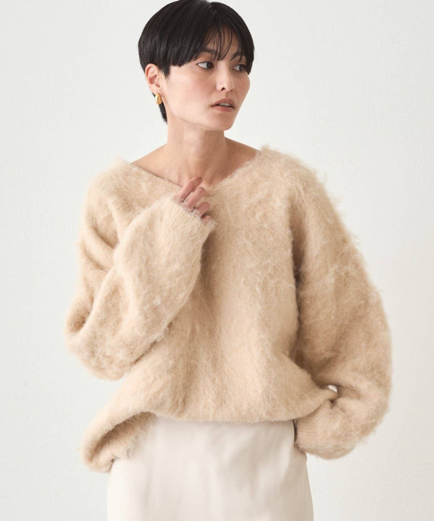ふわふわの着心地に包まれる、Vネックオーバーニット