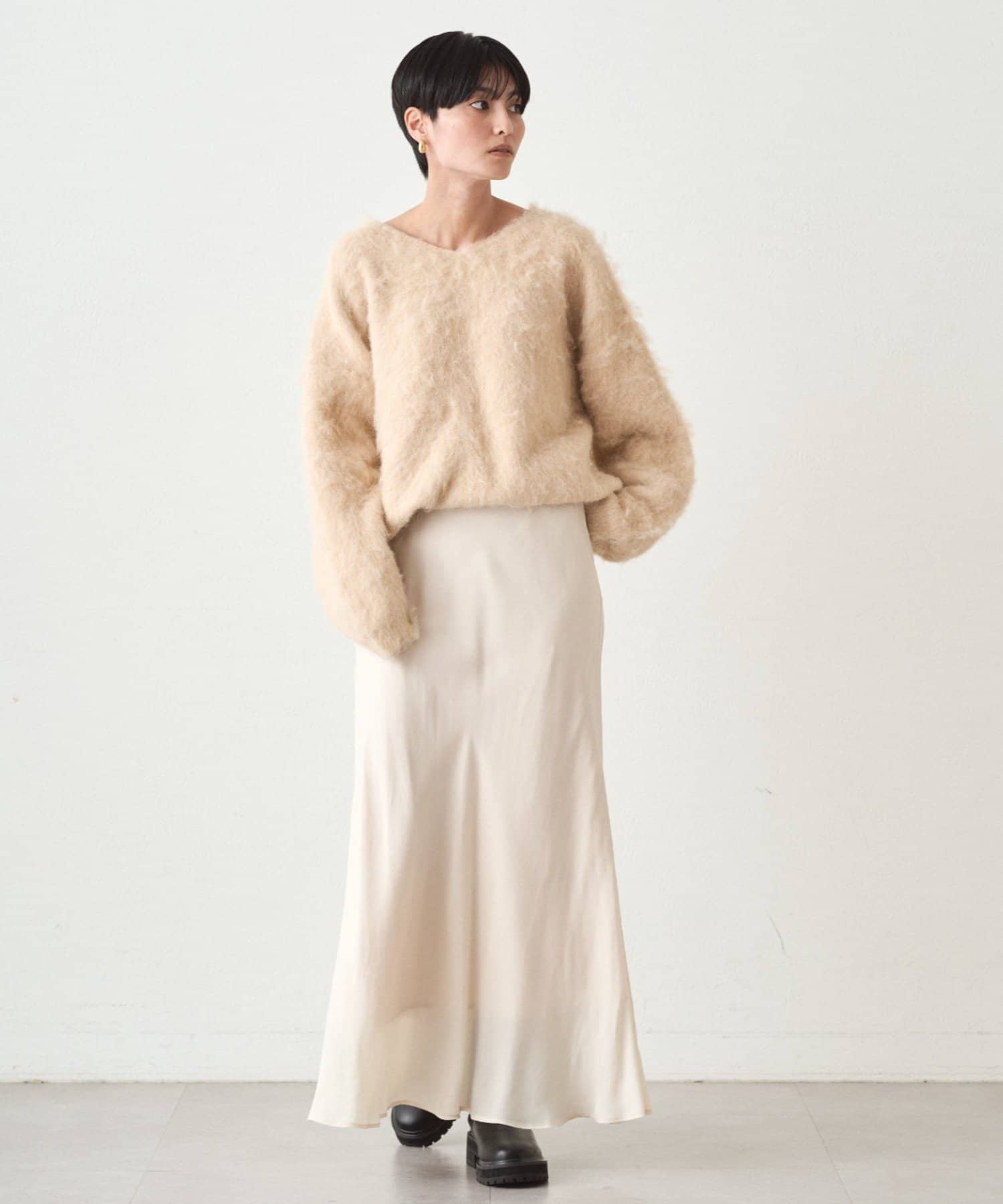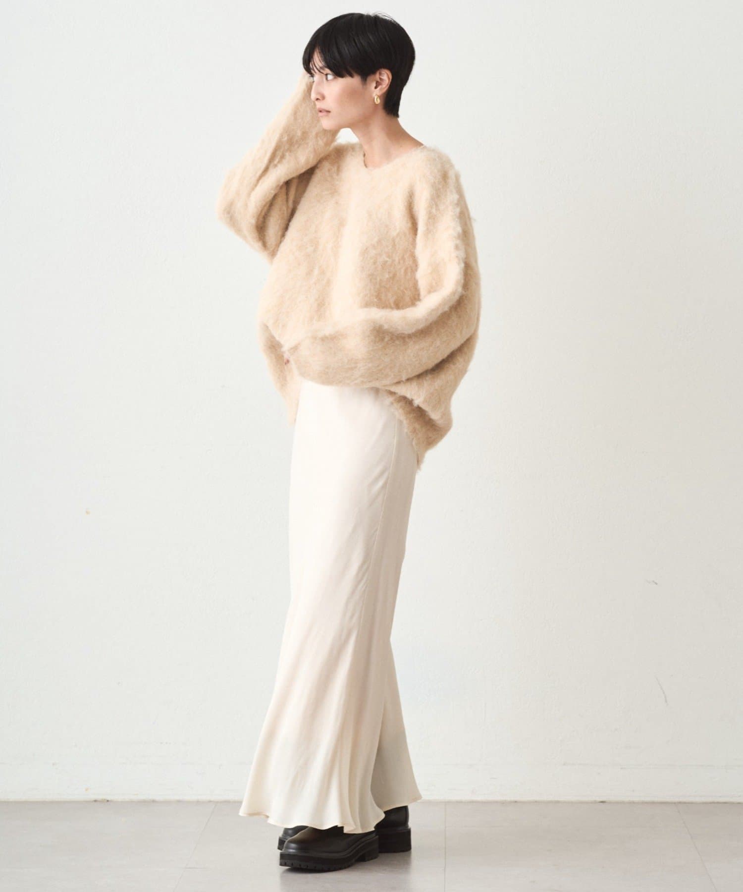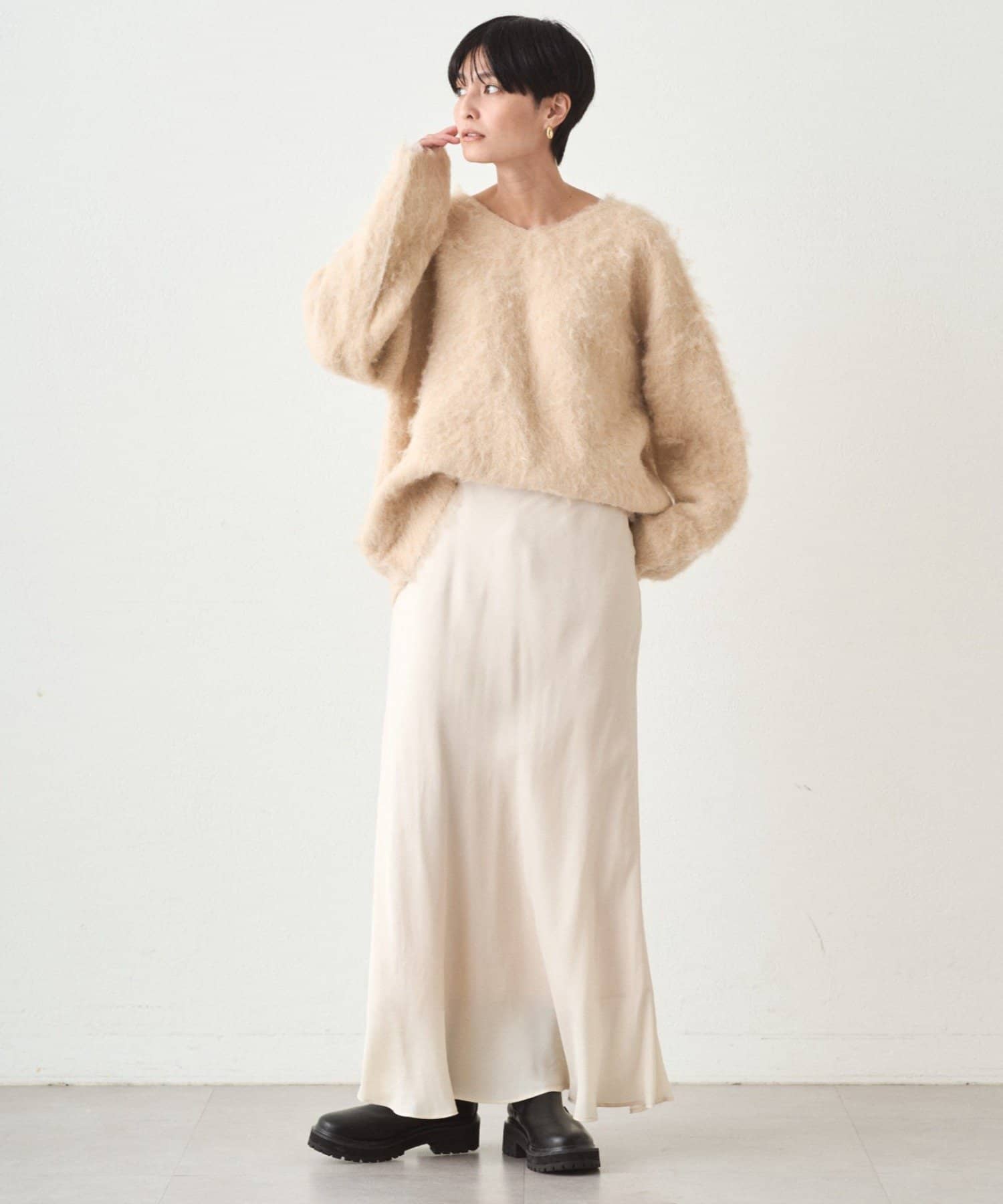 ふわふわの着心地に包まれる、Vネックオーバーニット