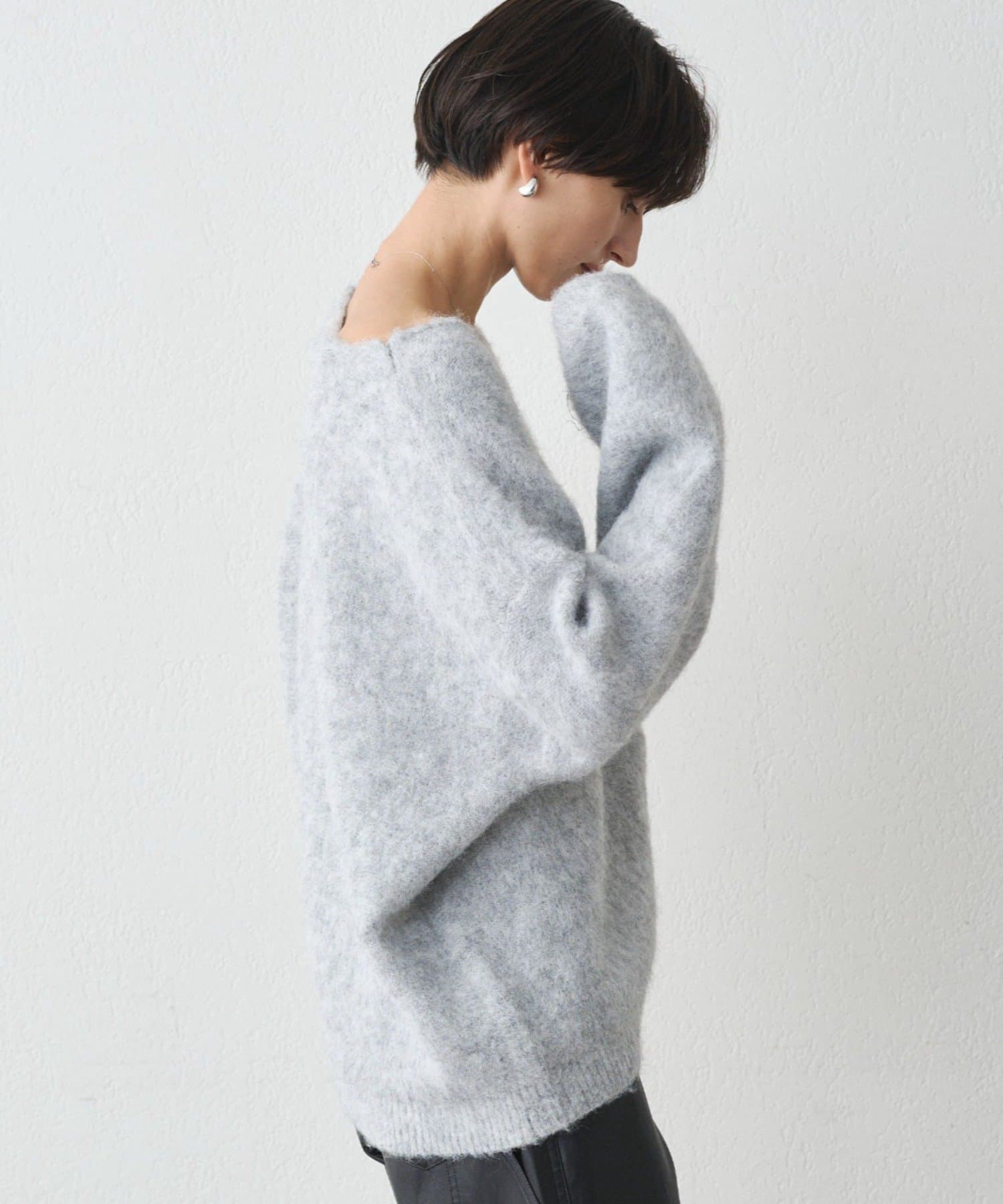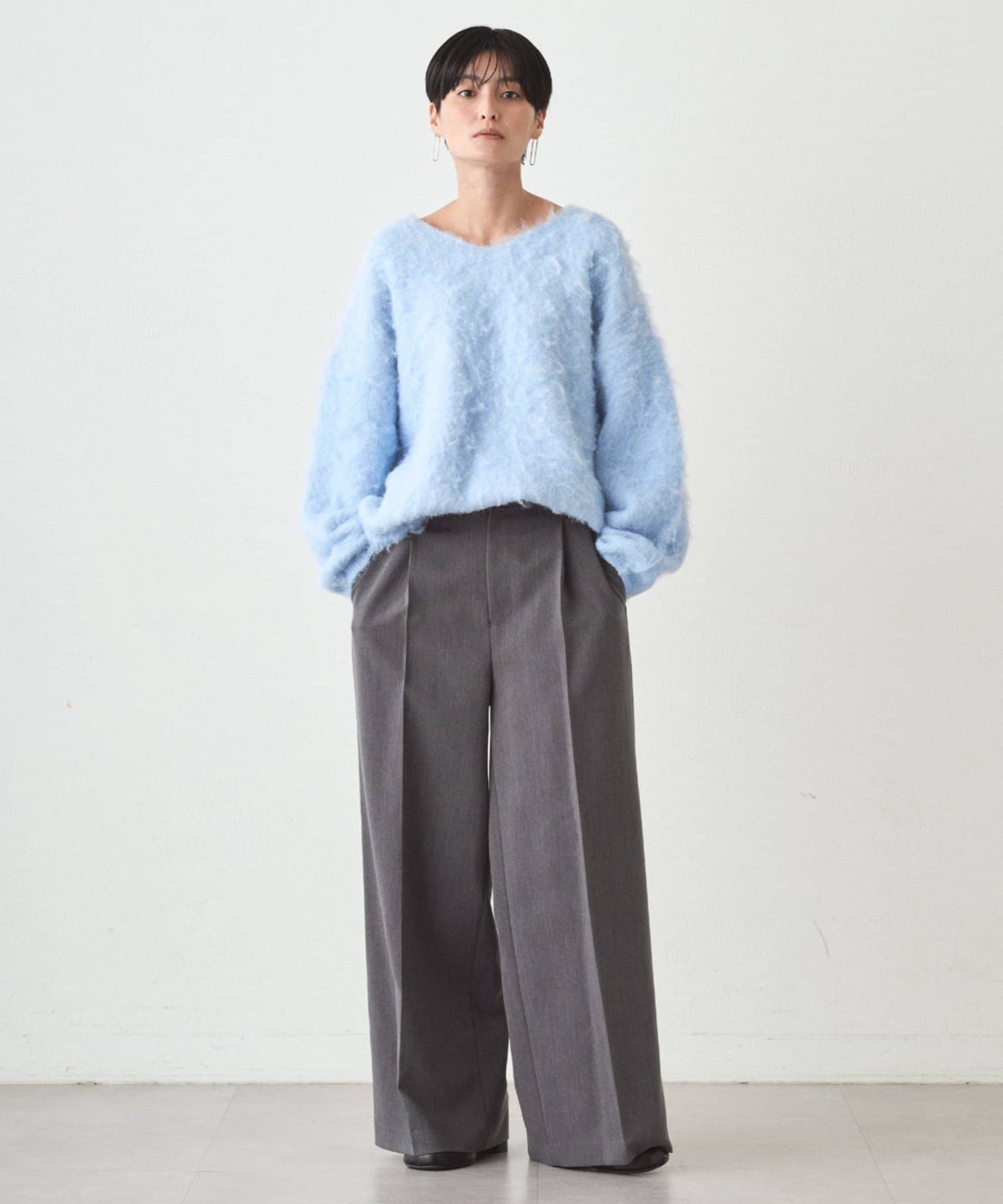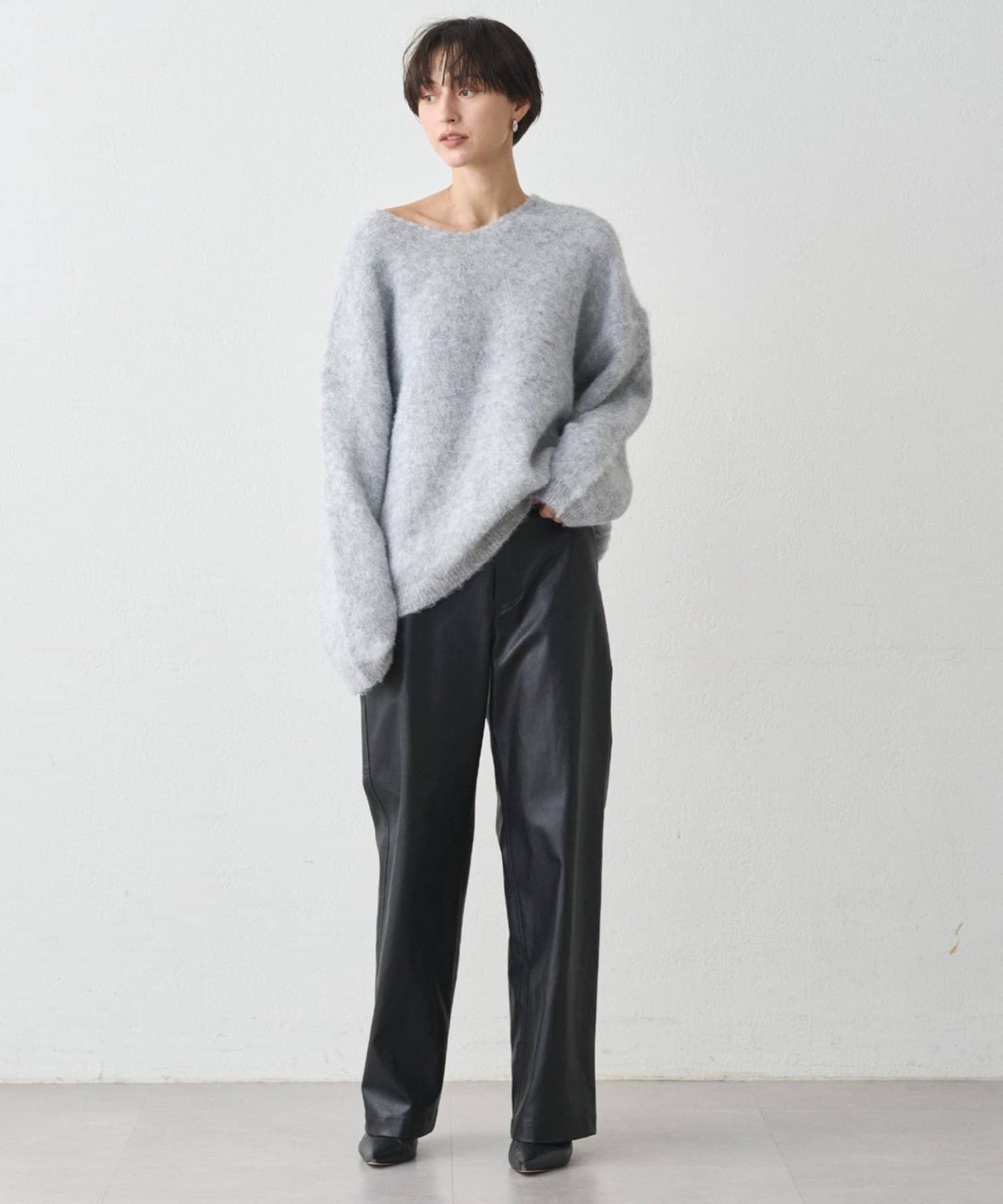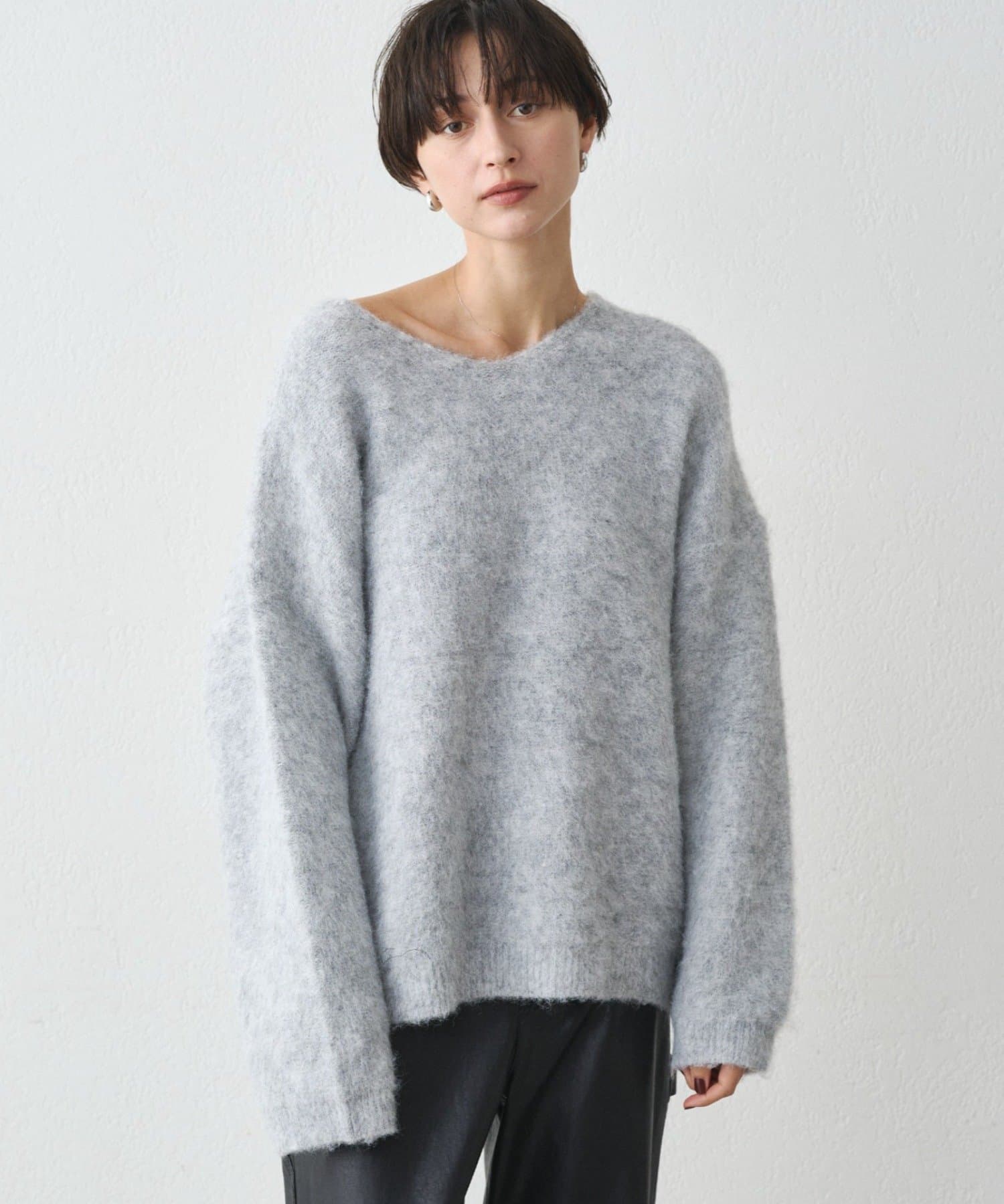 ・ゆるっとしたオーバーサイズでありながら、深めのVネックがデコルテを美しく見せてくれます