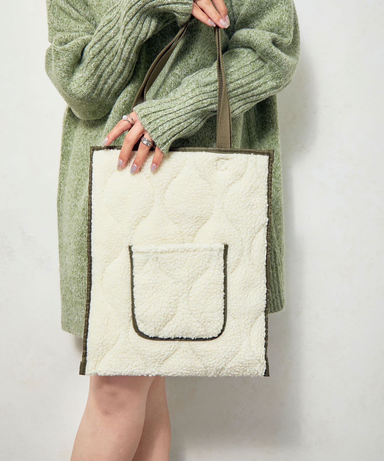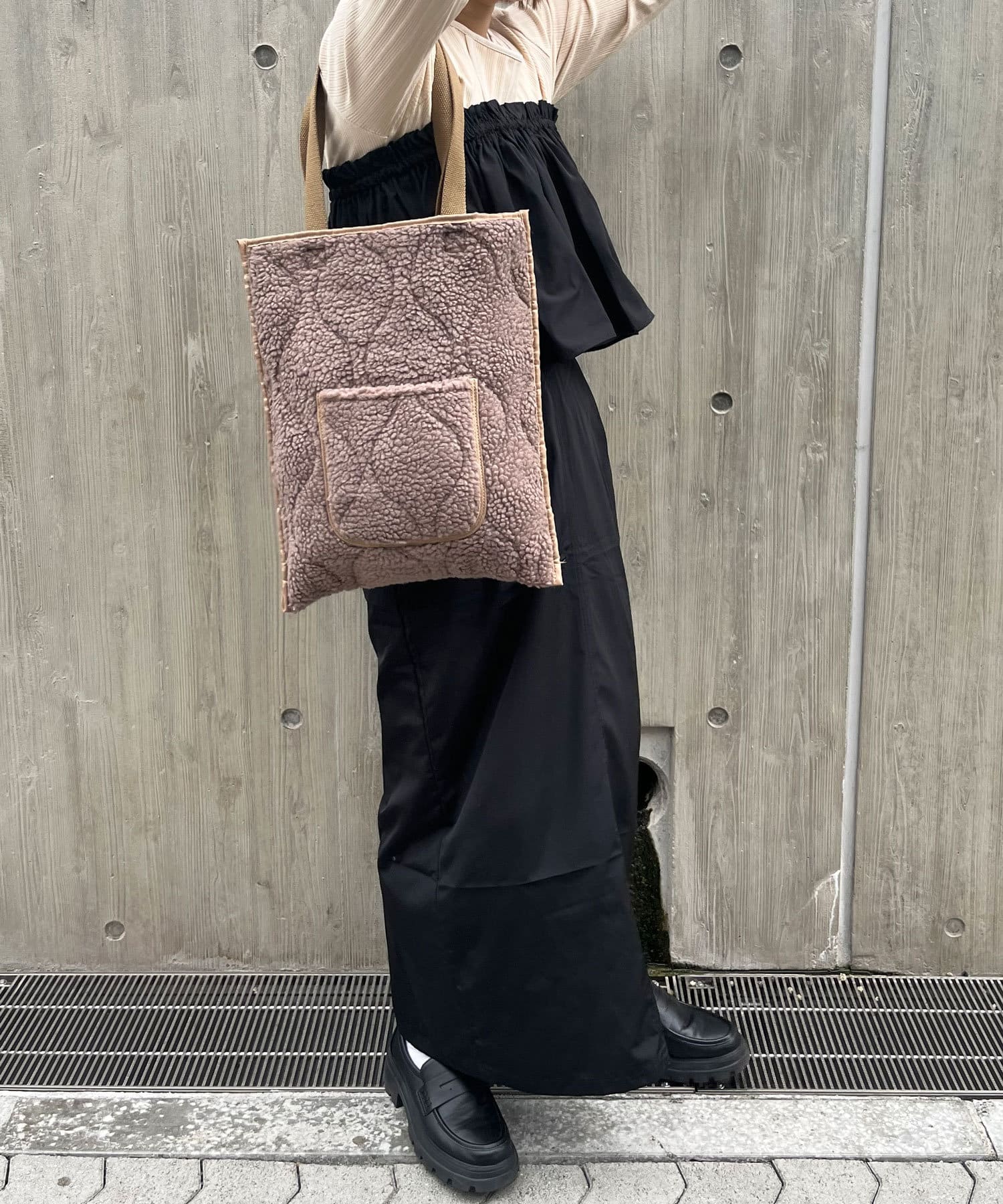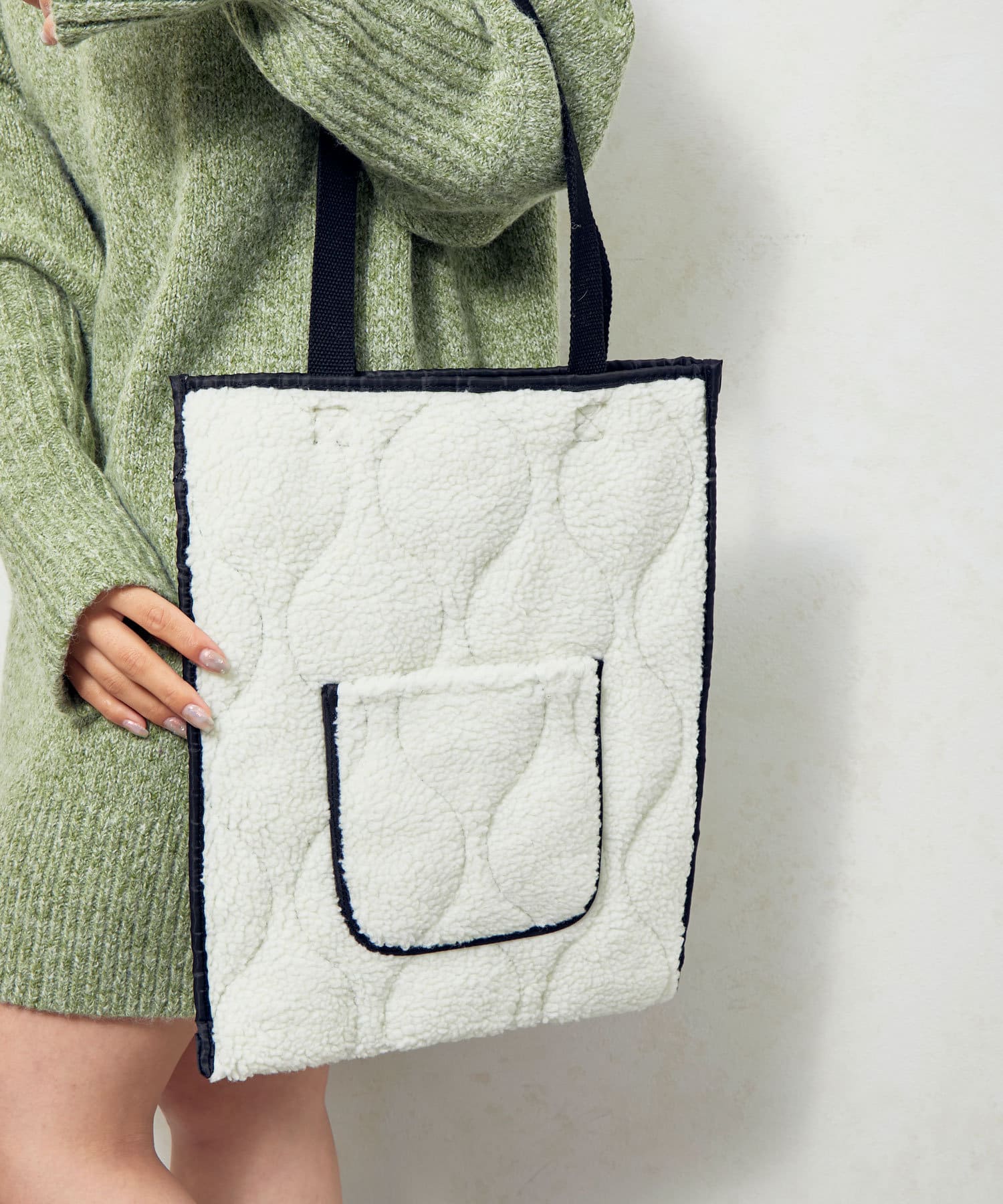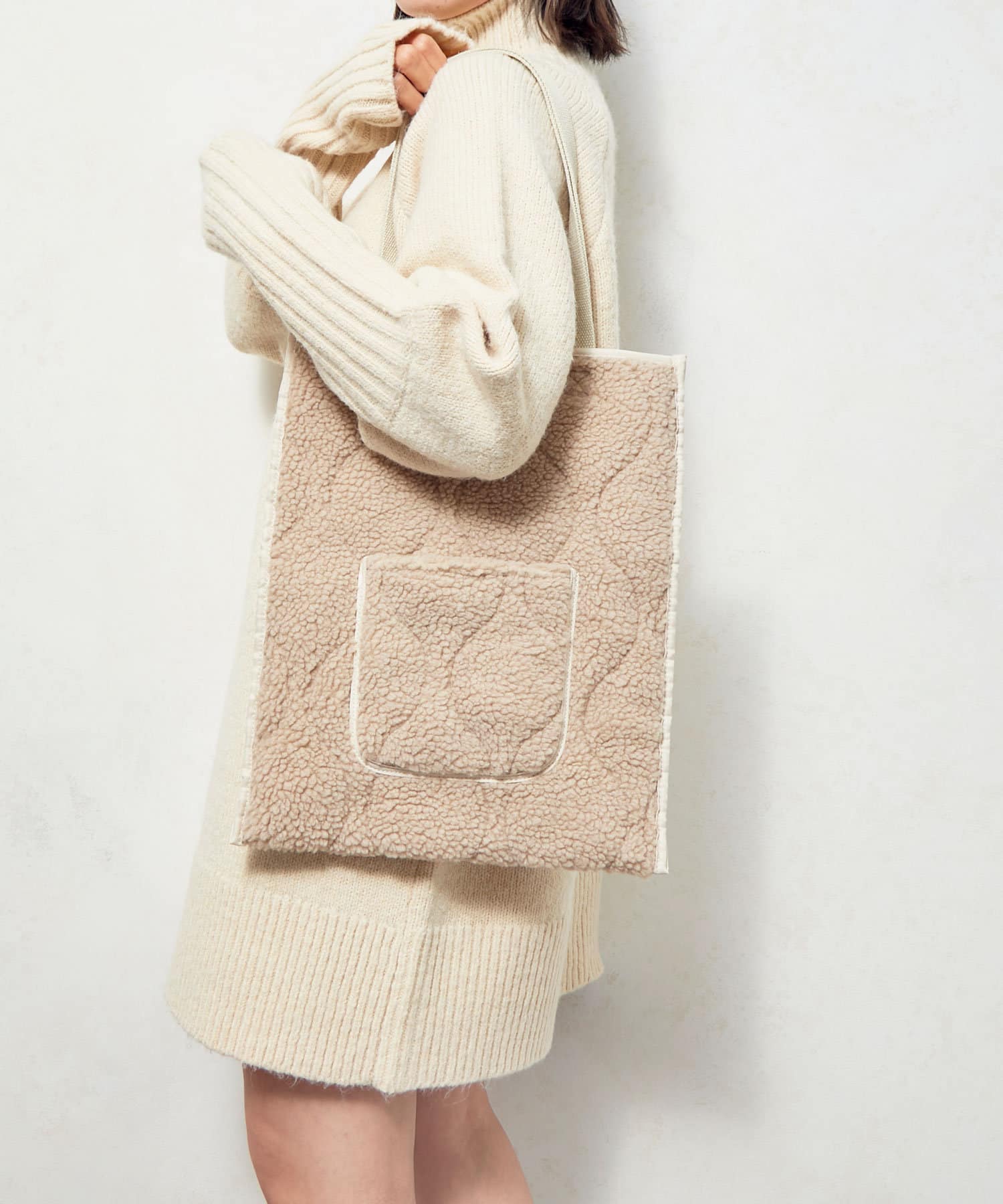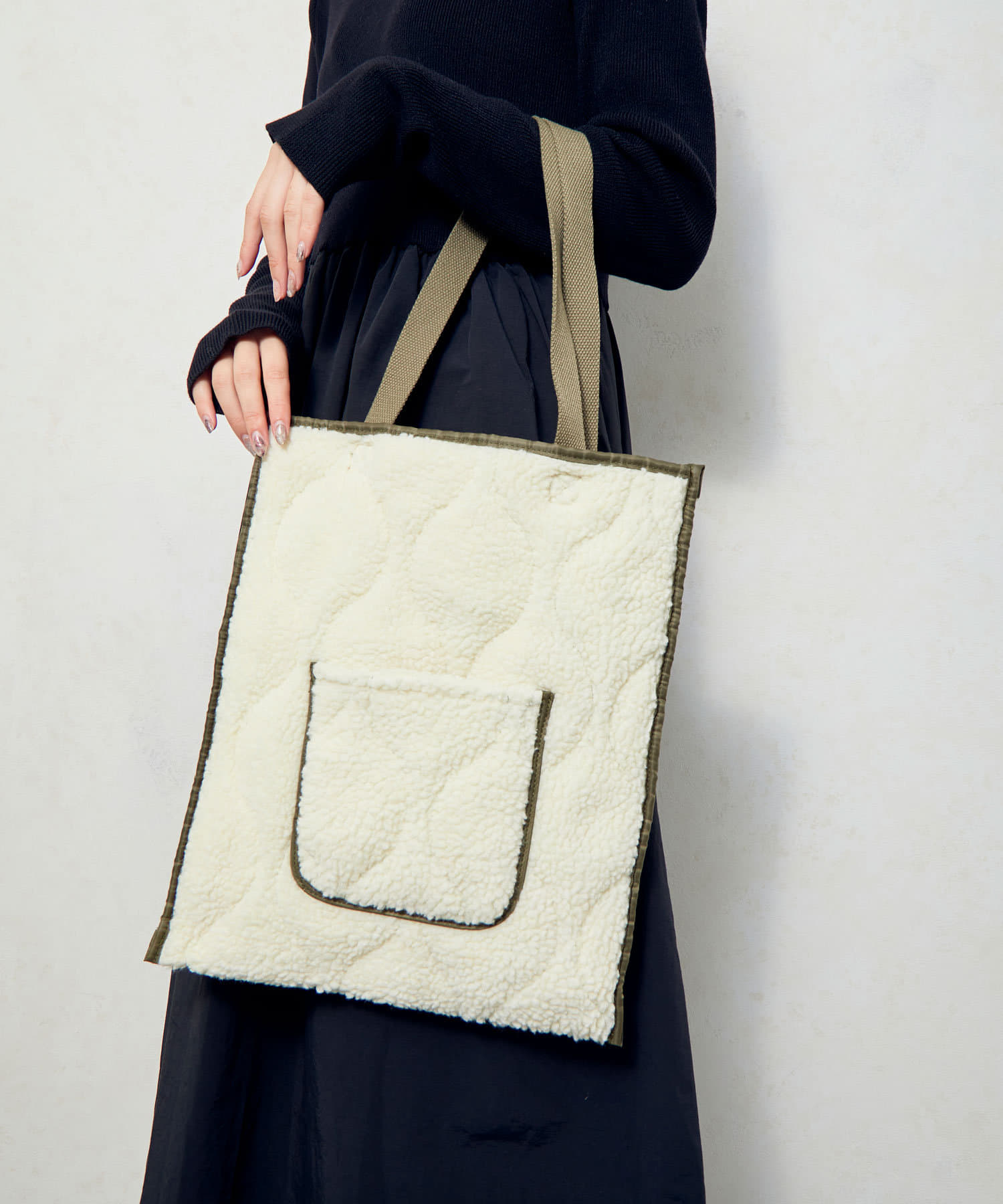 ボア素材/キルト素材のリバーシブルで使える万能なトートバッグ。