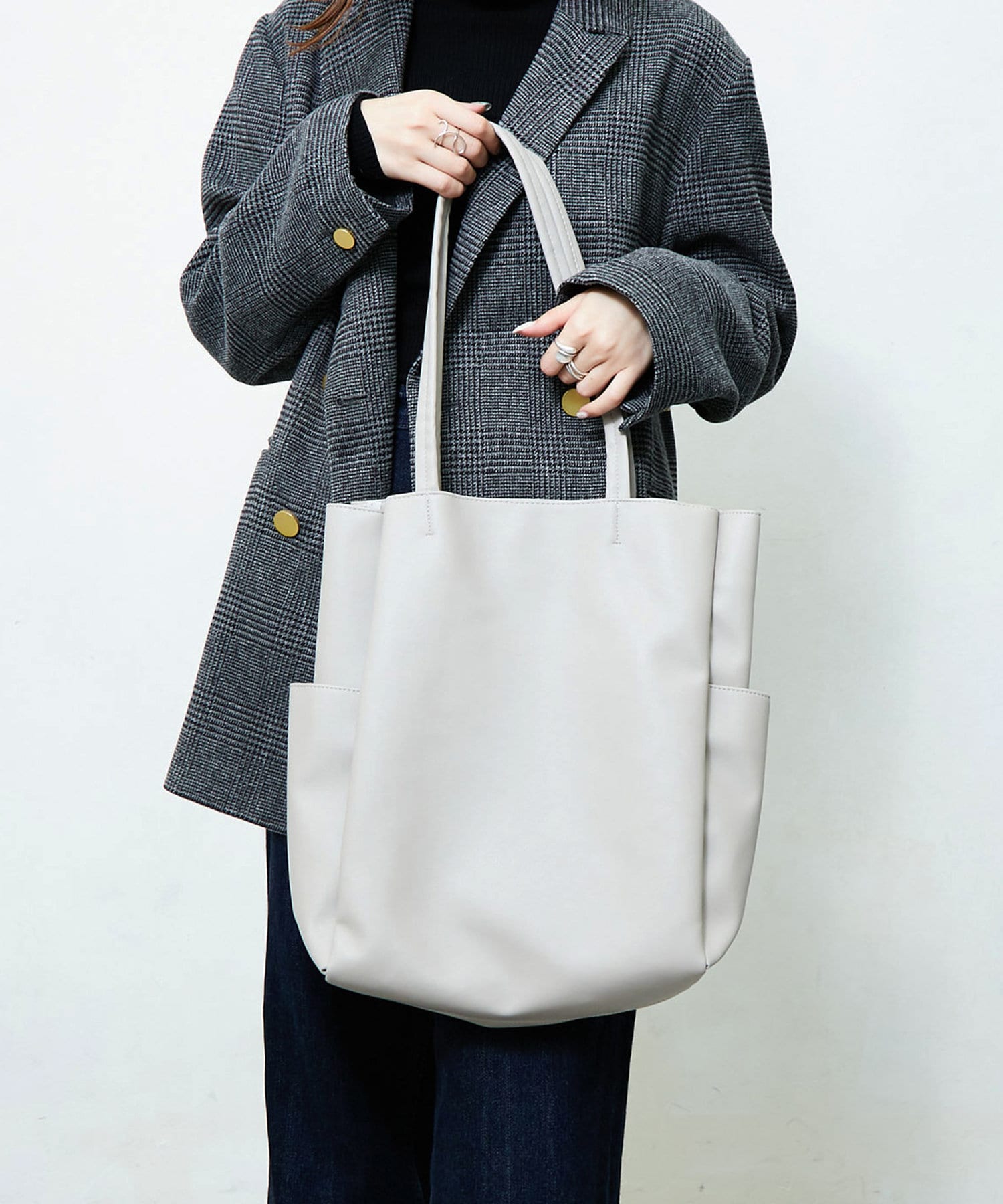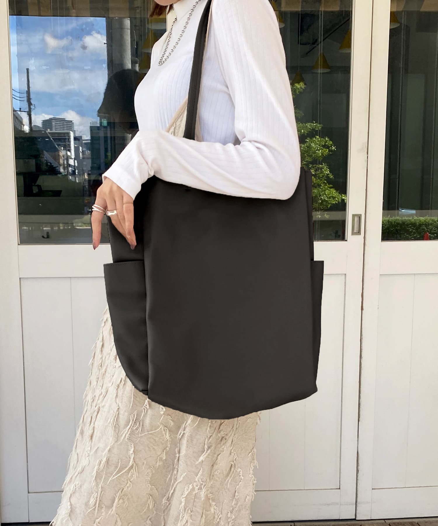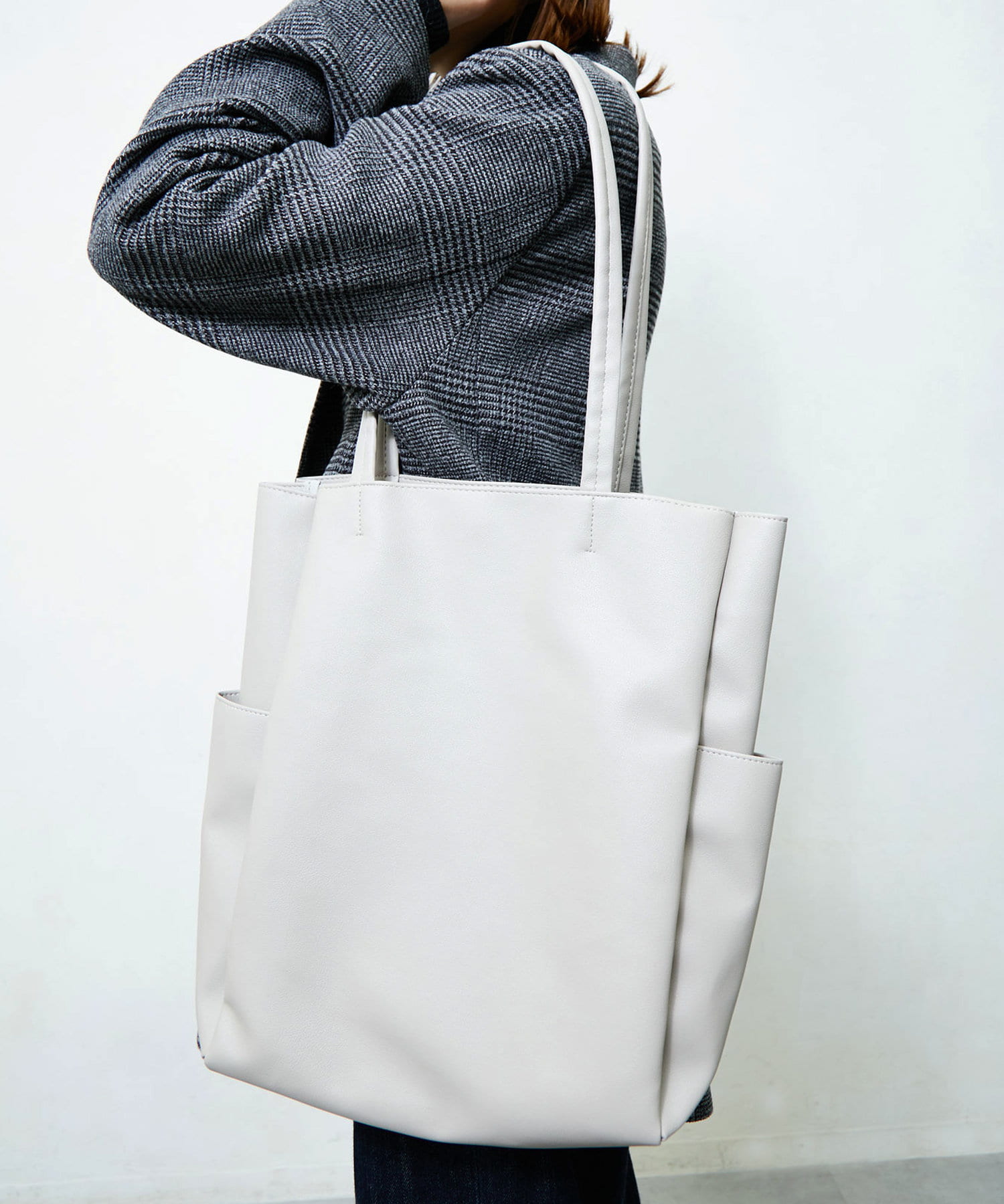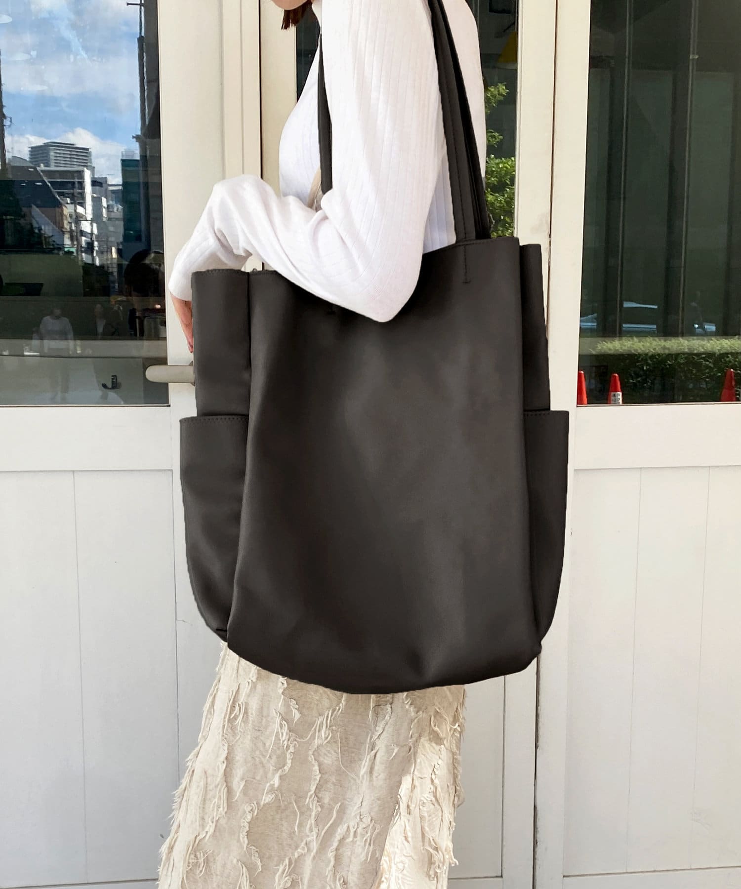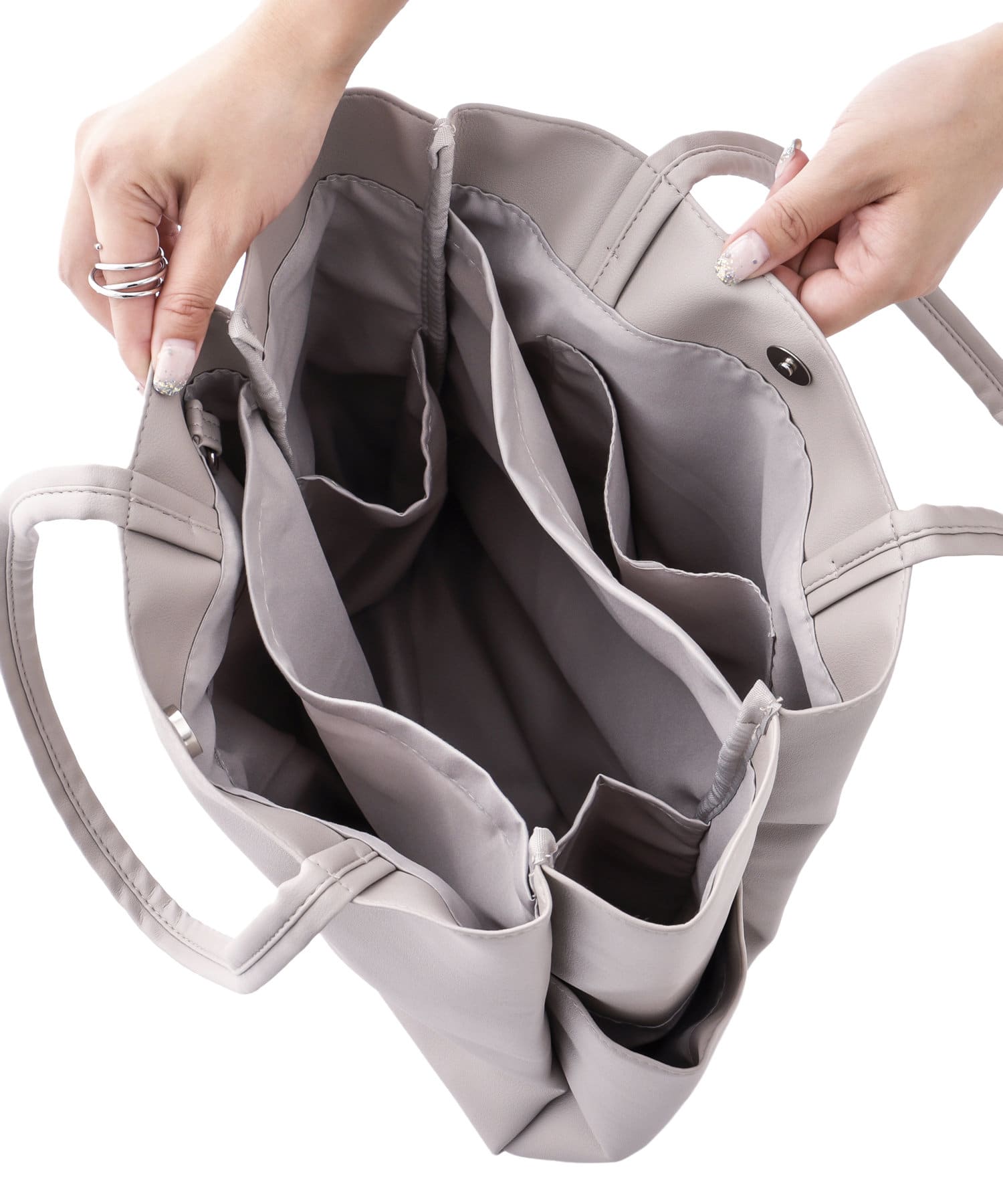バッグの中でかさばりがちな荷物を、すっきりと整頓して収納できる万能トートバッグ。