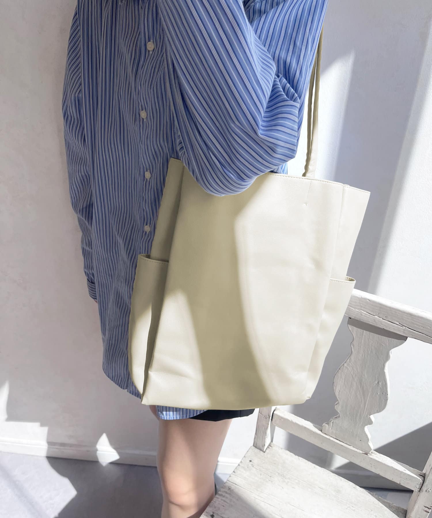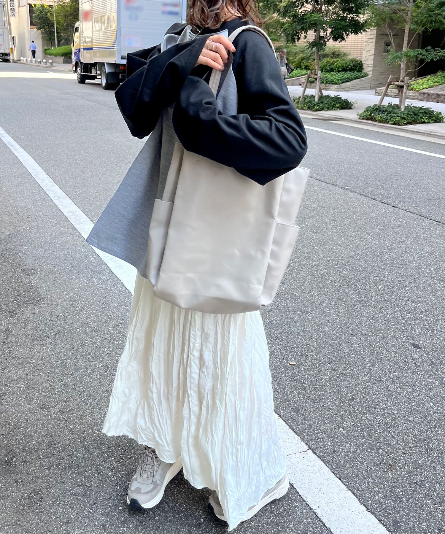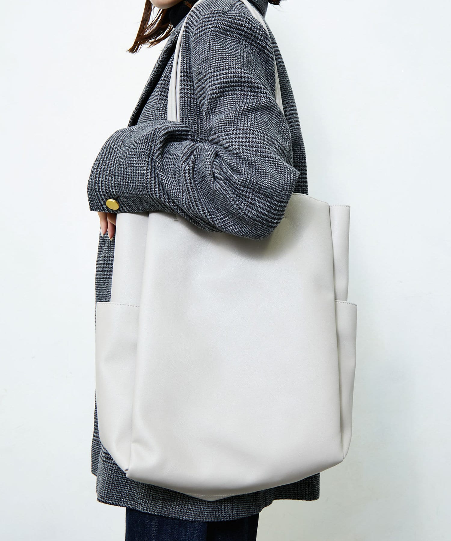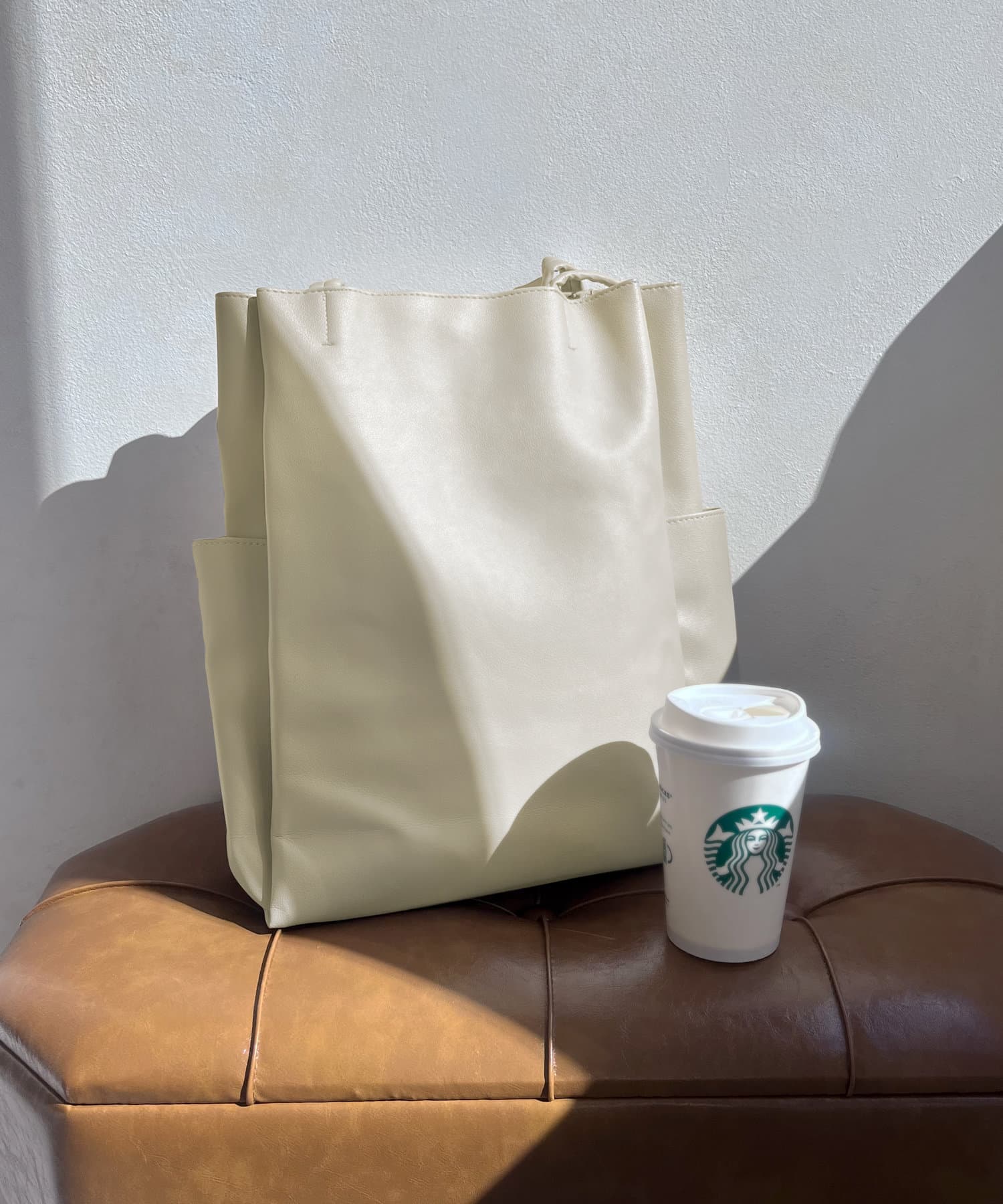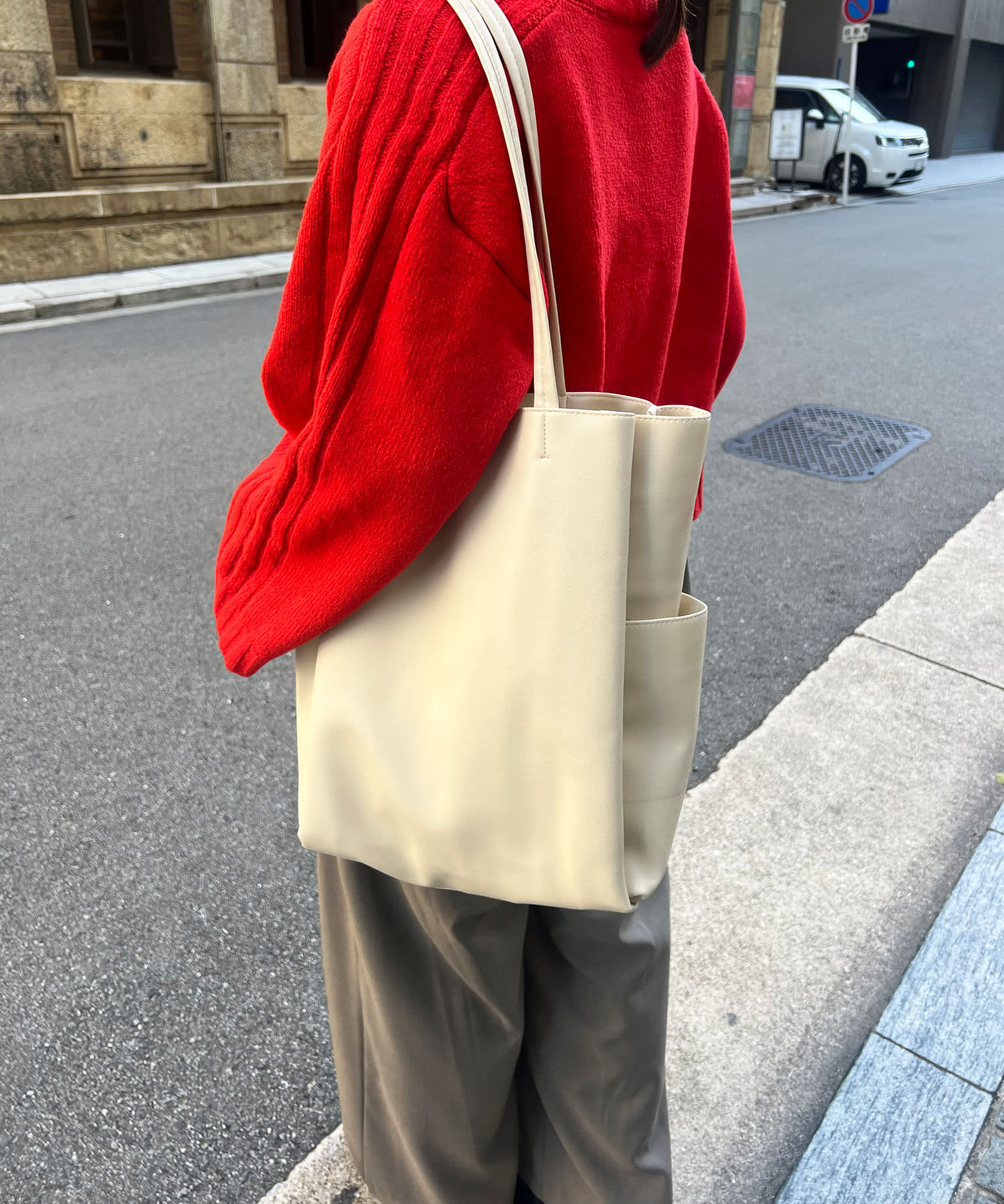 バッグの中でかさばりがちな荷物を、すっきりと整頓して収納できる万能トートバッグ。