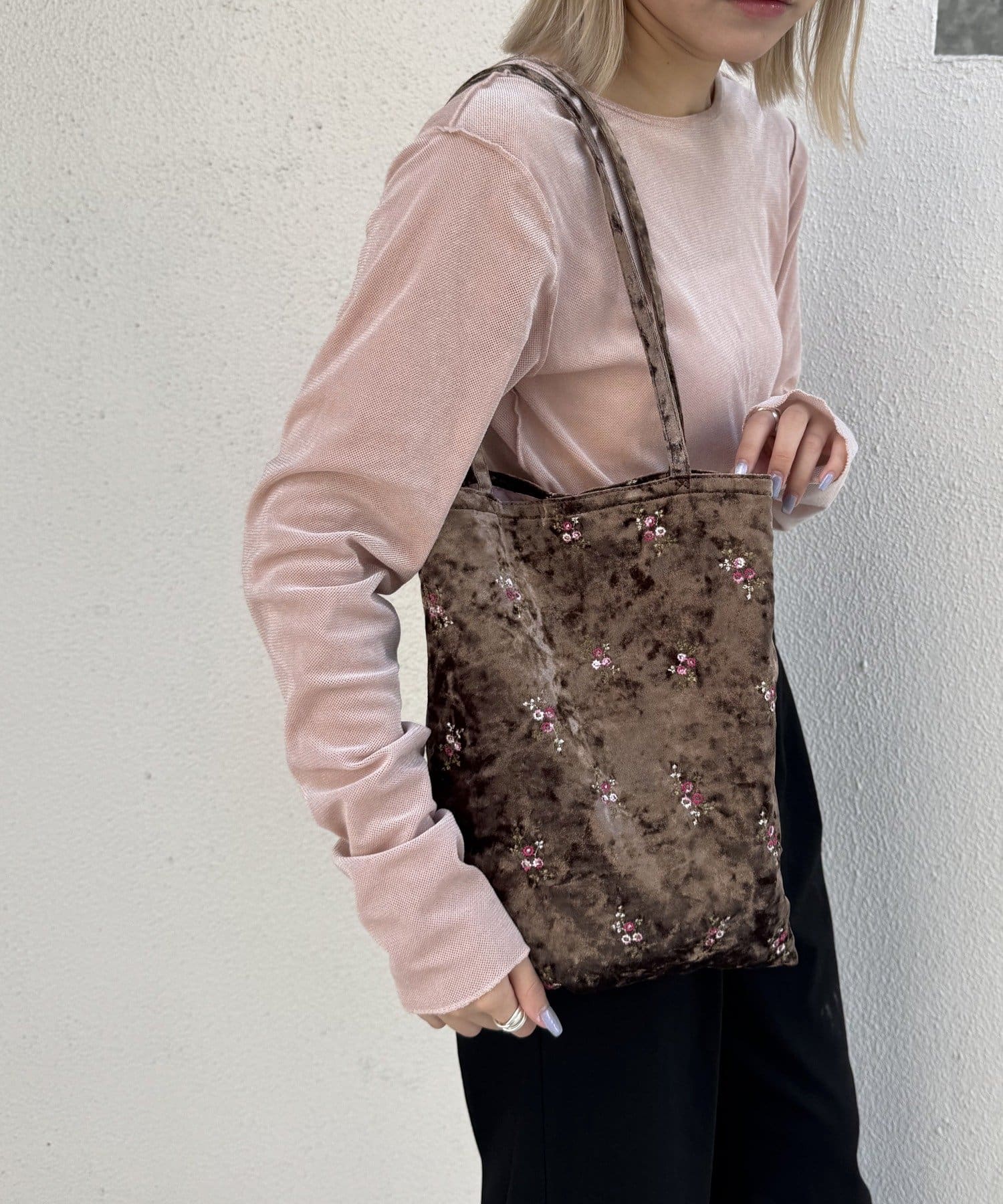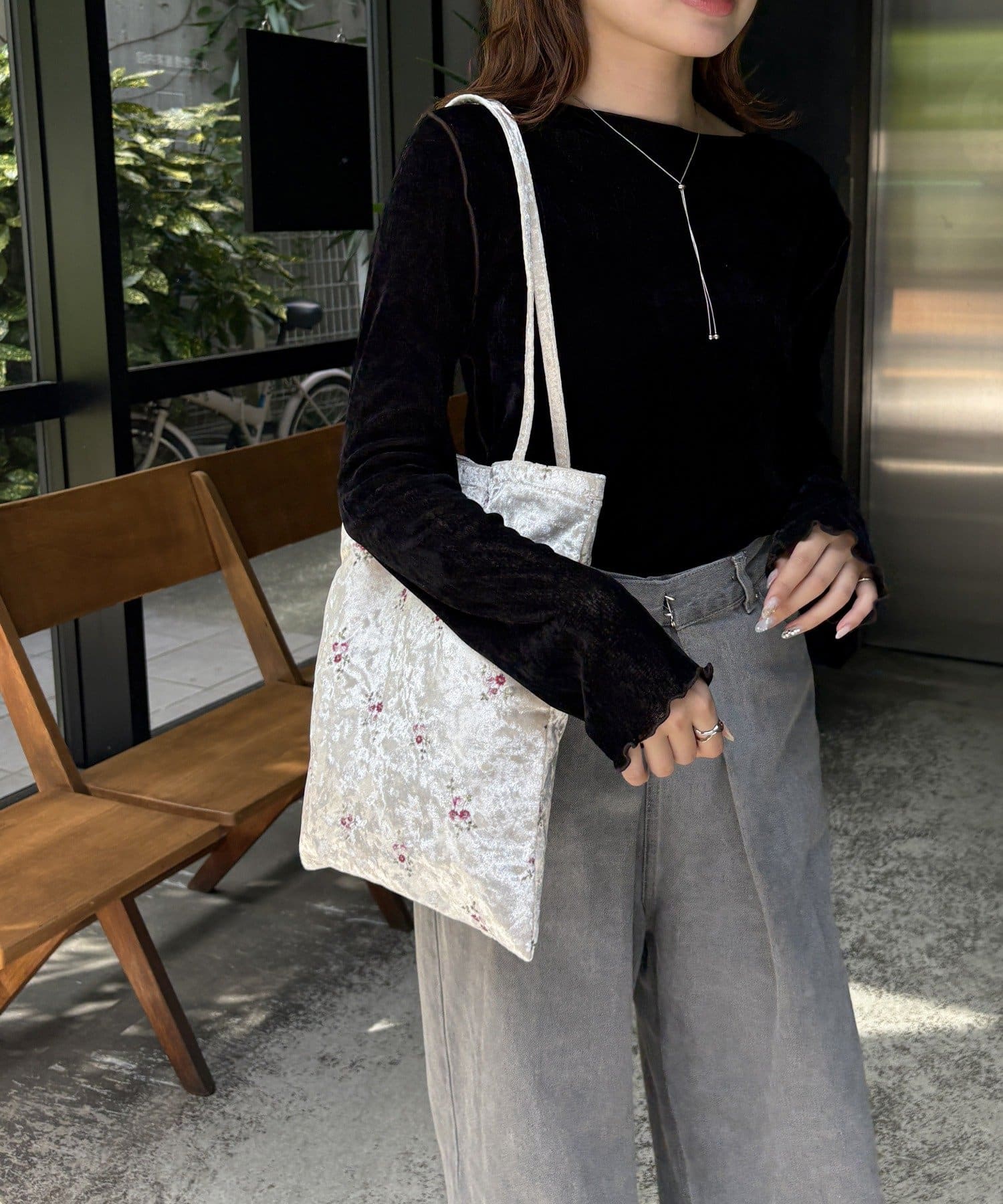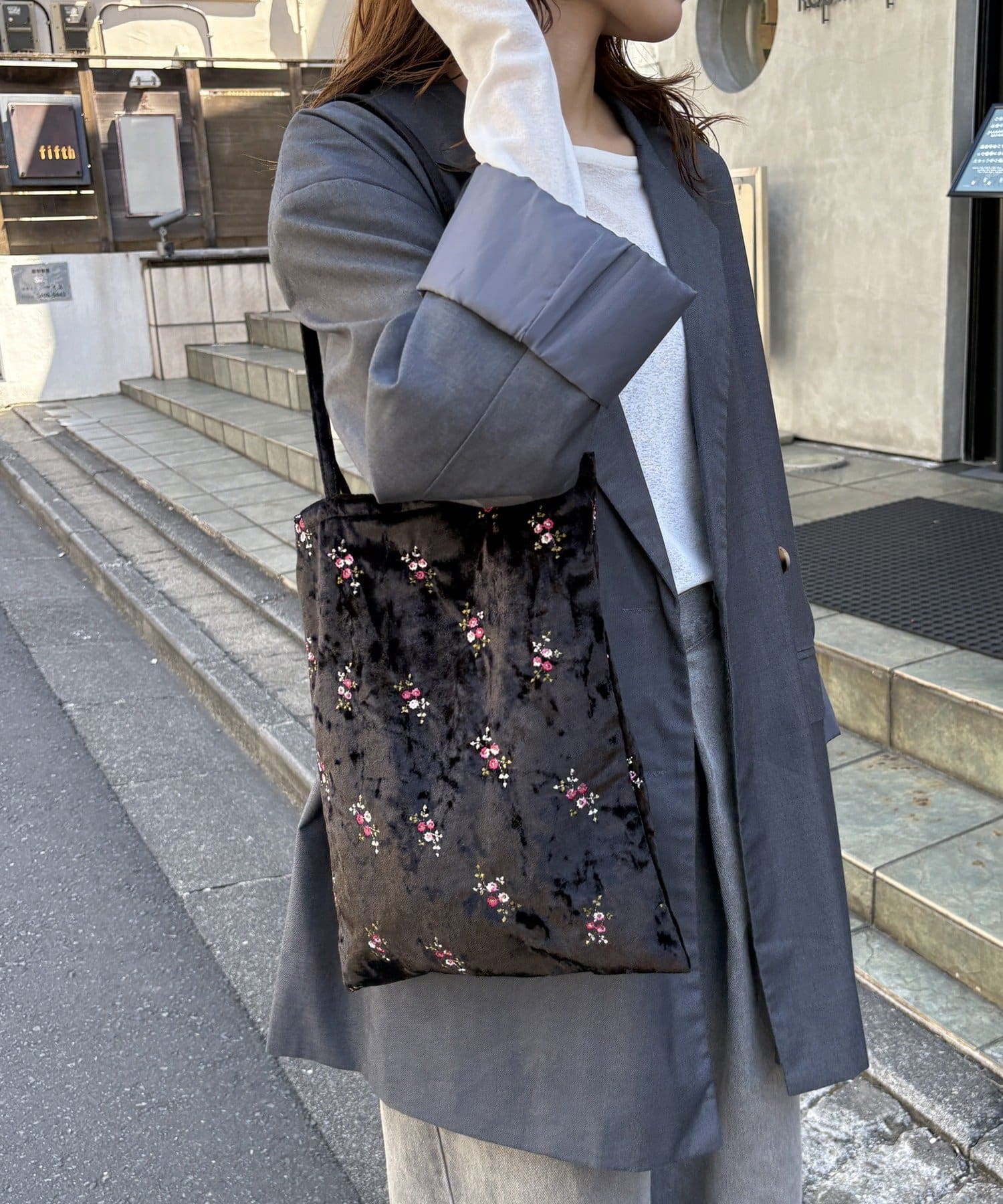 トレンド感溢れる花柄デザインがポイントのバッグ。