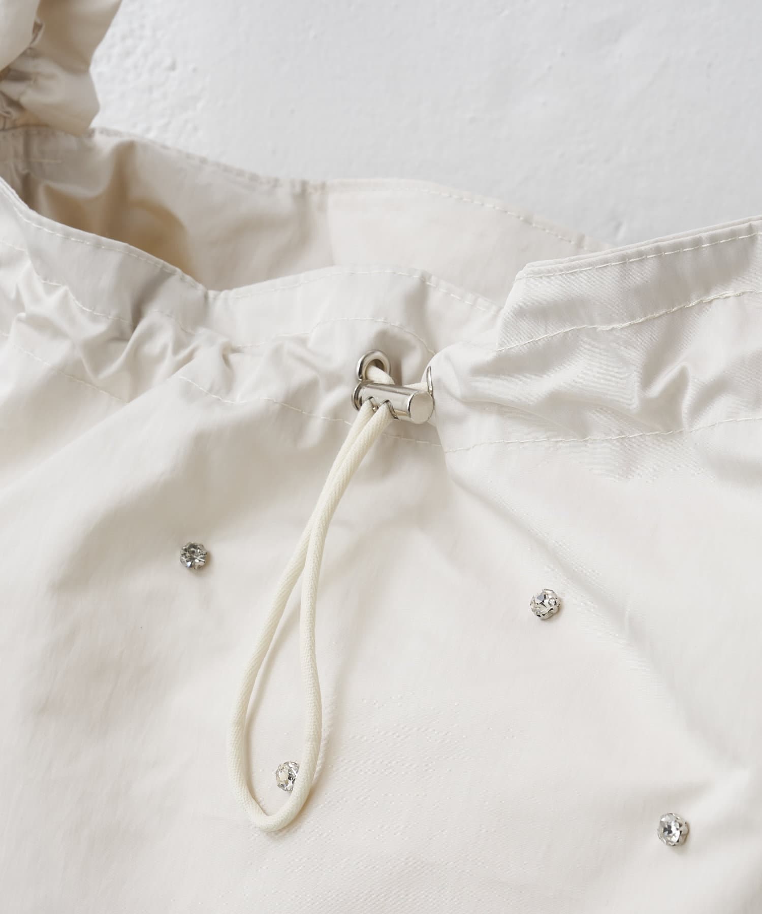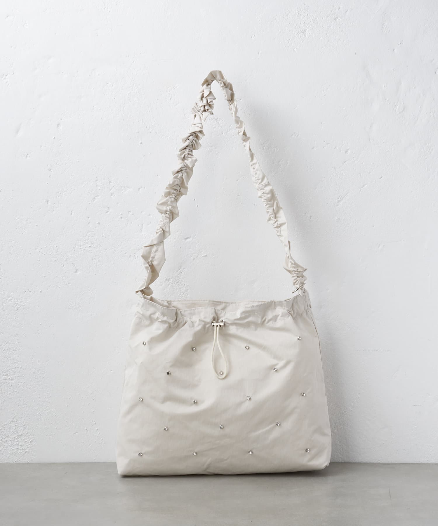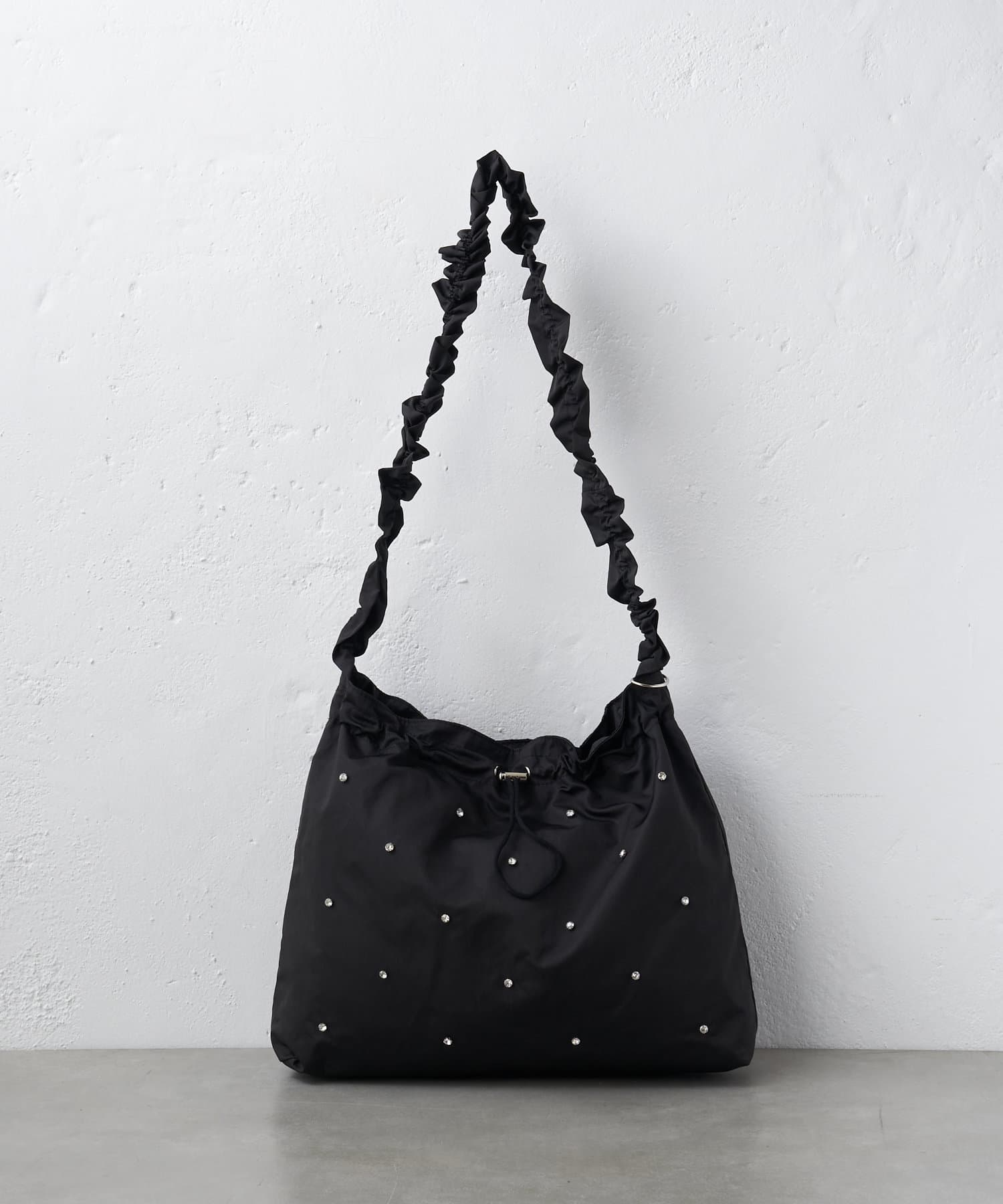 ギャザーとストーンがトレンドライクなショルダーバッグ。