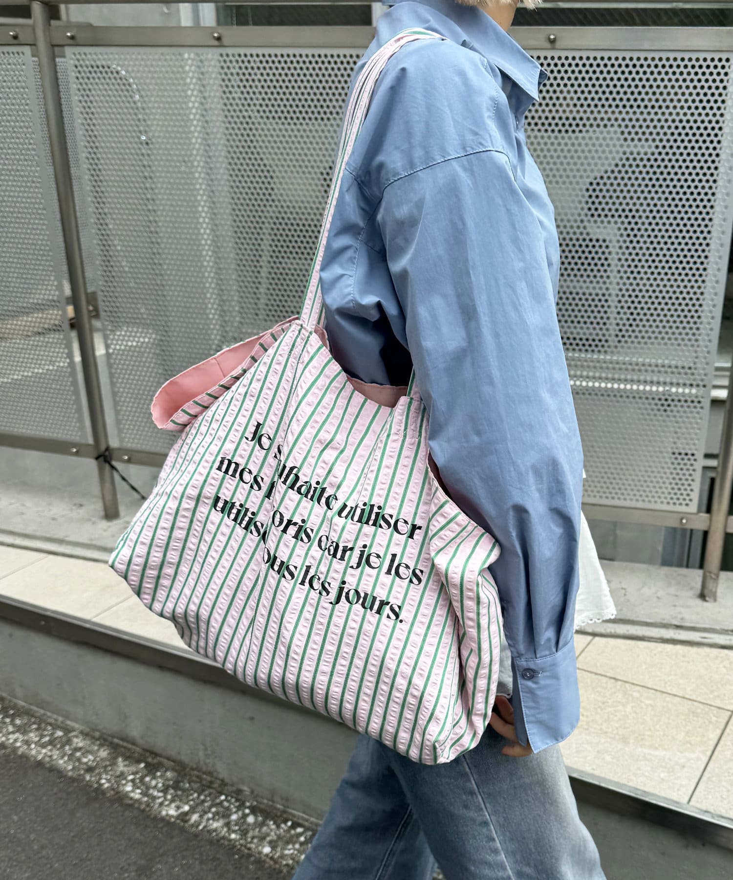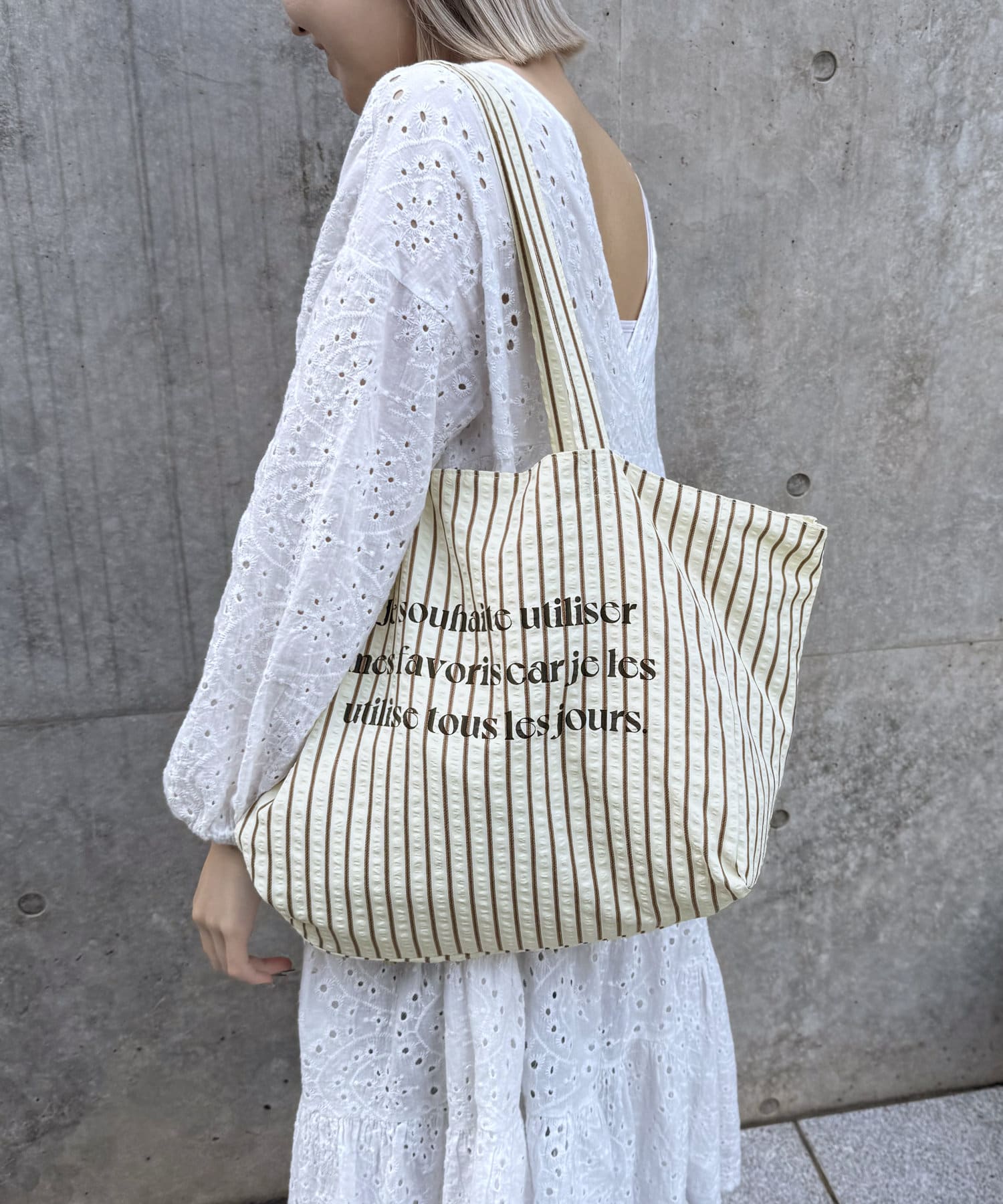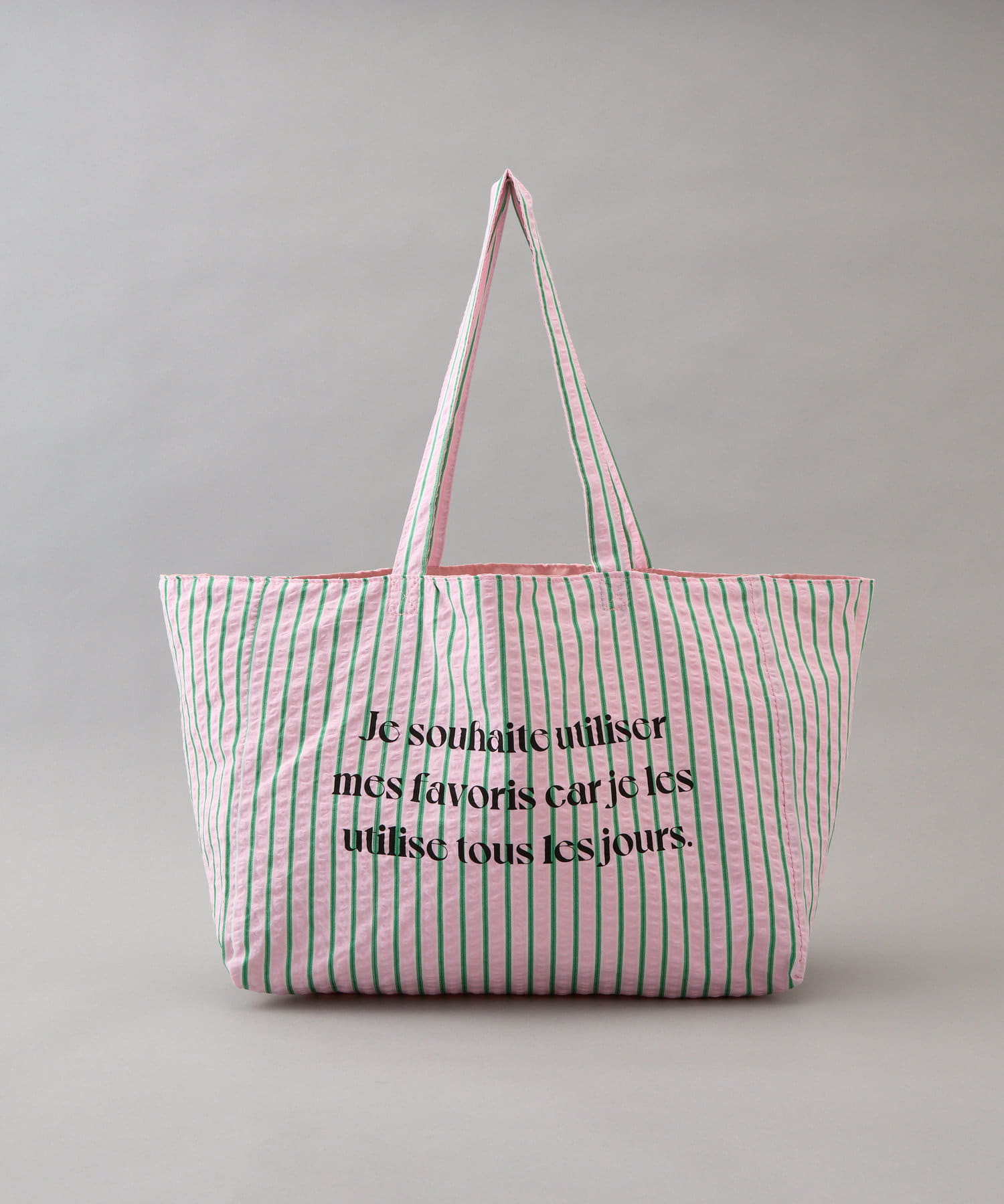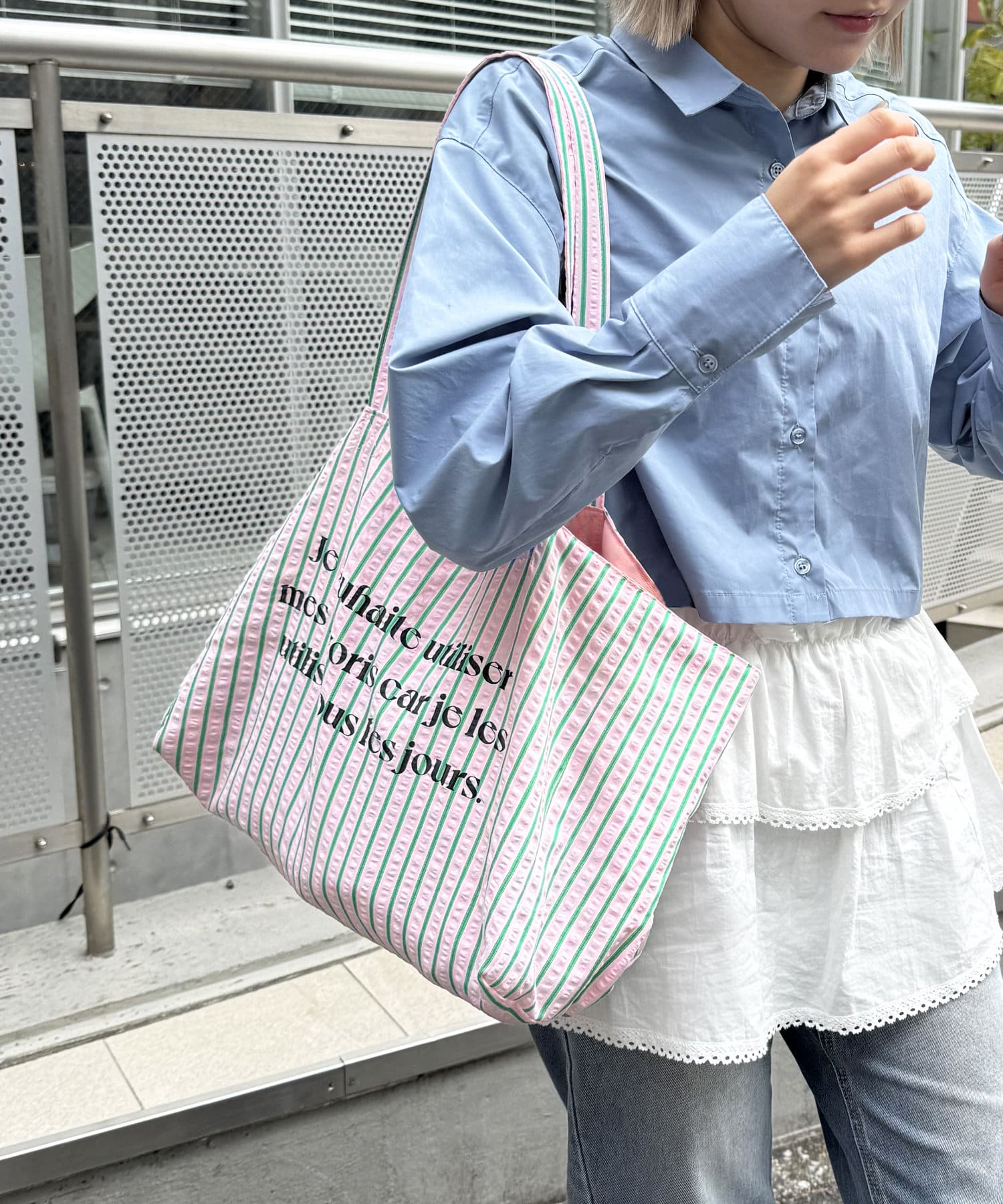 春にぴったりのストライプにロゴがポイントのトートバッグ。