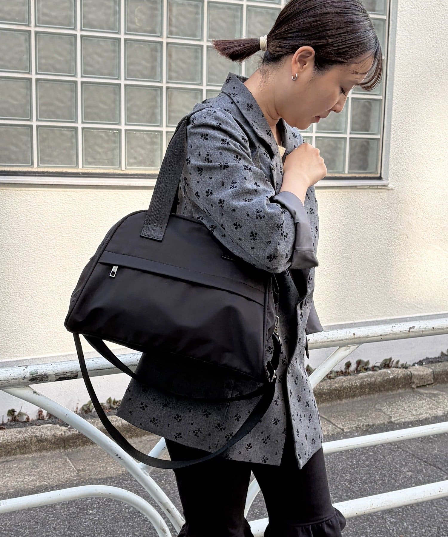 取り外し可能なショルダーストラップが付属しているので、荷物の量や気分に合わせて肩掛け・斜め掛け・手持ちとスタイルチェンジが可能。