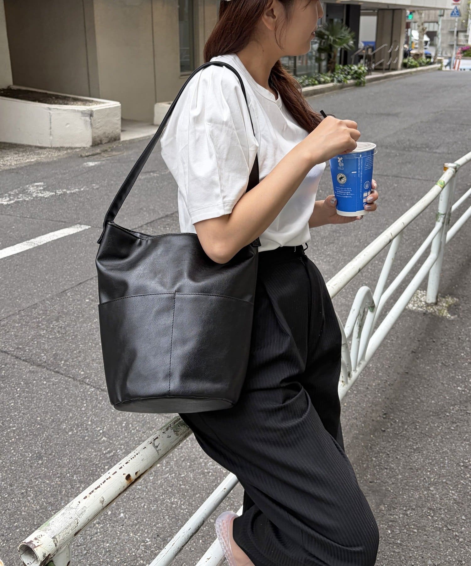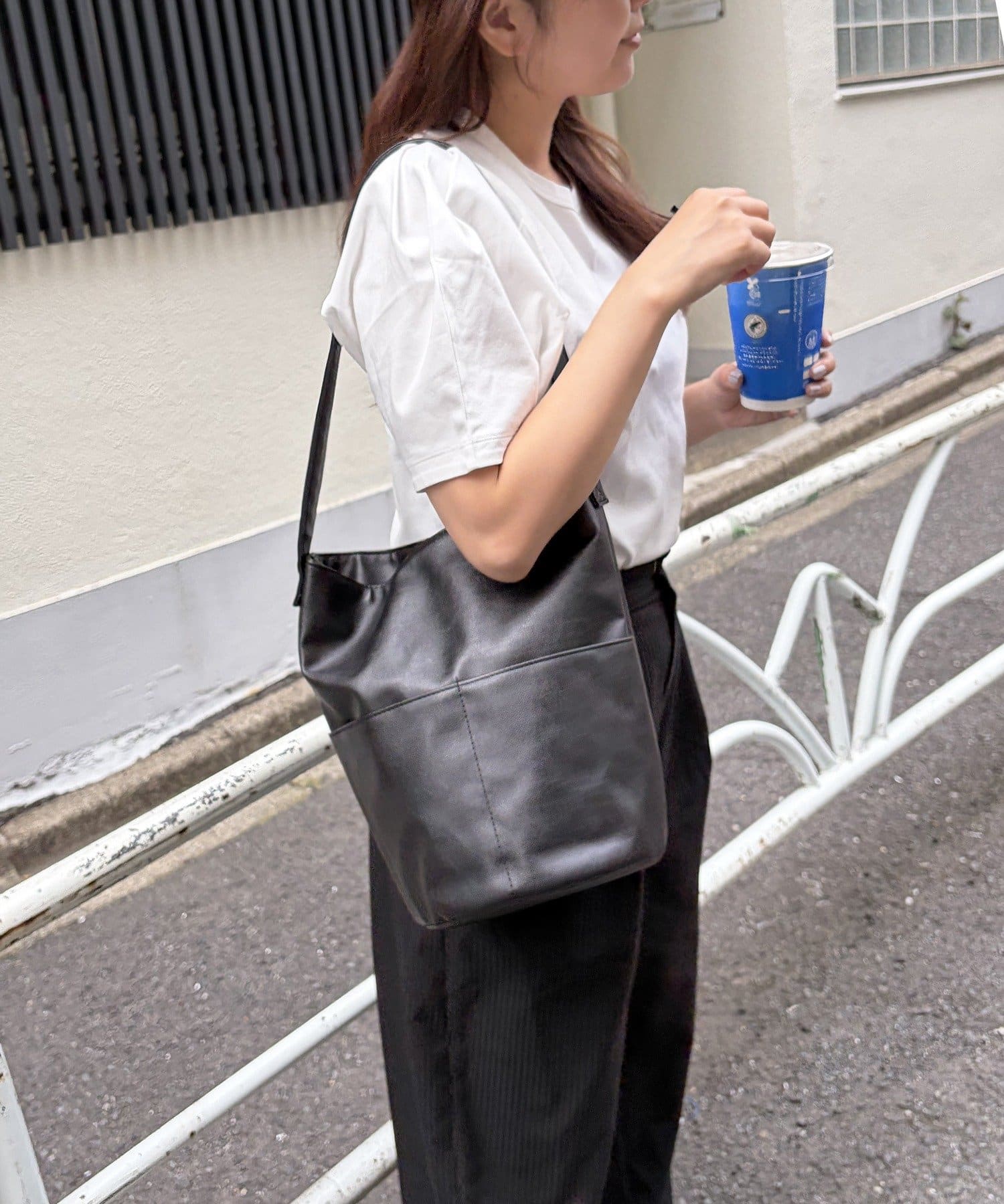 お財布やポーチ、タンブラーなど、お出かけの必需品がしっかり収まるデイリーユースにぴったりのサイズ感です。