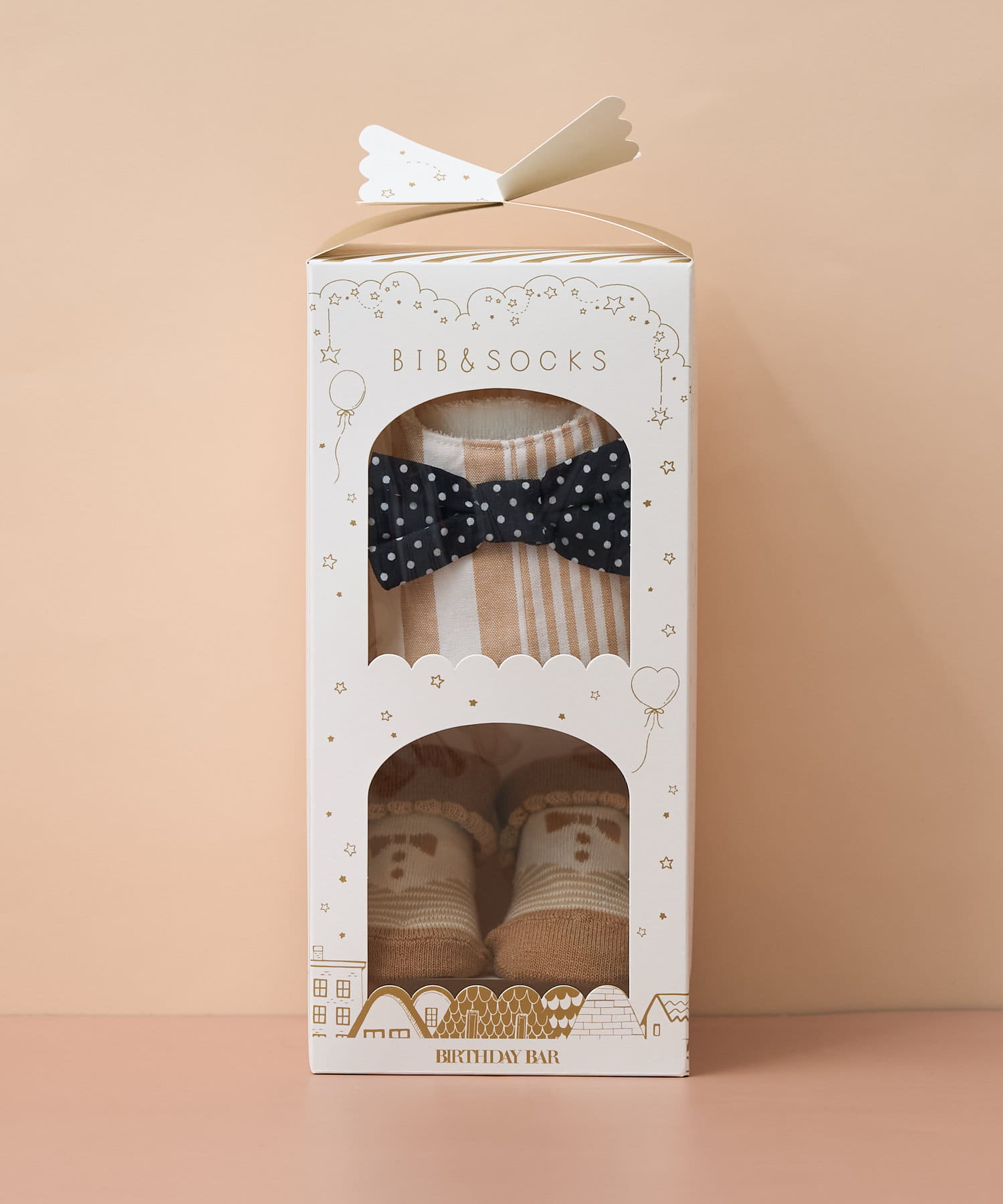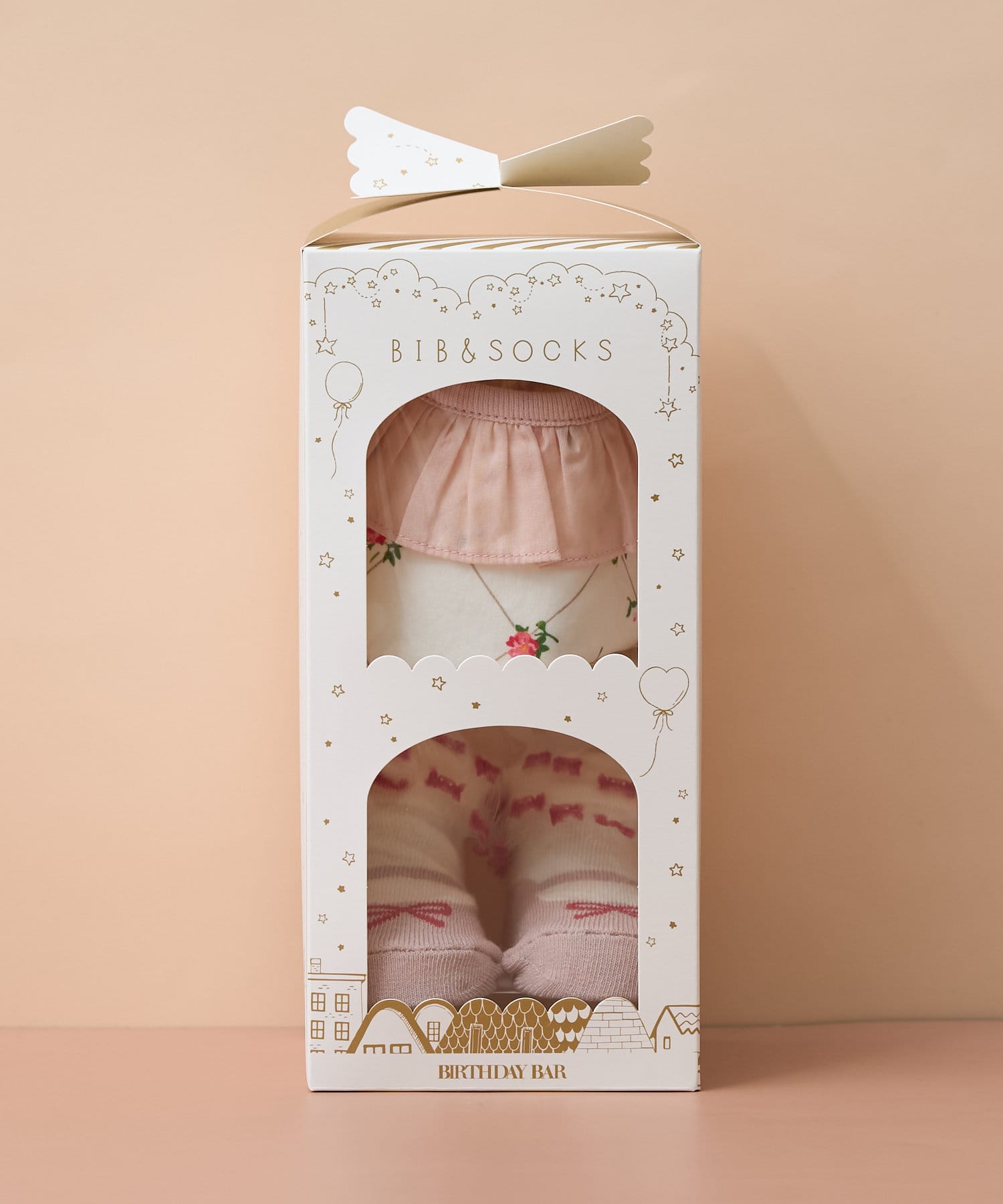 BIRTHDAY BARオリジナルの可愛いビブ(よだれかけ)とソックスのセット。