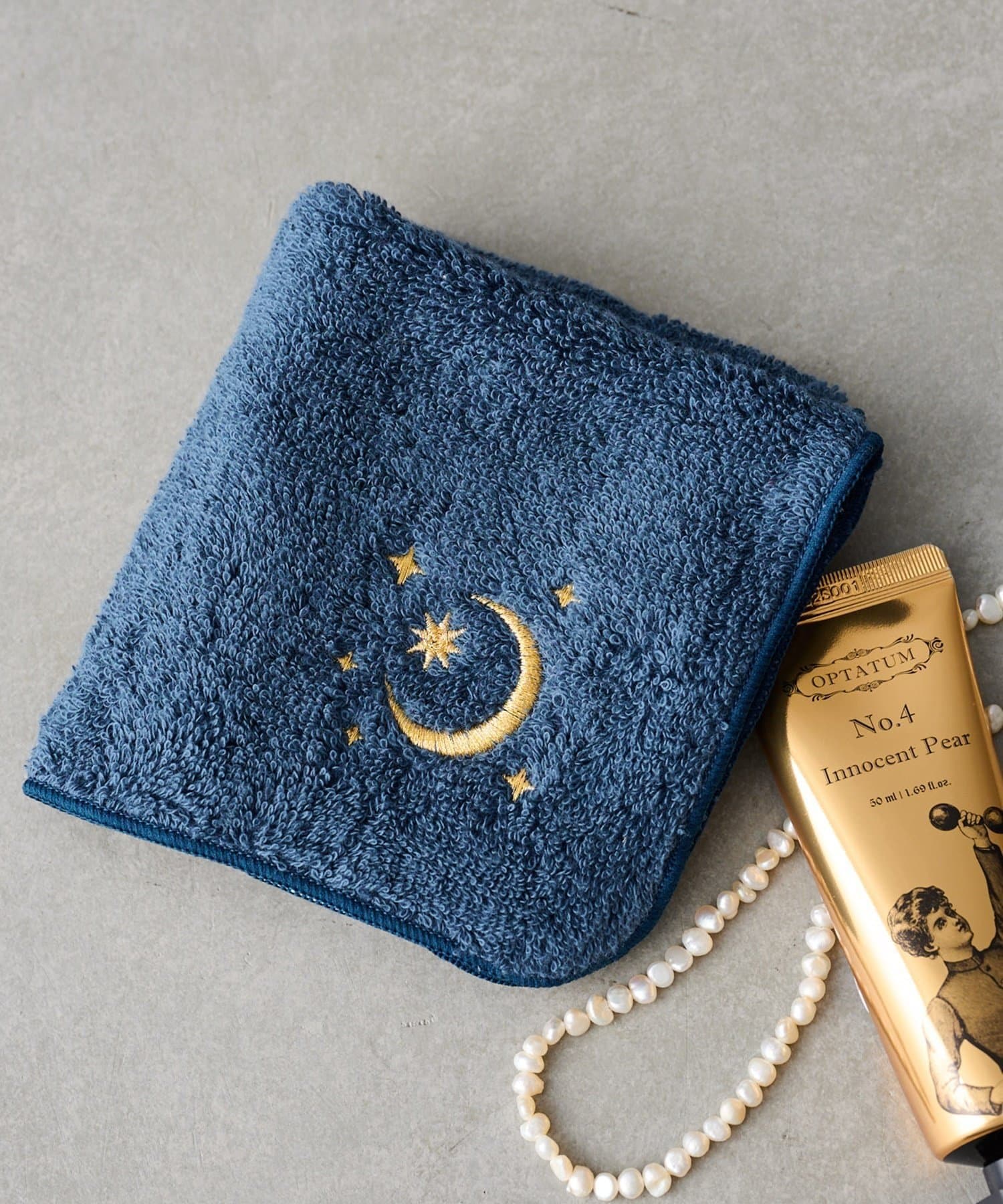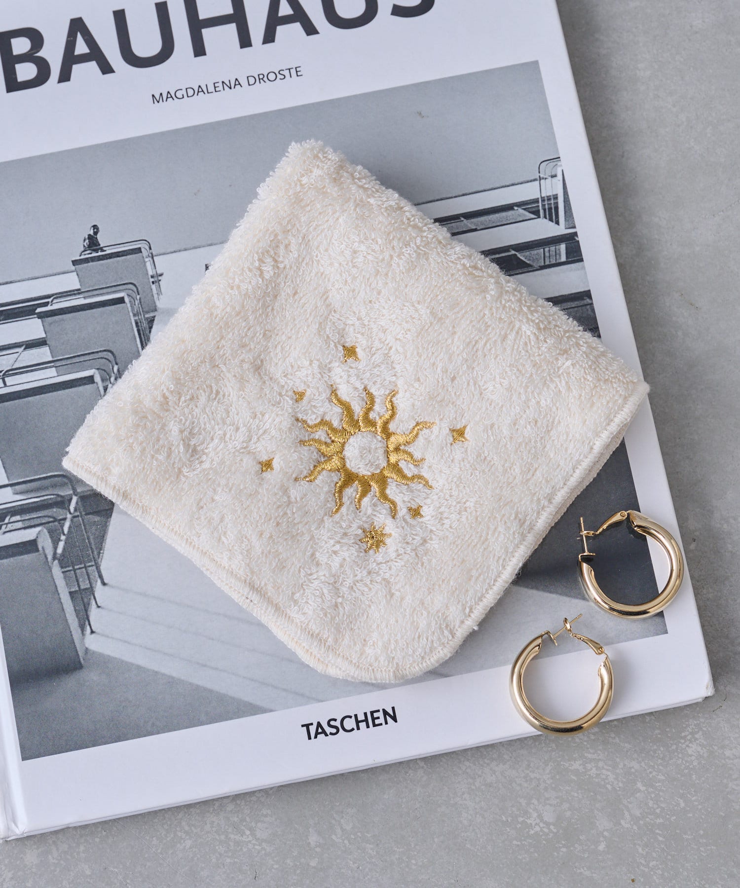 太陽と月をモチーフにした今治産のタオルハンカチ。