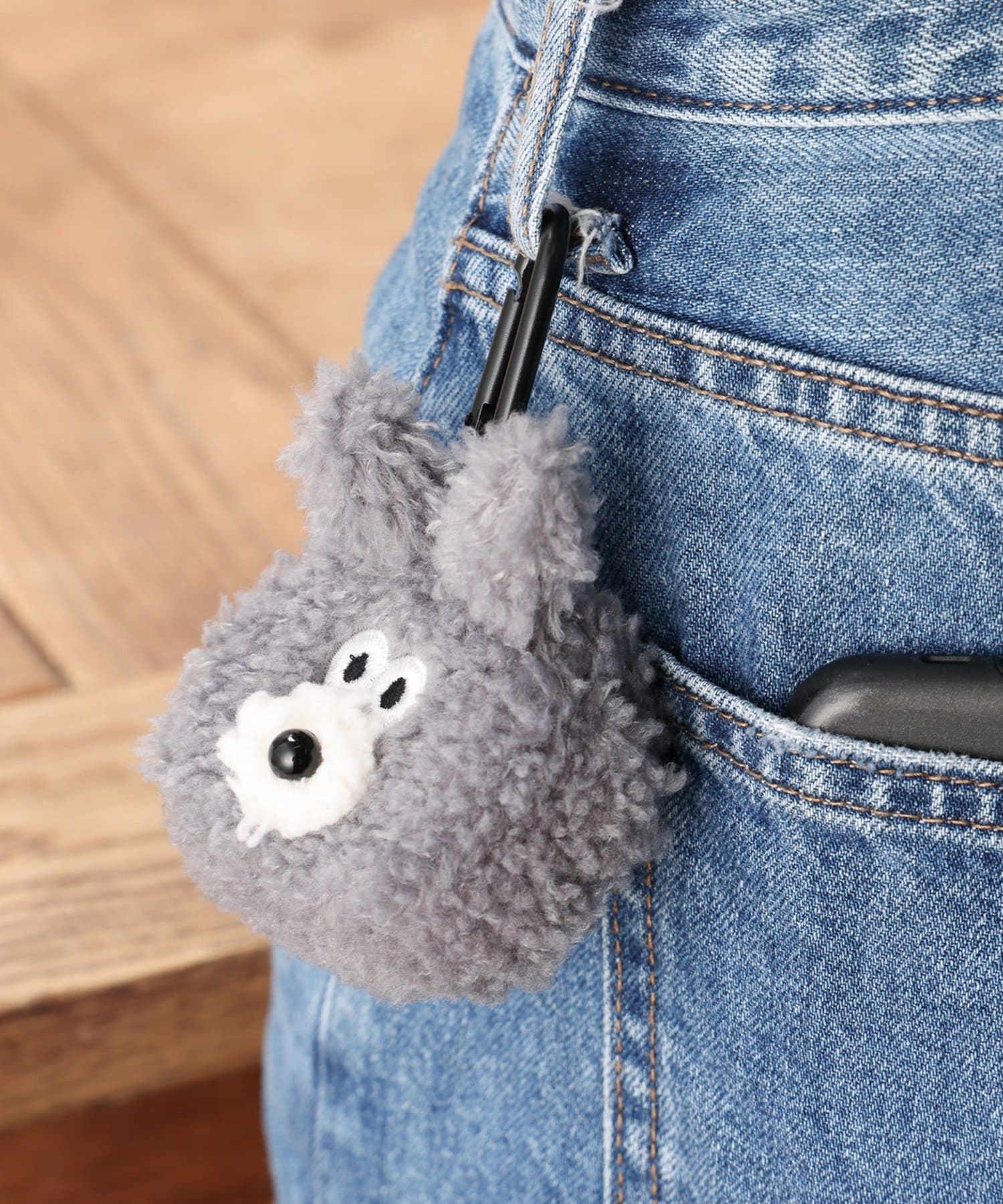 カラビナ付きなのでバッグやベルトループに着けてお出かけしてください。