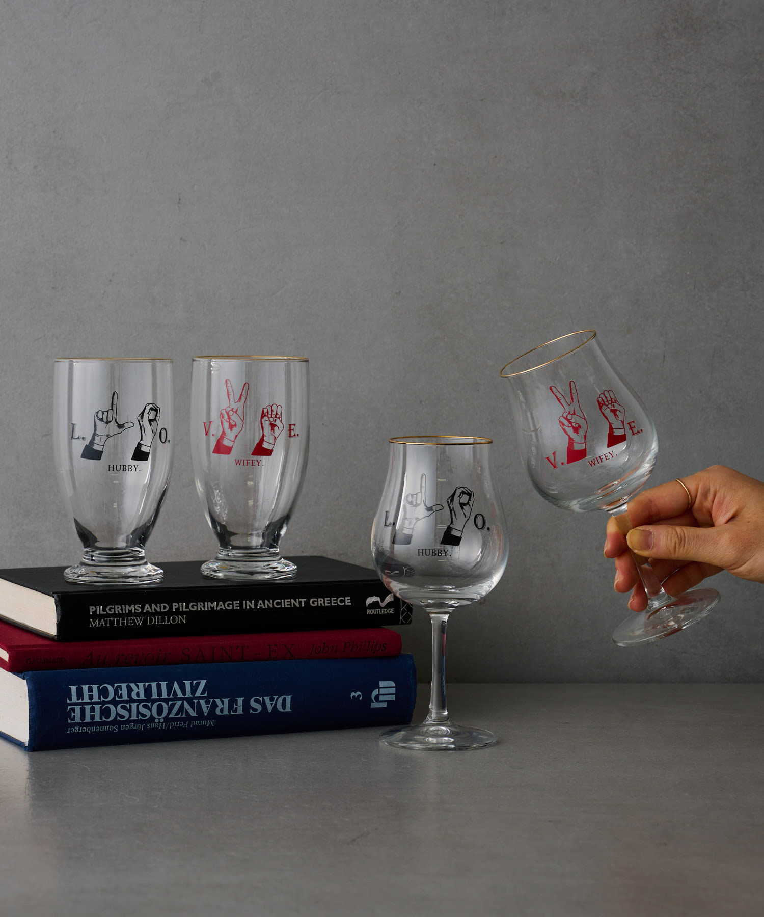 2つのグラスが合わさって『LOVE』のワードが連なるデザイン。