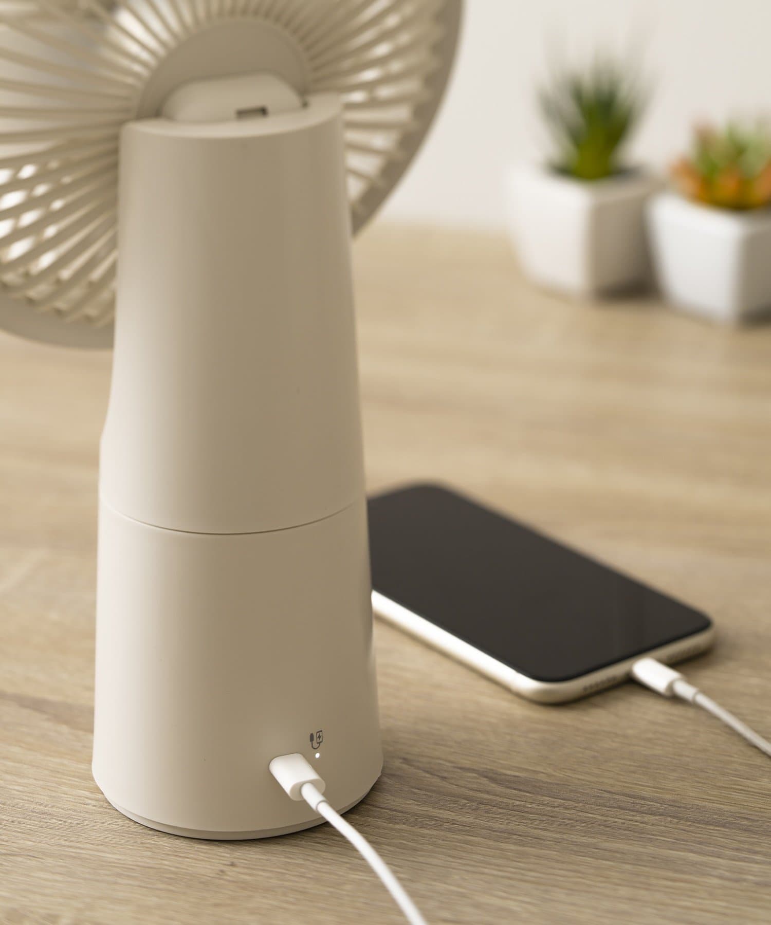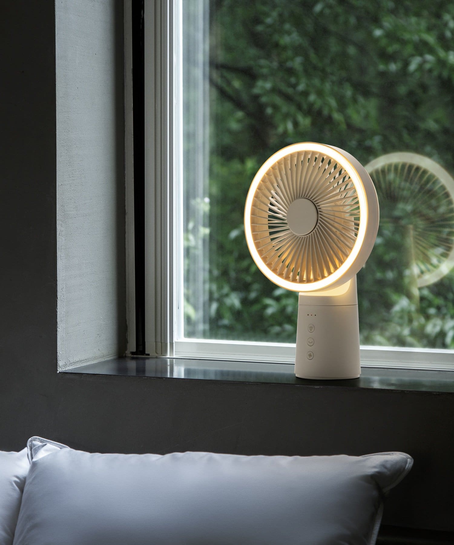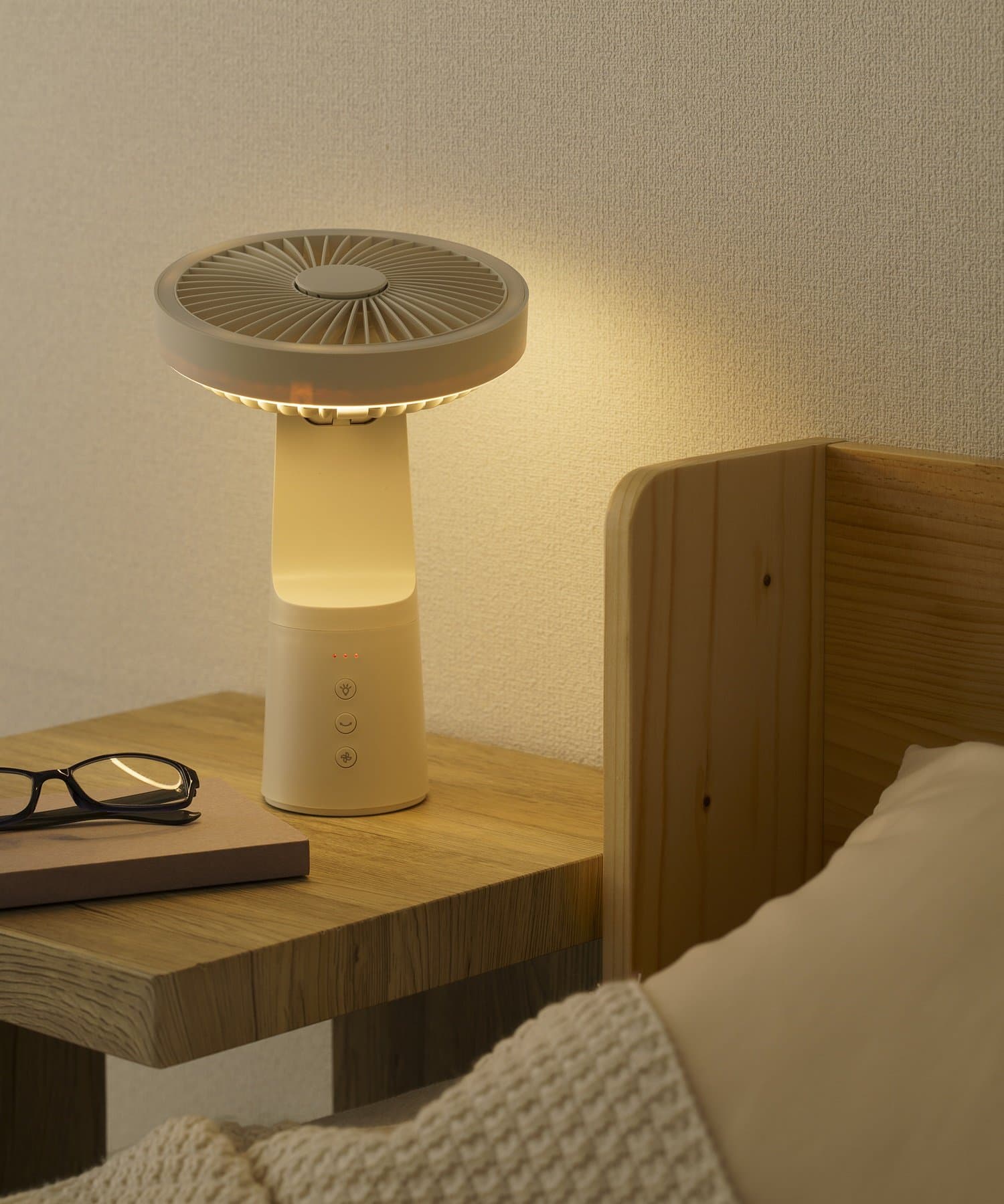 扇風機、LEDライト、モバイルバッテリー機能を融合したアロマ対応3in1ファン