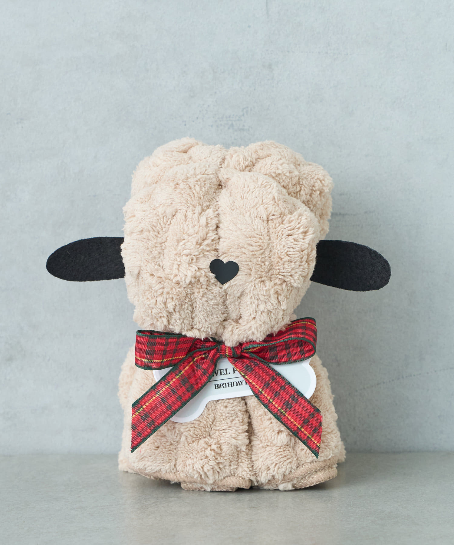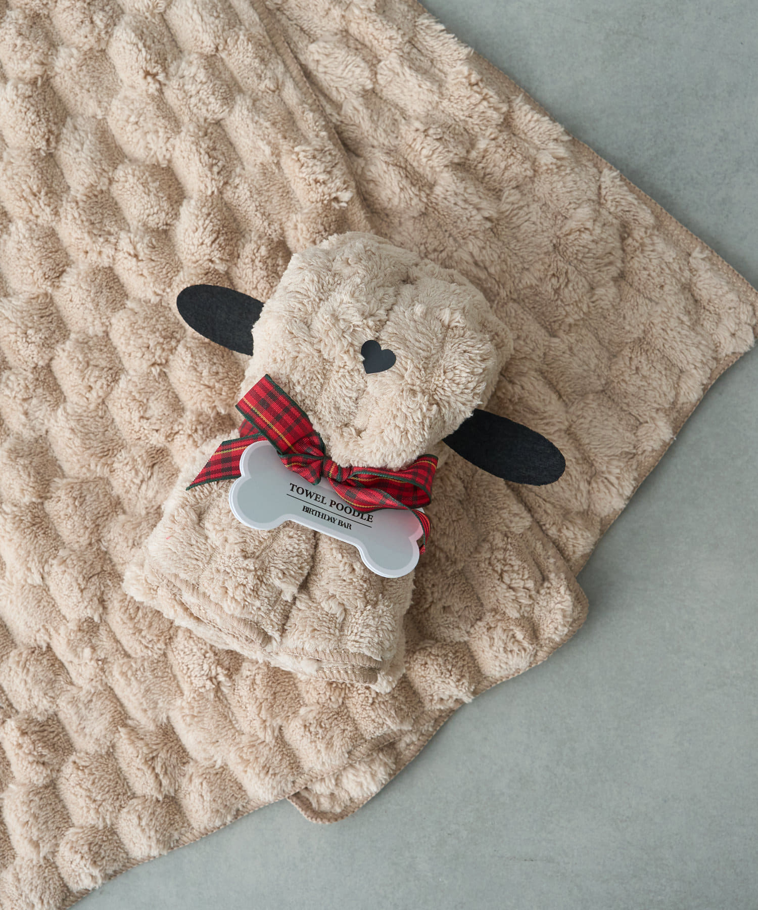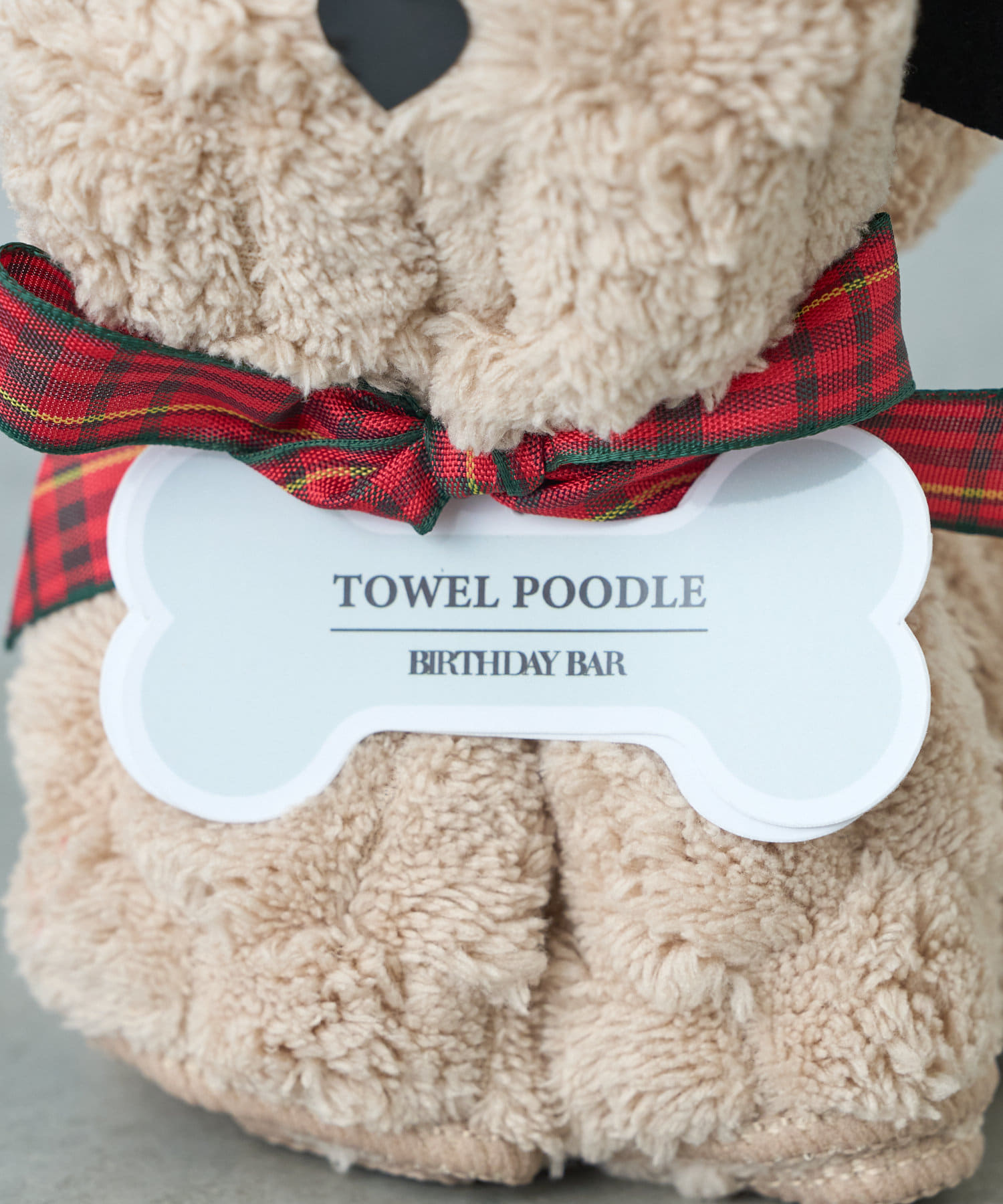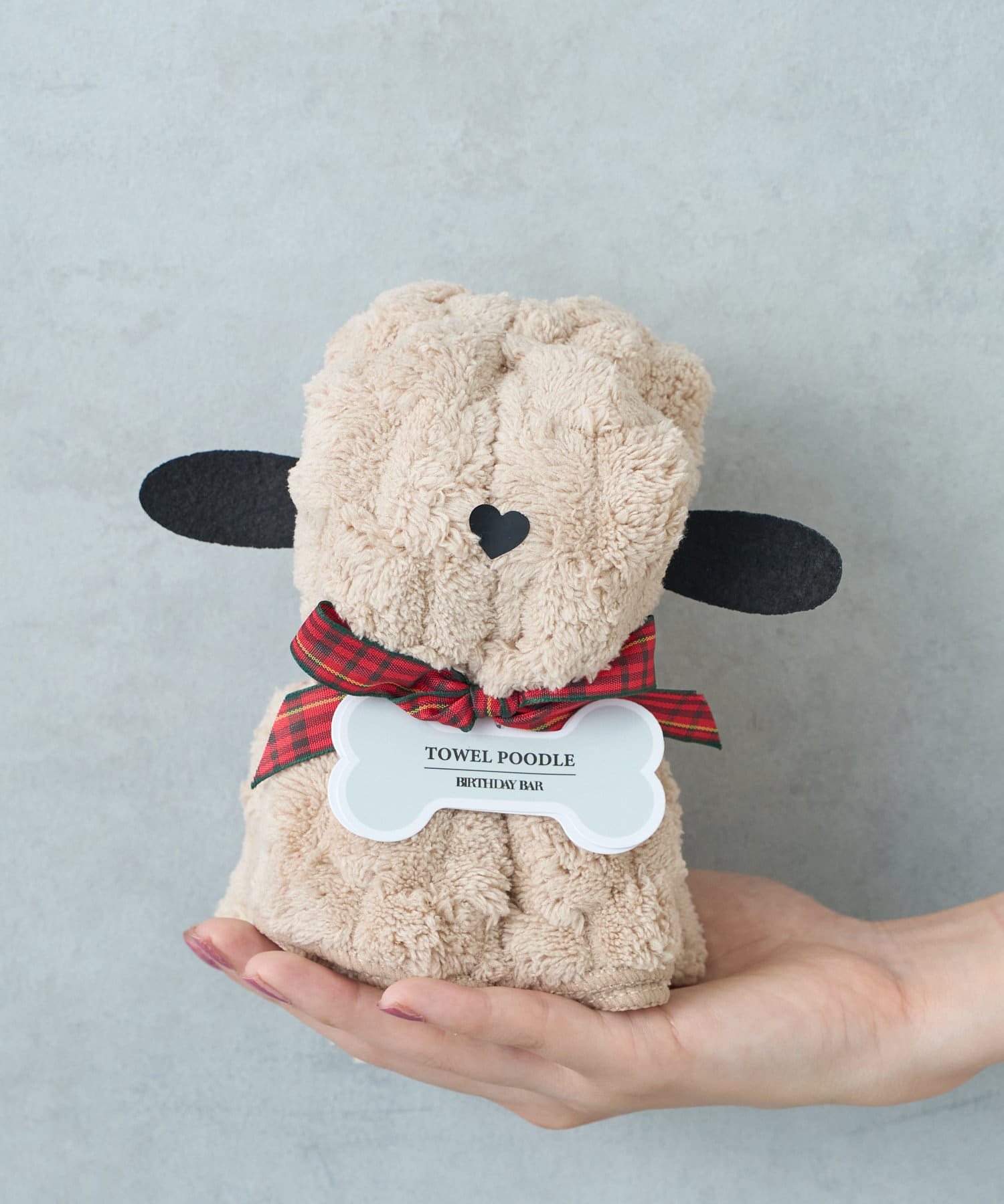 吸水性のある大判タオルをプードル型にラッピングした、プレゼントにぴったりなアイテム。