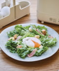 【温泉たまご】とろーりとした温泉たまごがほったらかしで作れます。手間もコツも不要。トッピングするだけで、定番メニューもたちまちアップグレード。