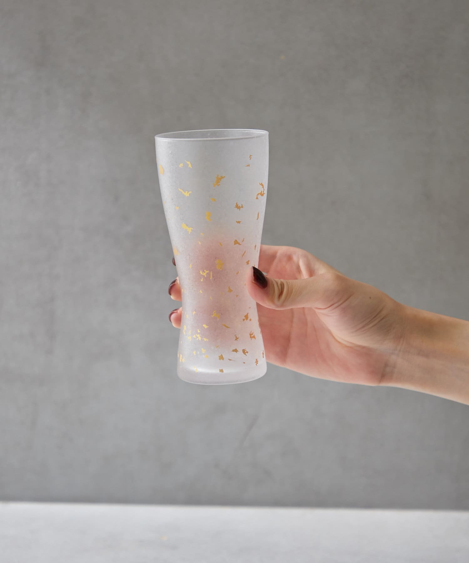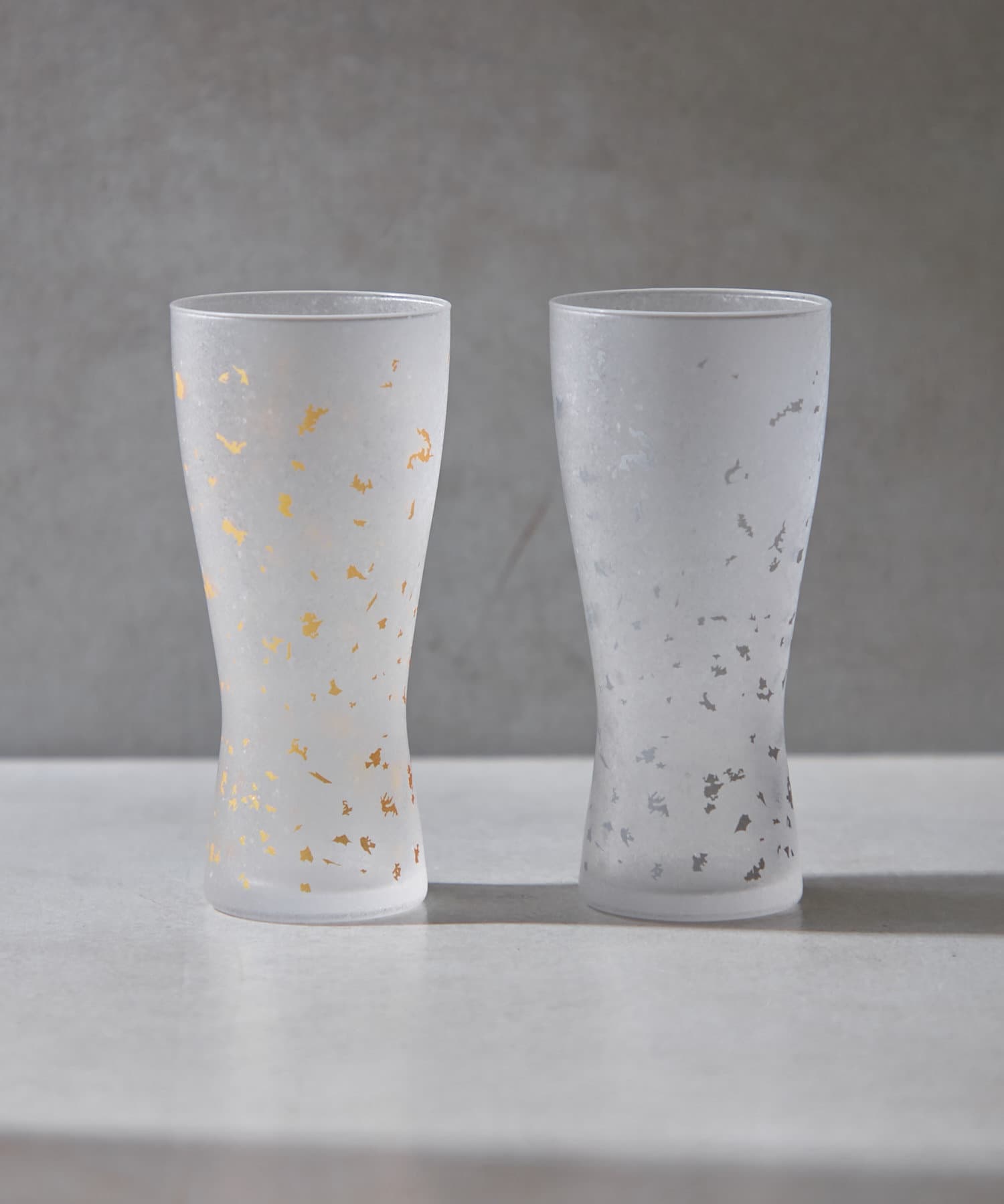 ゴールドとシルバーの高級感溢れるペアのグラスセット。ビールはもちろん、ワインやお茶、炭酸などお気に入りの冷たい飲み物を入れて飲むのにぴったり。高さが15cmとやや低めの設計になっており、食卓で倒れにくく、食器棚にも収納しやすいスタイリッシュなデザインになっています。箱入りなので、結婚のお祝いや誕生日プレゼントにも最適です。