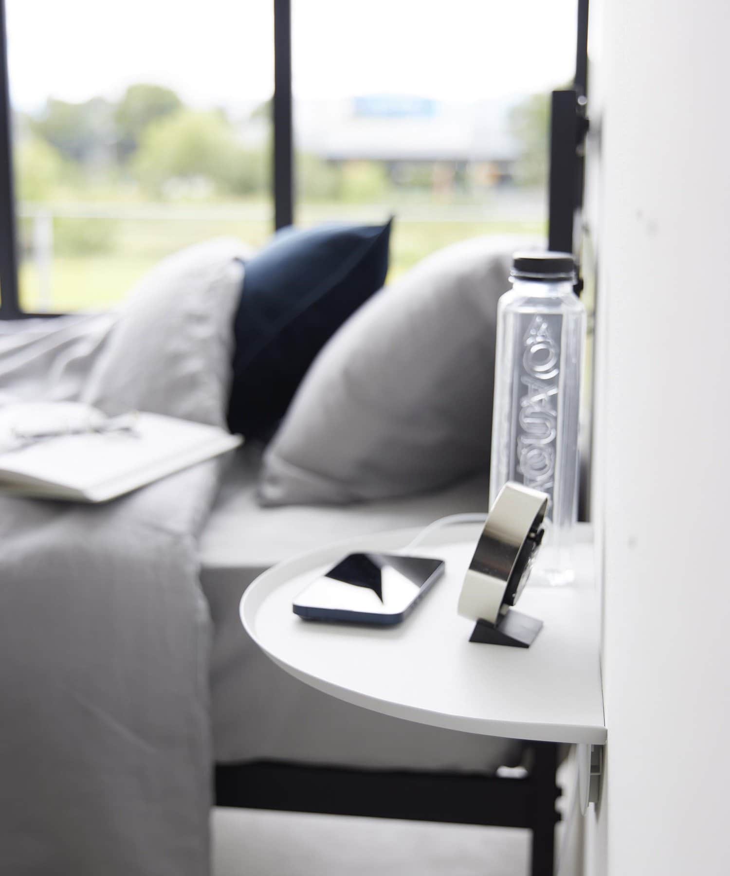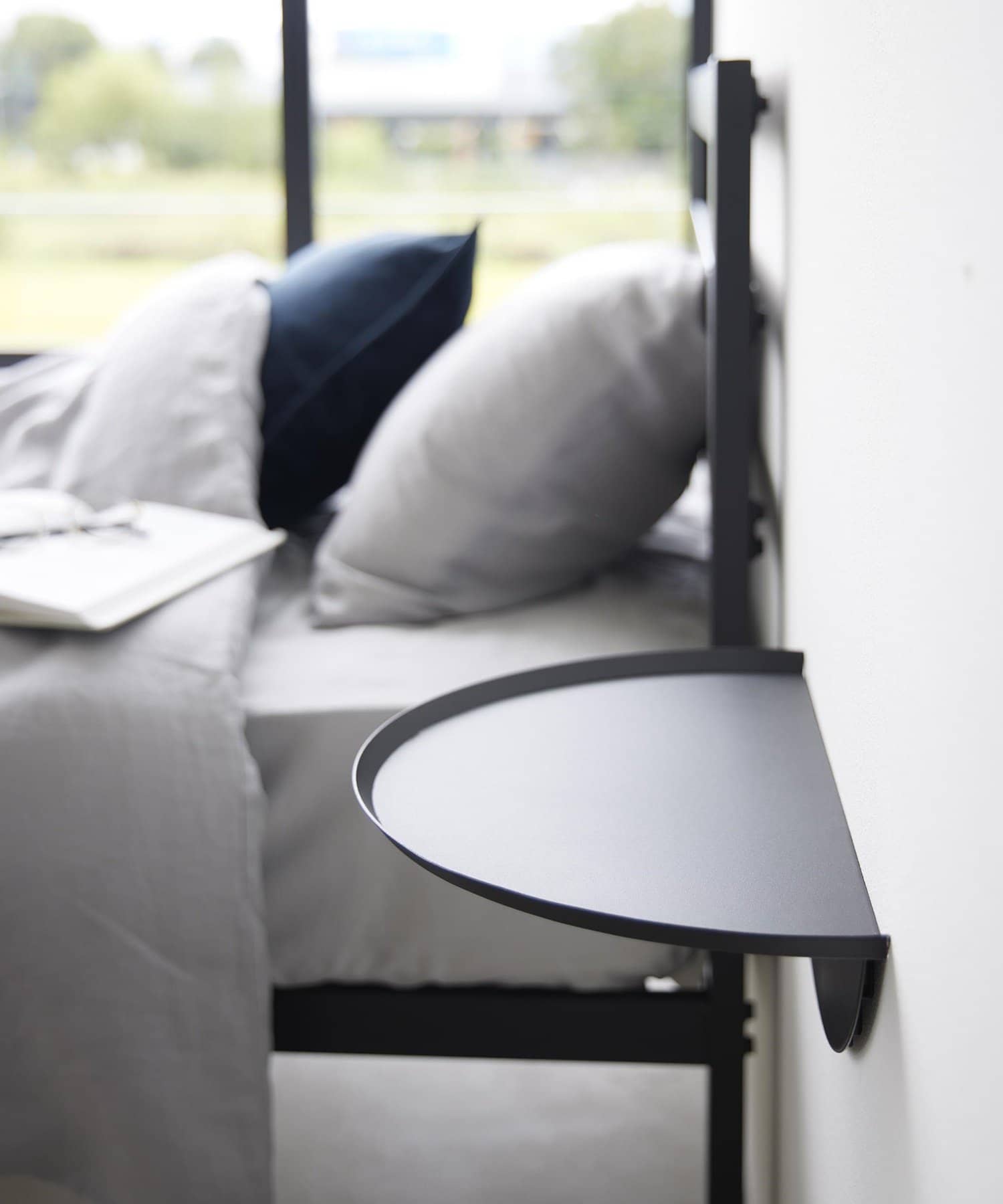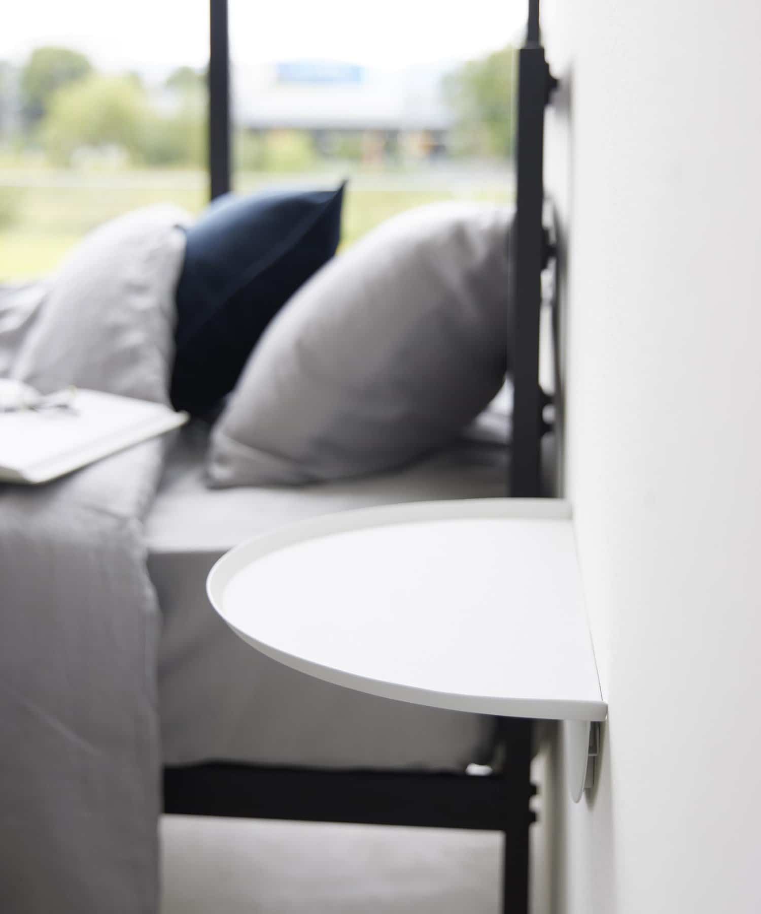 壁の穴が目立ちにくい石こうボードピンで浮かせて取り付けできるサイドテーブル