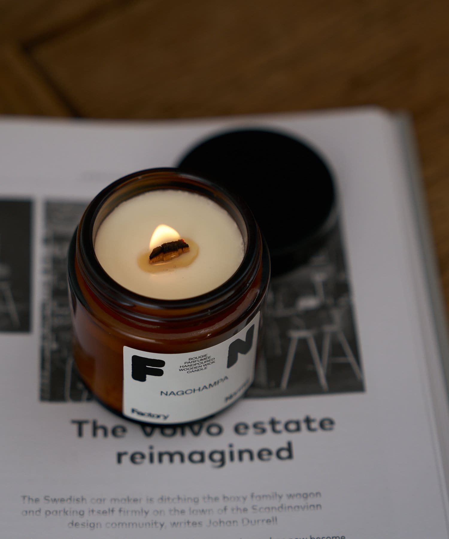 焚き火にインスパイアされた「パチパチ」と音を立てて燃える木製芯のキャンドル。