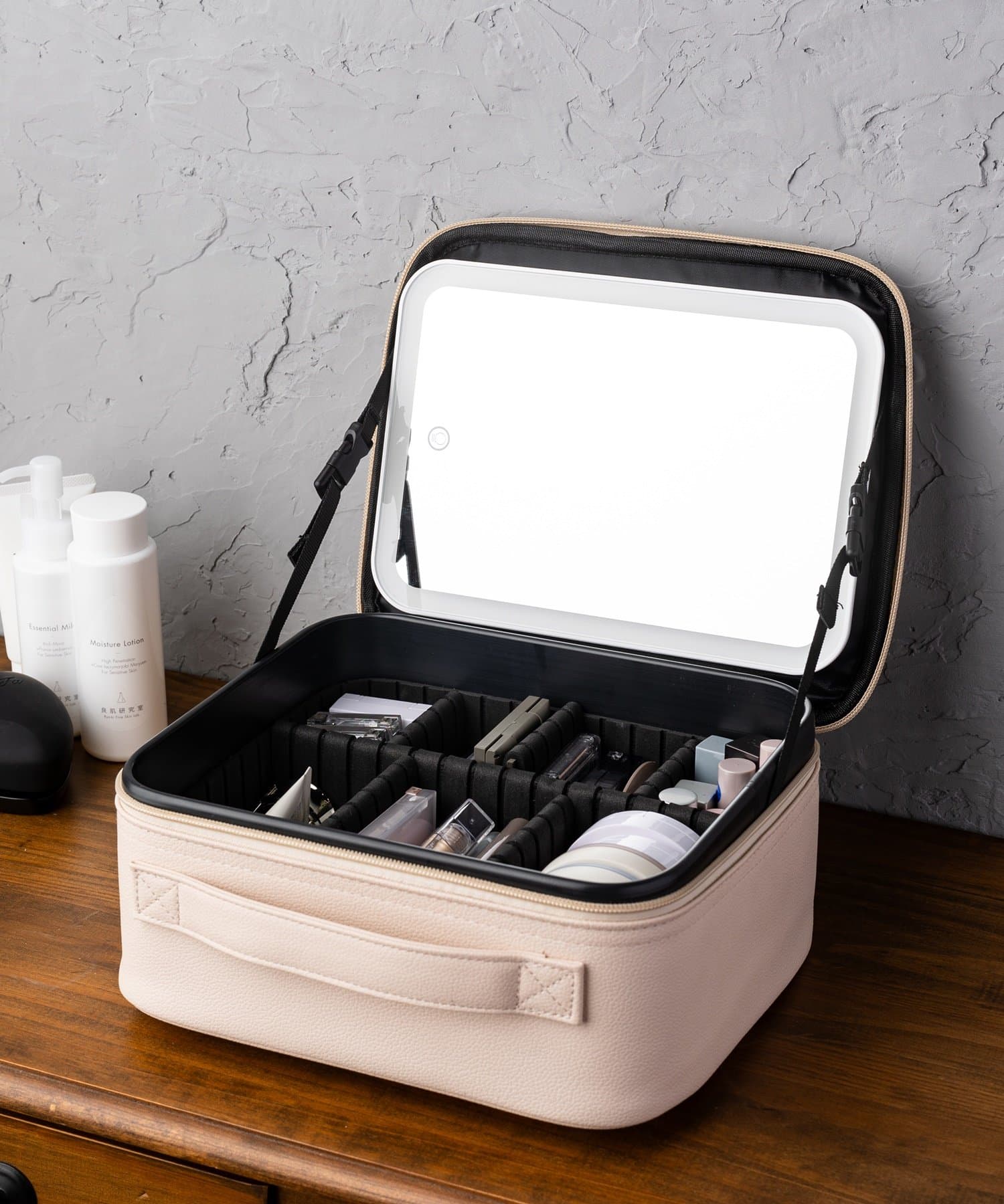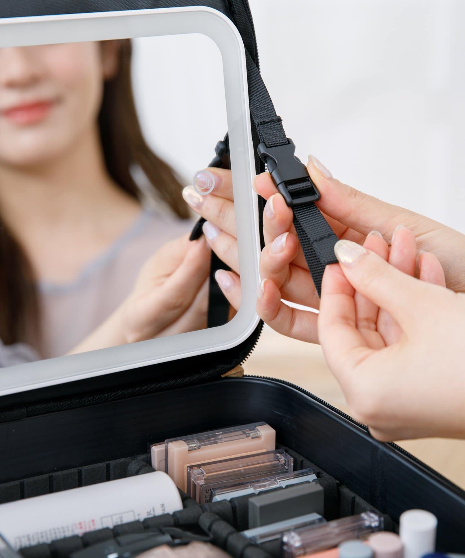 また、LEDライトミラー付きなので、これひとつでメイクに必要なものが揃います。