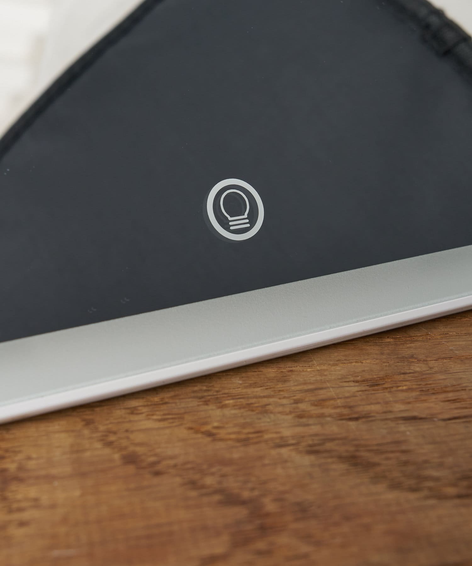 ・LEDライト付きで3色調光、明るさ無段階調節。