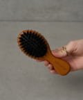ブラシで頭皮をマッサージします。頭皮マッサージは頭皮の健康を促進し、健康な髪を整えるのに役立ちます。